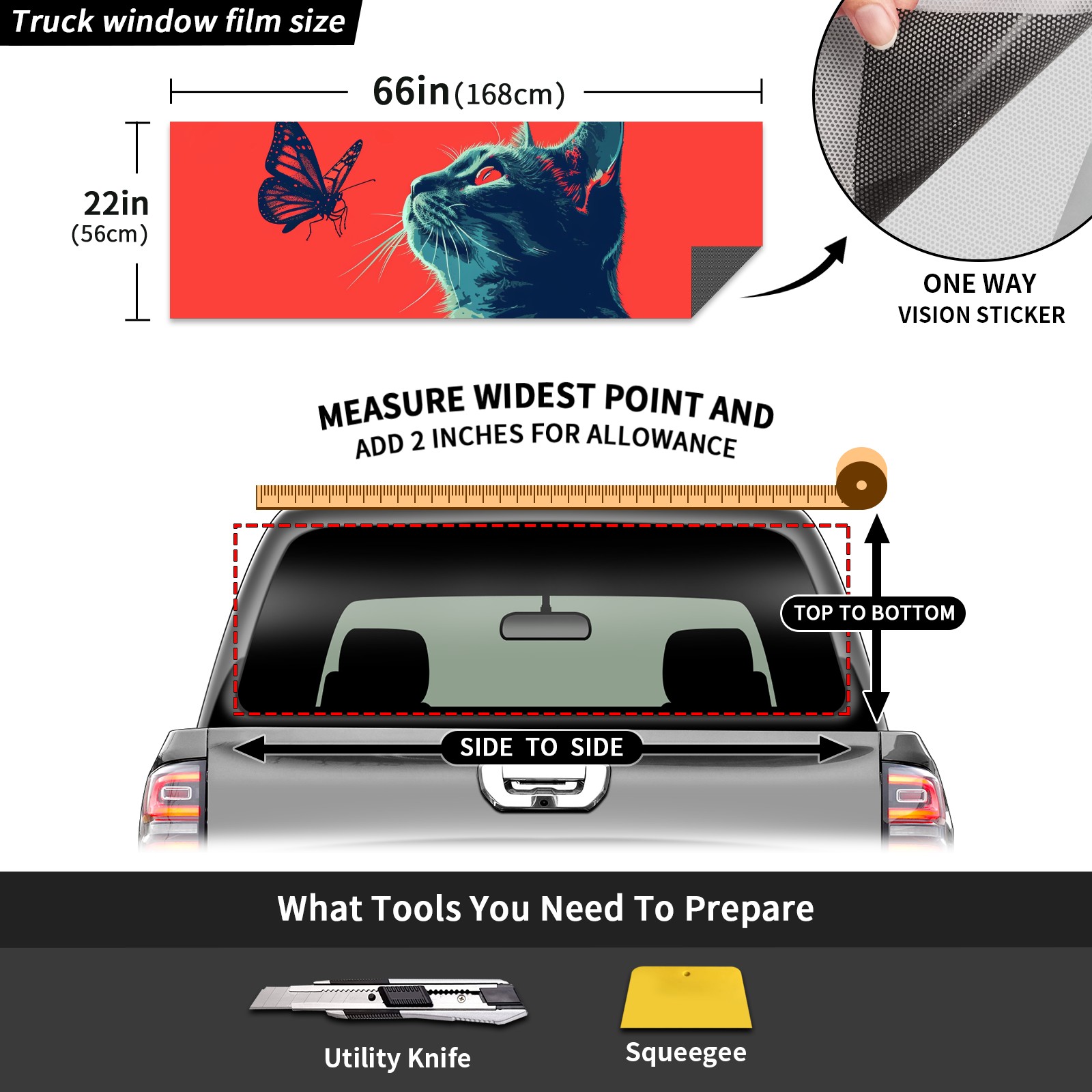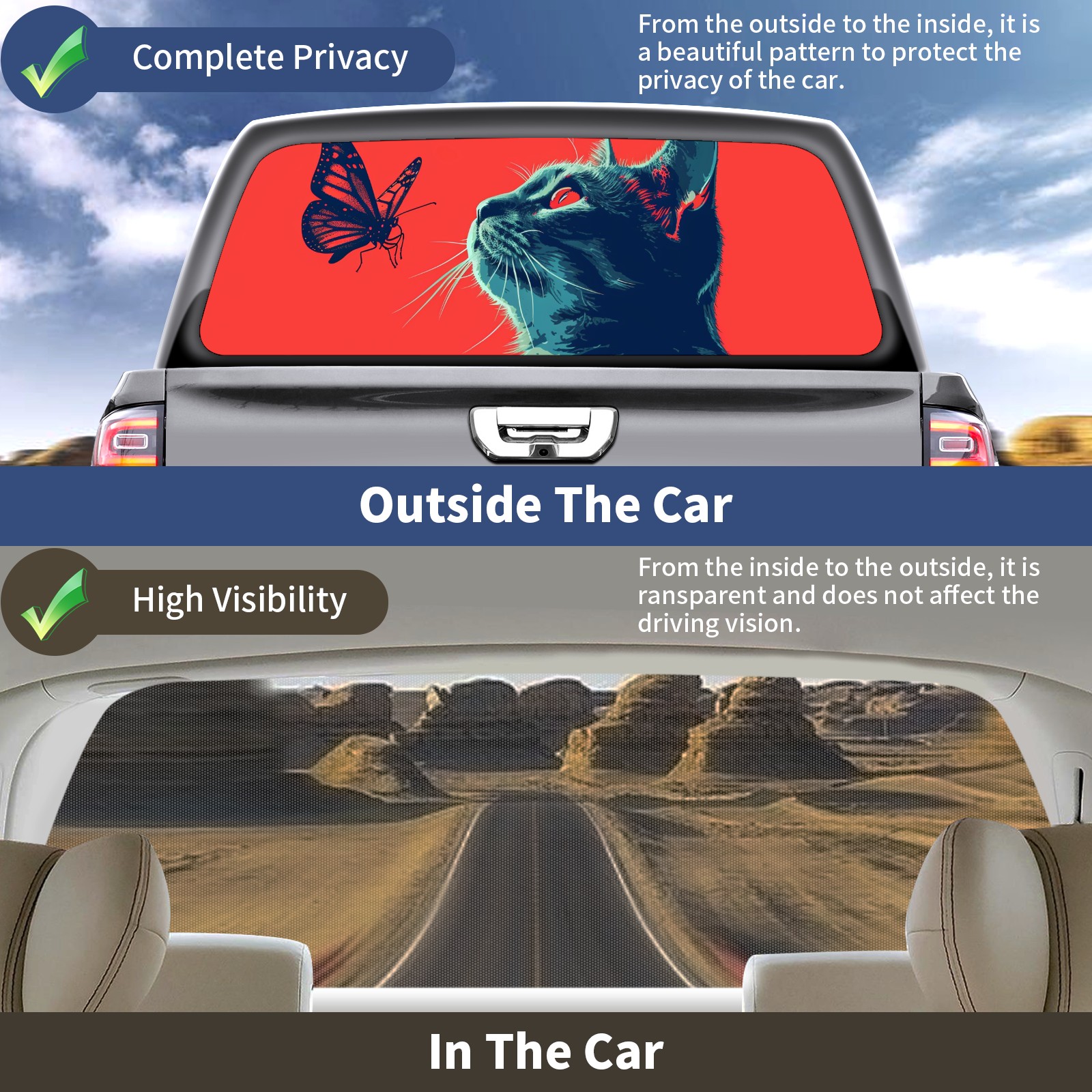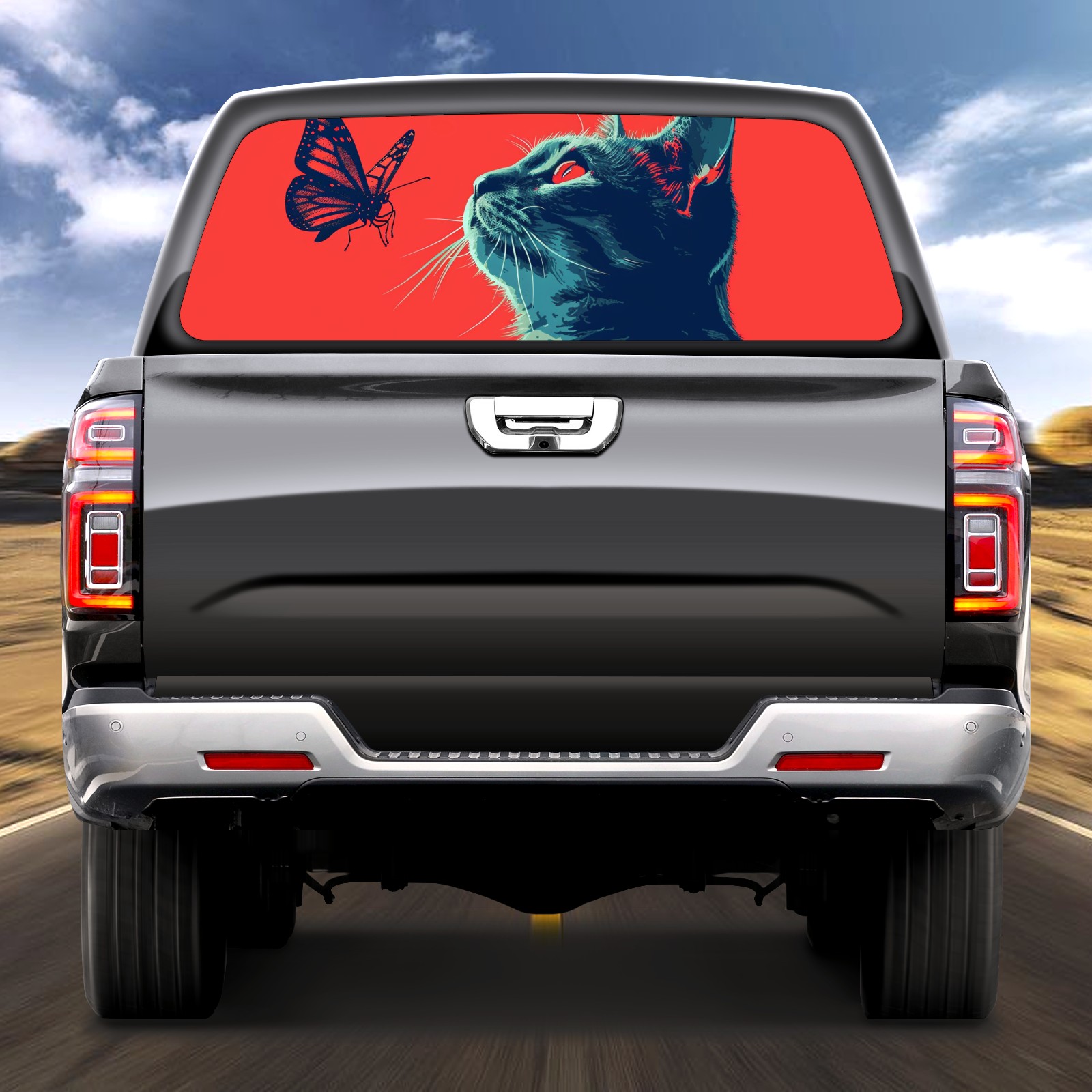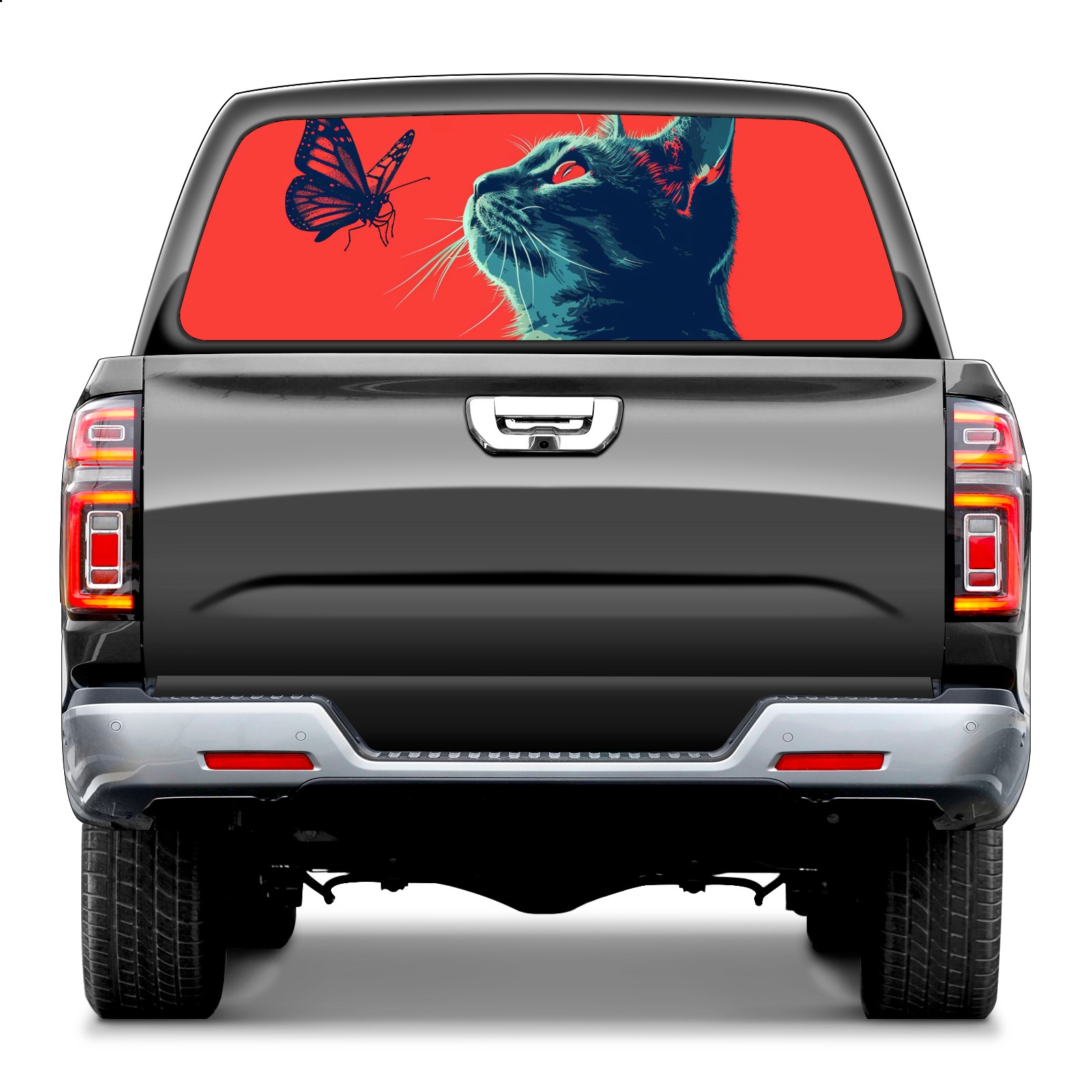Truck Rear Window Graphics Decals Pickup Trucks Back Window Sticker Full Window Film Decal One Way Visual Waterproof Car Rear Tint Cat (30)