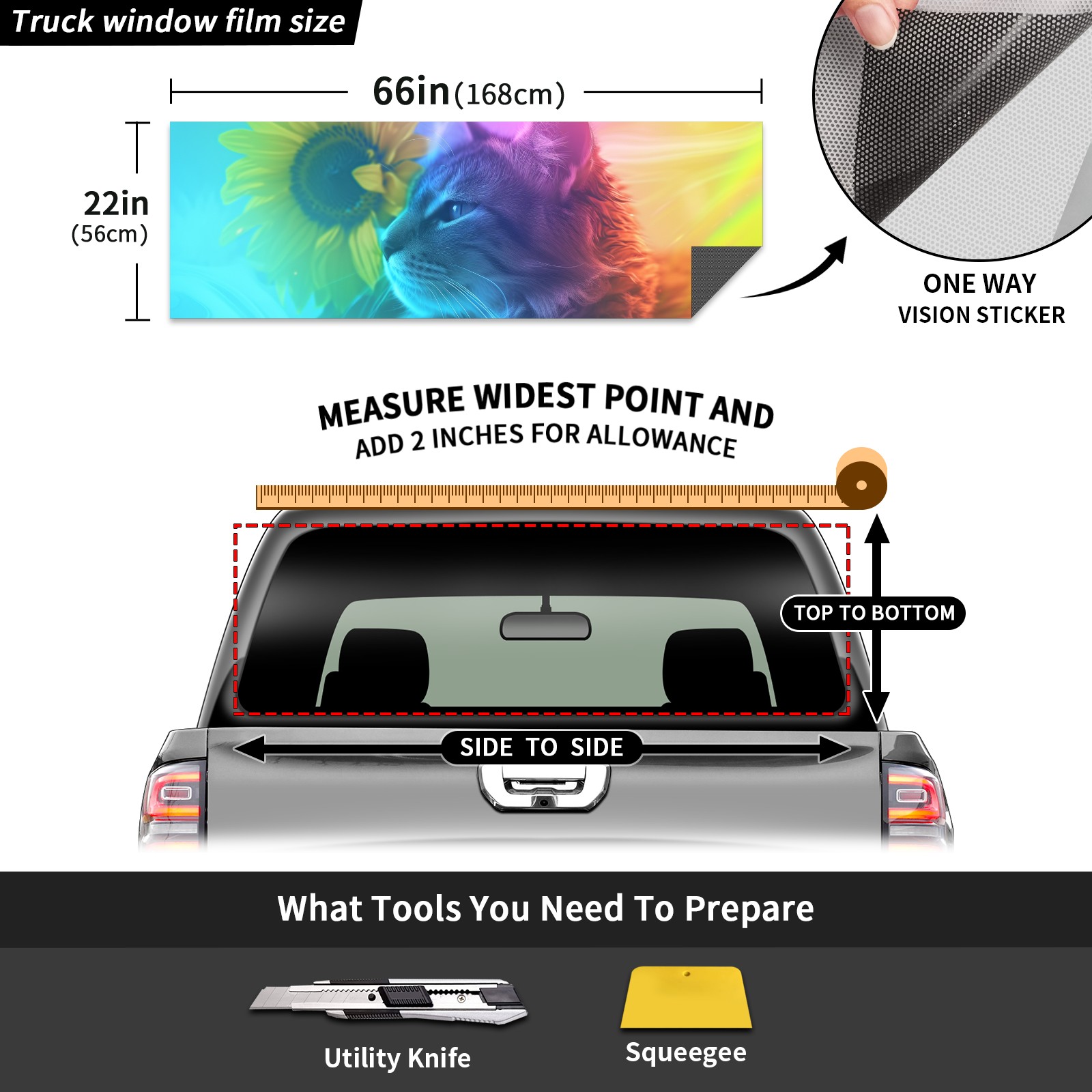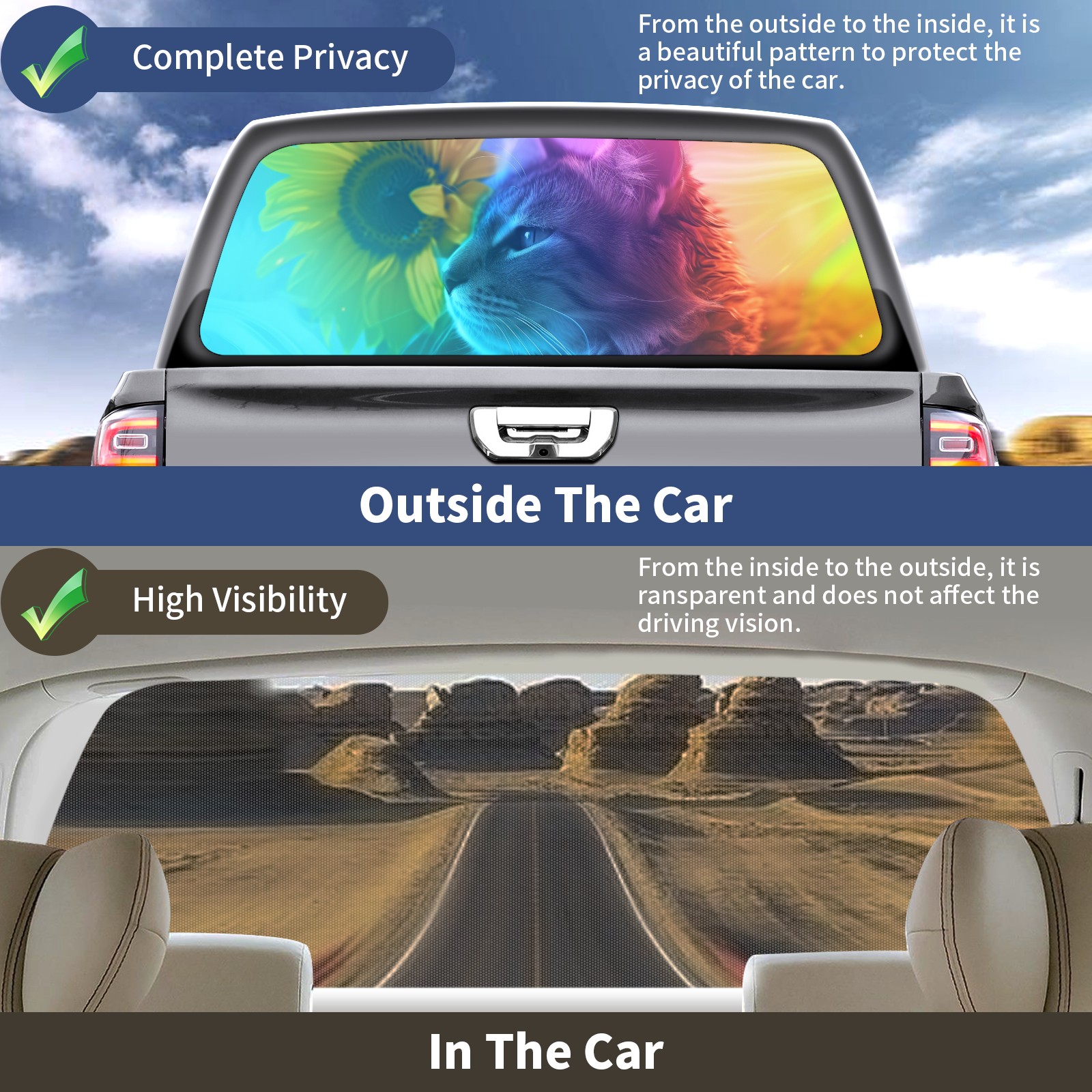 Truck Rear Window Graphics Decals Pickup Trucks Back Window Sticker Full Window Film Decal One Way Visual Waterproof Car Rear Tint Cat (59)