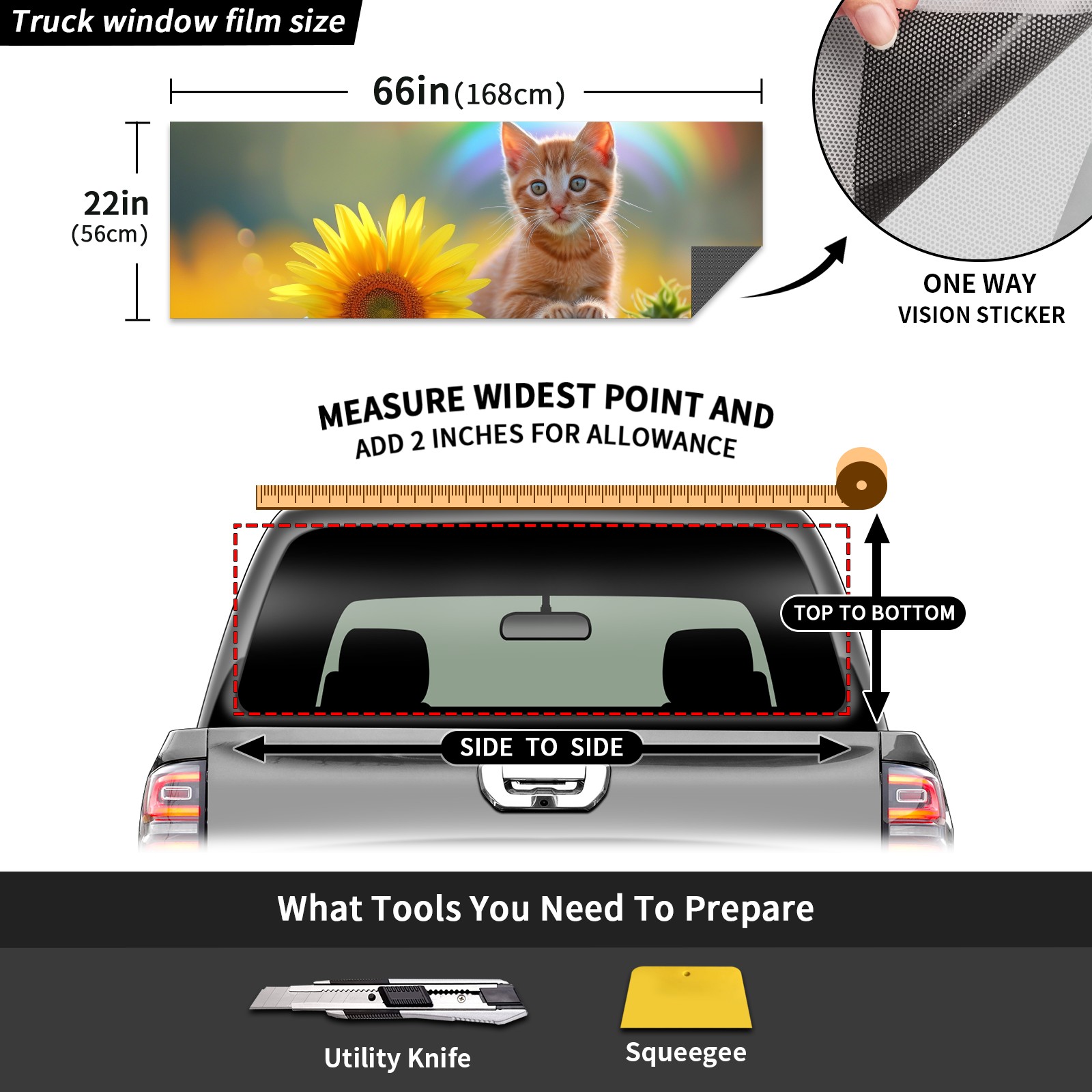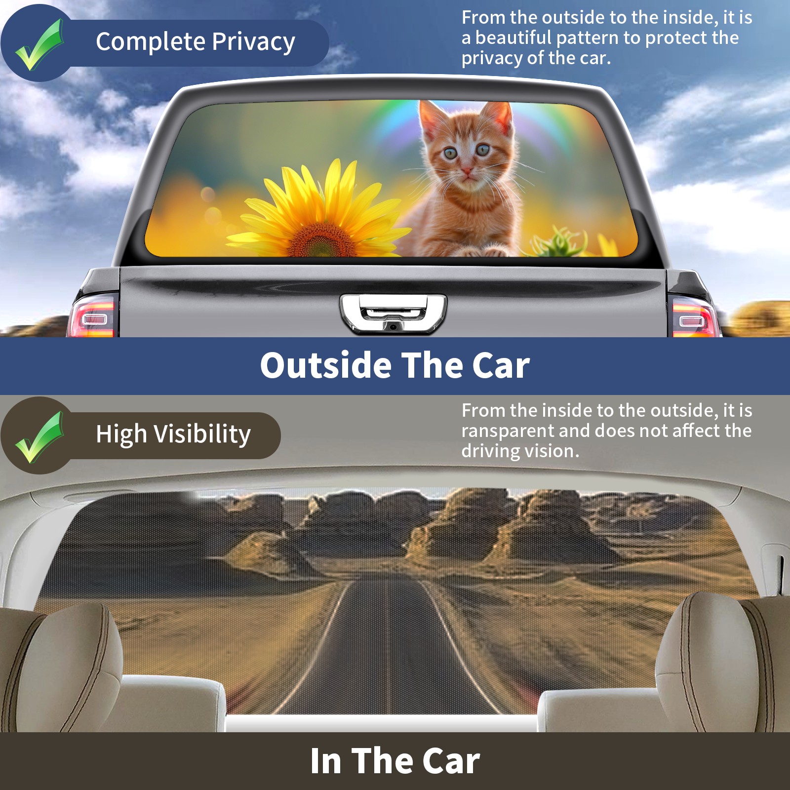 Truck Rear Window Graphics Decals Pickup Trucks Back Window Sticker Full Window Film Decal One Way Visual Waterproof Car Rear Tint Cat (58)