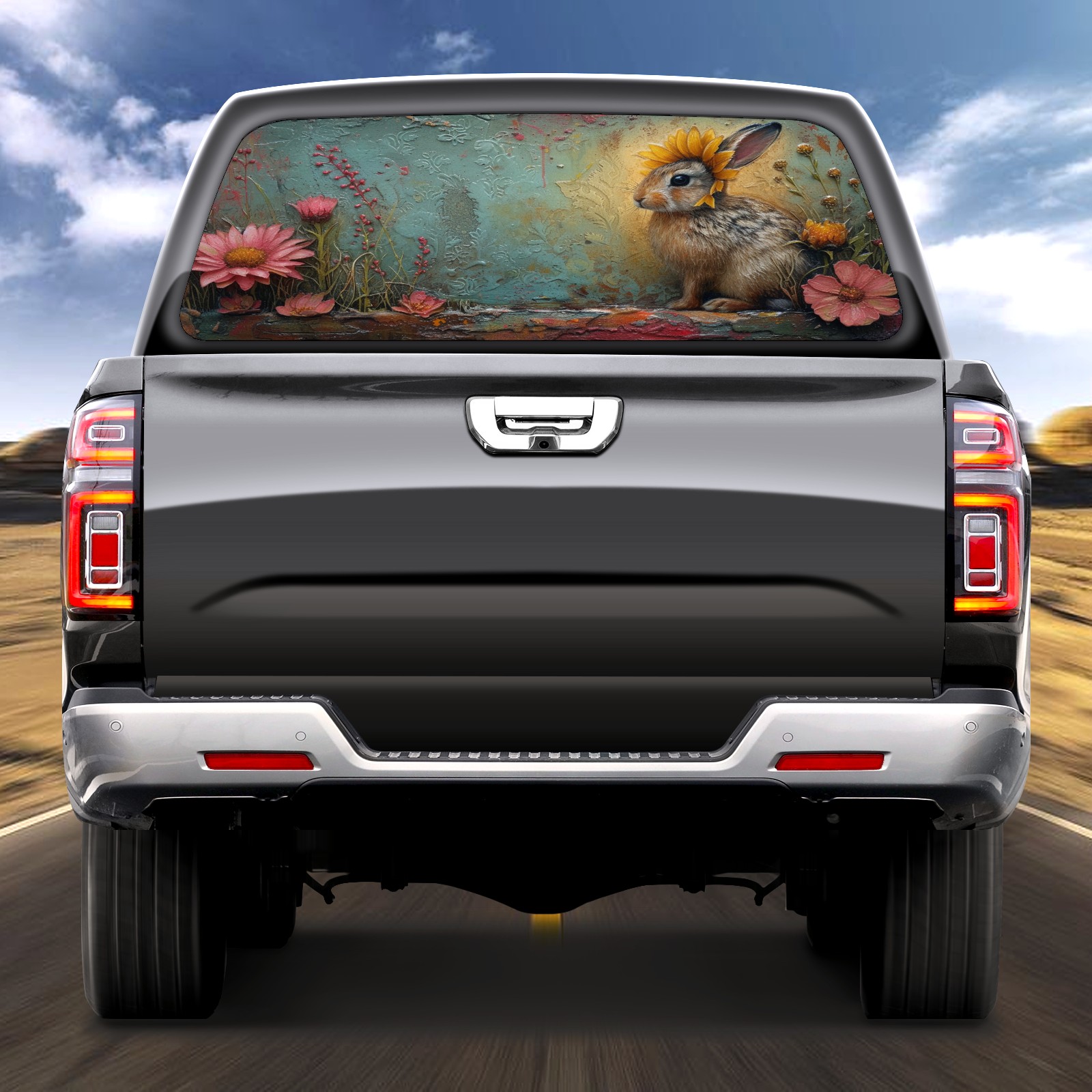 Truck Rear Window Graphics Decals Pickup Trucks Back Window Sticker Full Window Film Decal One Way Visual Waterproof Car Rear Tint Rabbit (22)