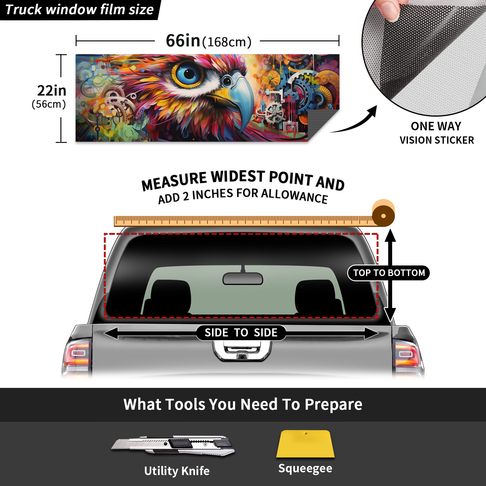 Truck Rear Window Graphics Decals Pickup Trucks Back Window Sticker Full Window Film Decal One Way Visual Waterproof Car Rear Tint Bird (64)