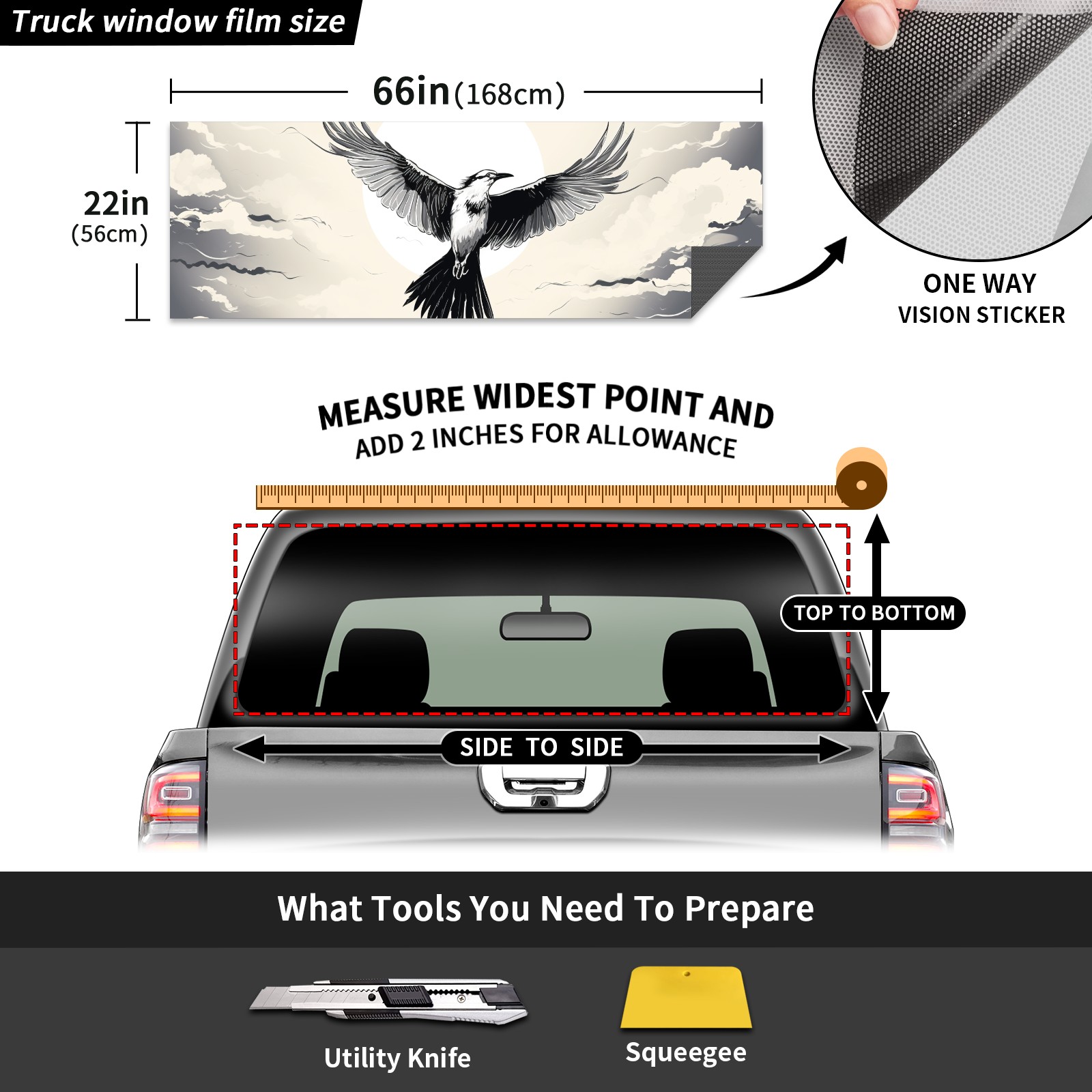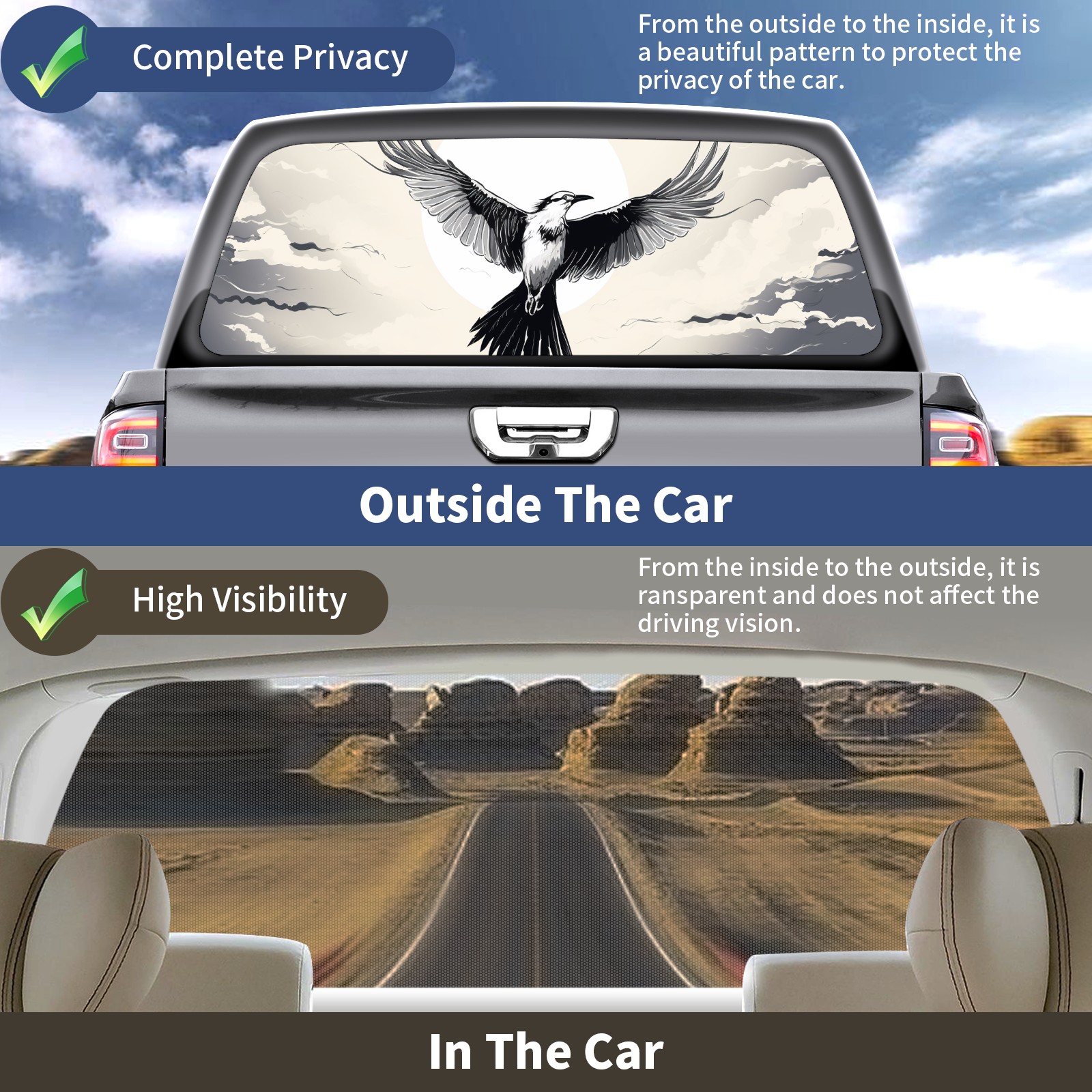 Truck Rear Window Graphics Decals Pickup Trucks Back Window Sticker Full Window Film Decal One Way Visual Waterproof Car Rear Tint Bird (43)