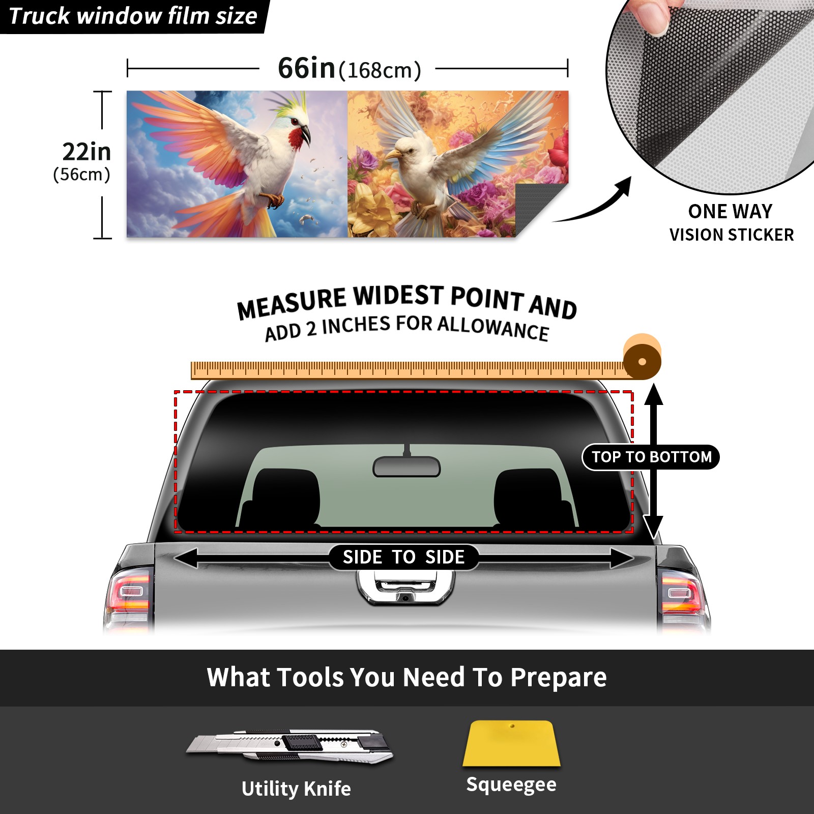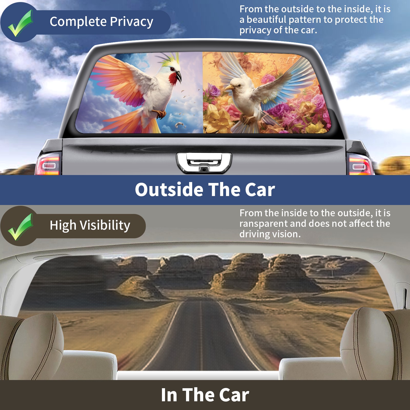 Truck Rear Window Graphics Decals Pickup Trucks Back Window Sticker Full Window Film Decal One Way Visual Waterproof Car Rear Tint Bird (47)