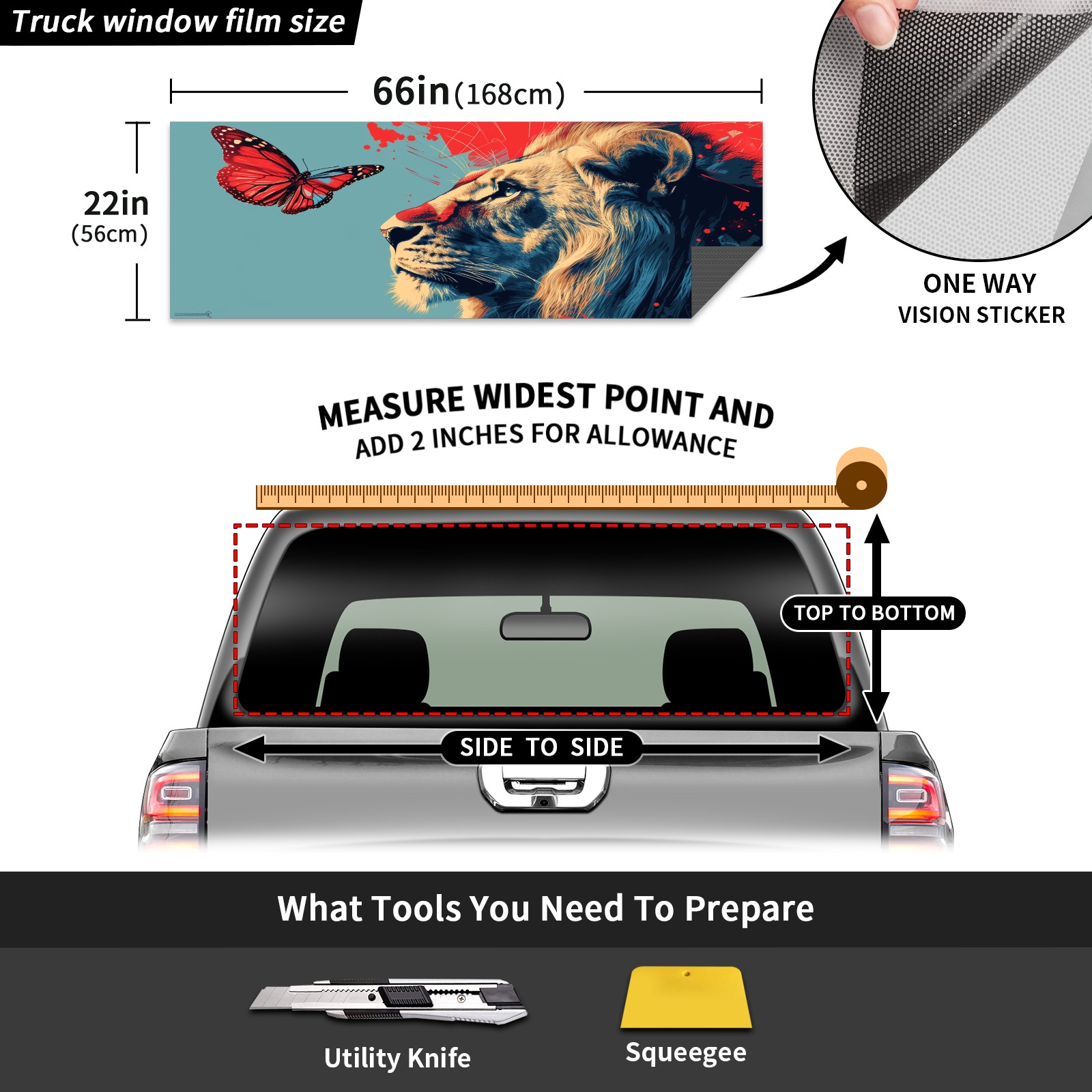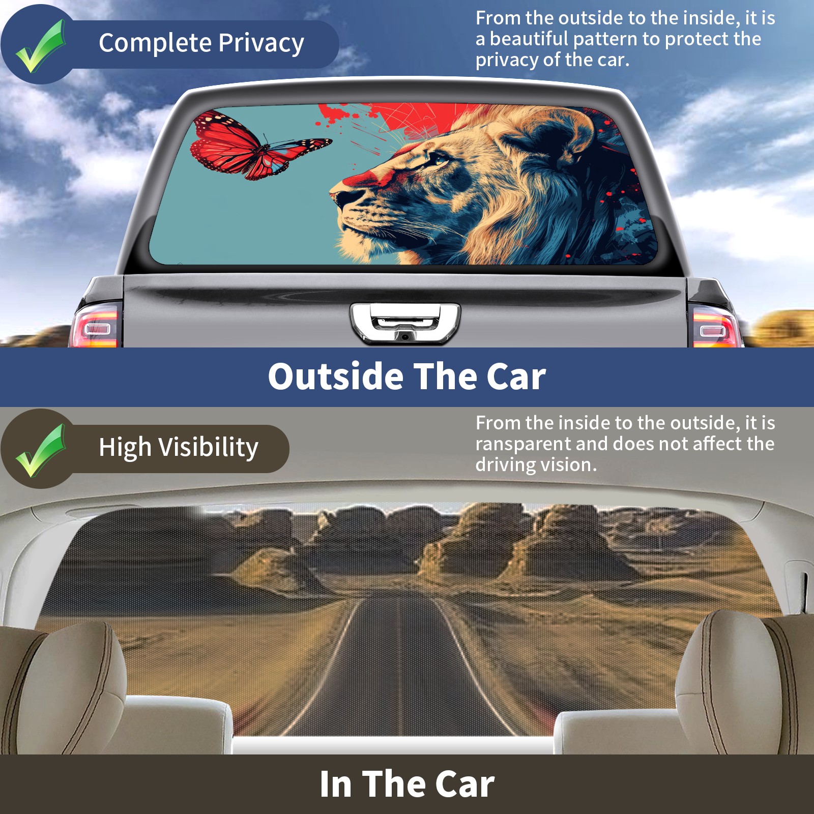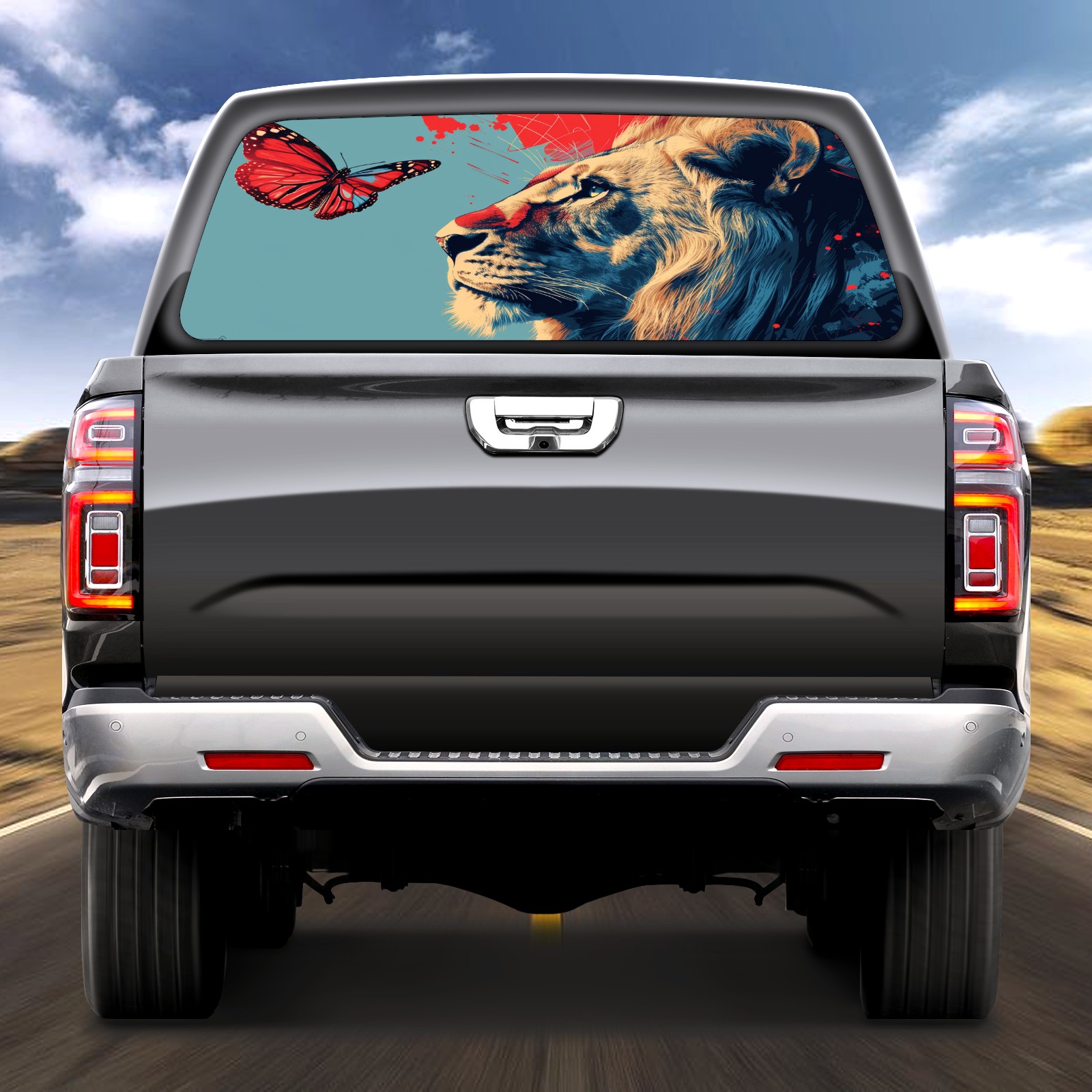 Truck Rear Window Graphics Decals Pickup Trucks Back Window Sticker Full Window Film Decal One Way Visual Waterproof Car Rear Tint Lion (53)