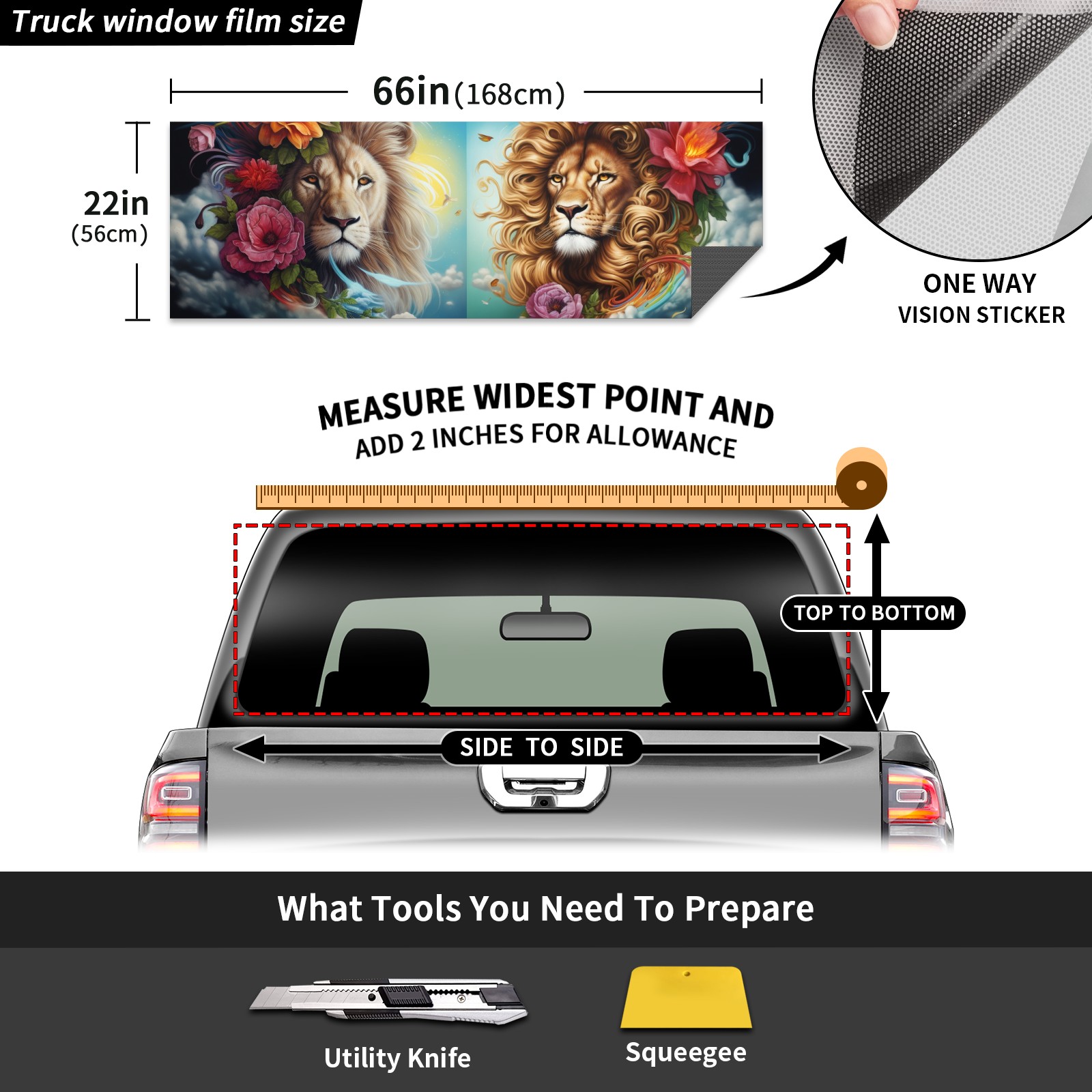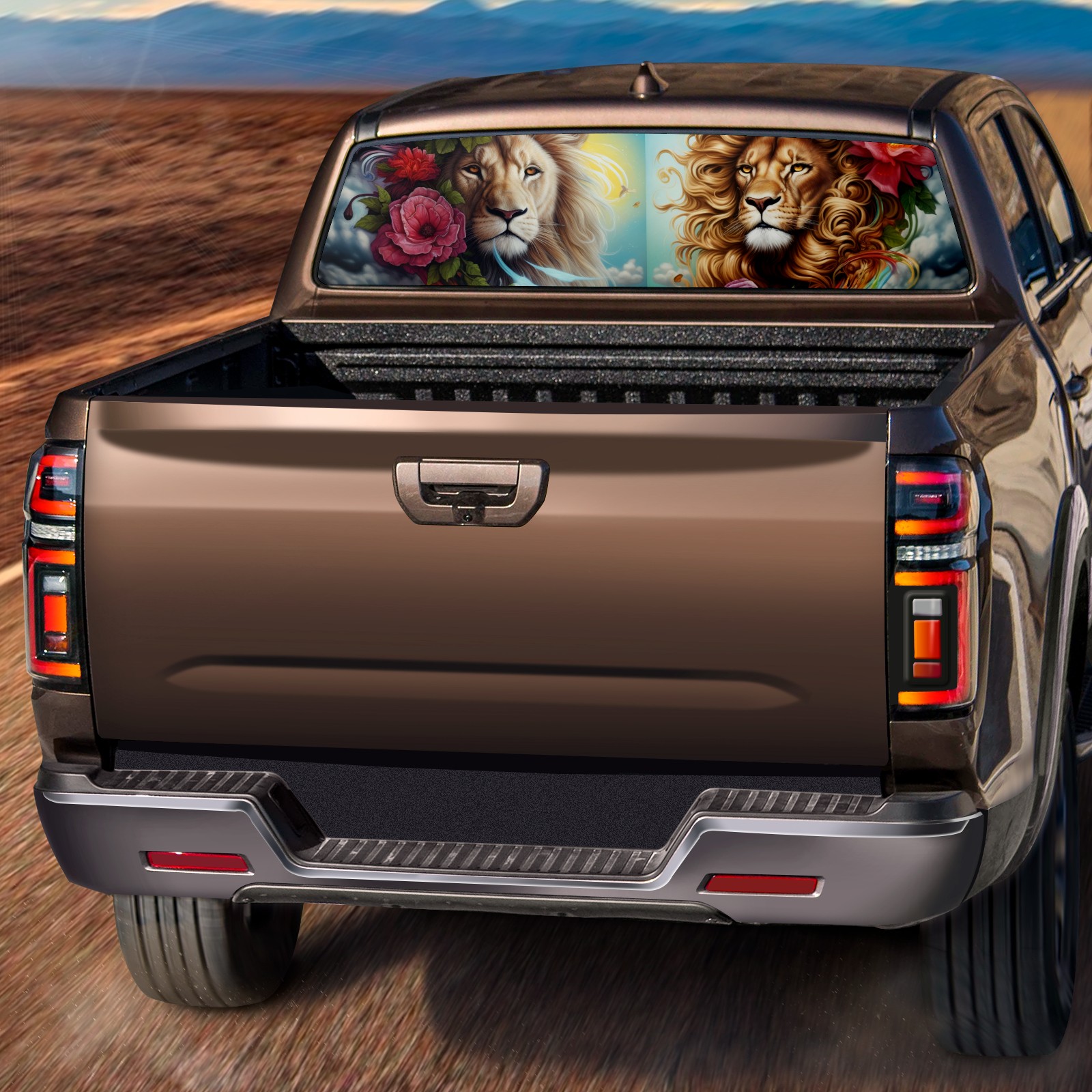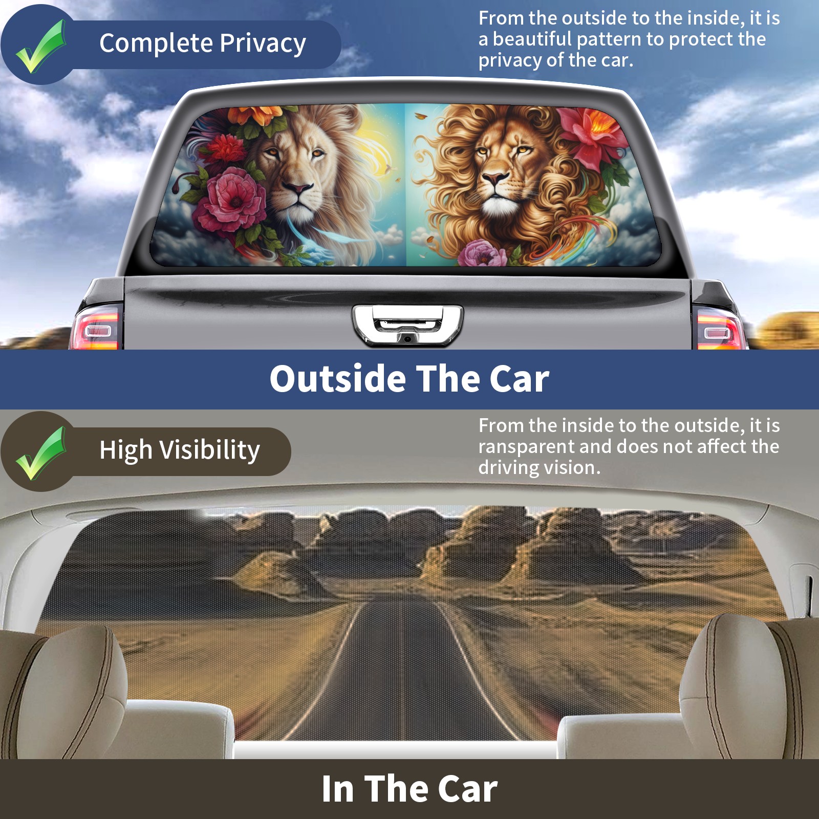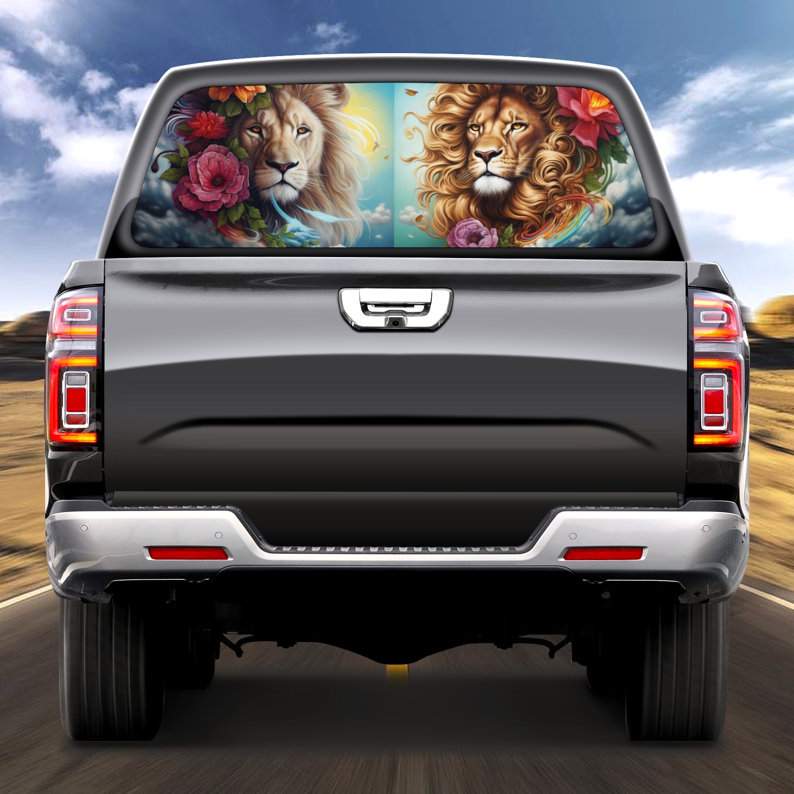 Truck Rear Window Graphics Decals Pickup Trucks Back Window Sticker Full Window Film Decal One Way Visual Waterproof Car Rear Tint Lion (65)
