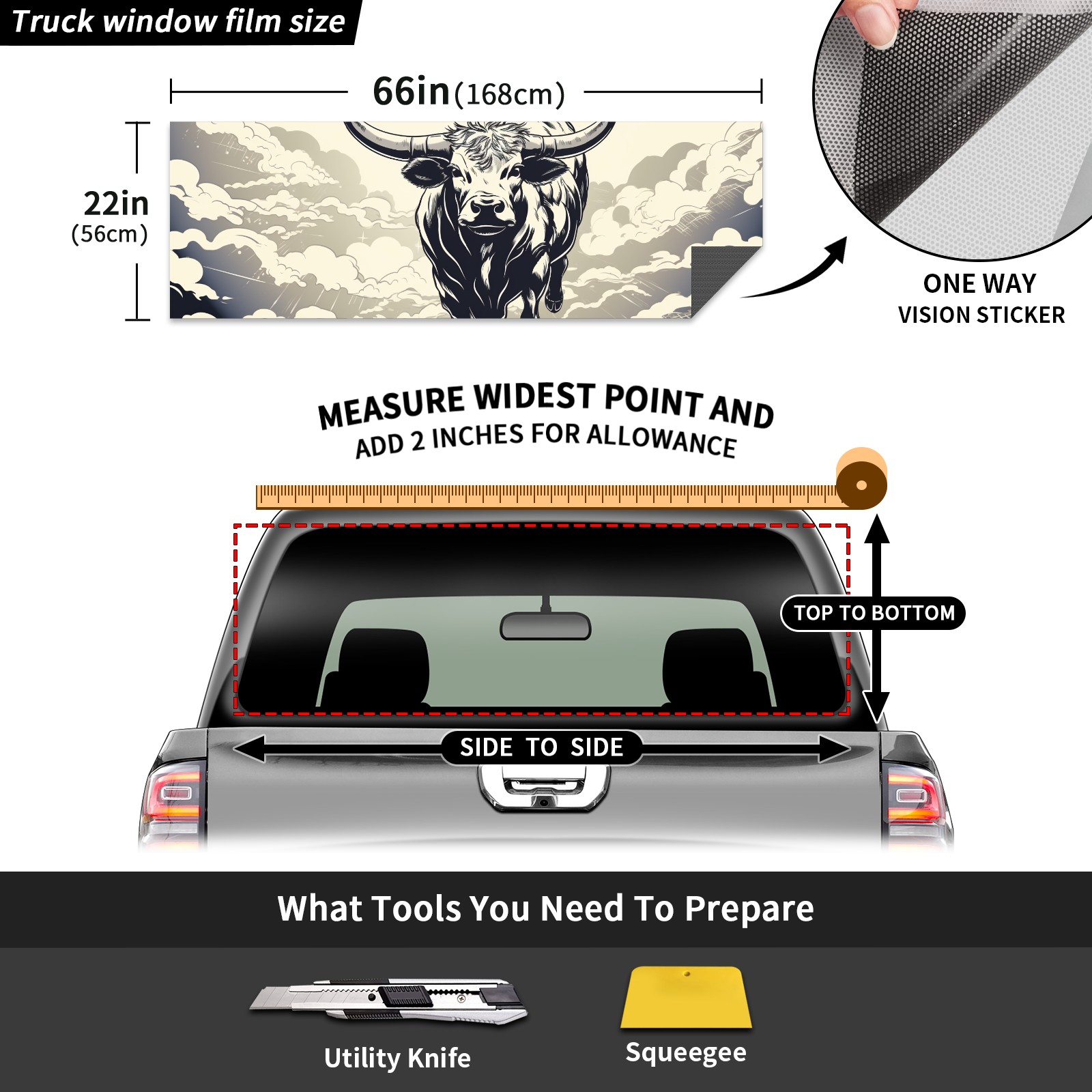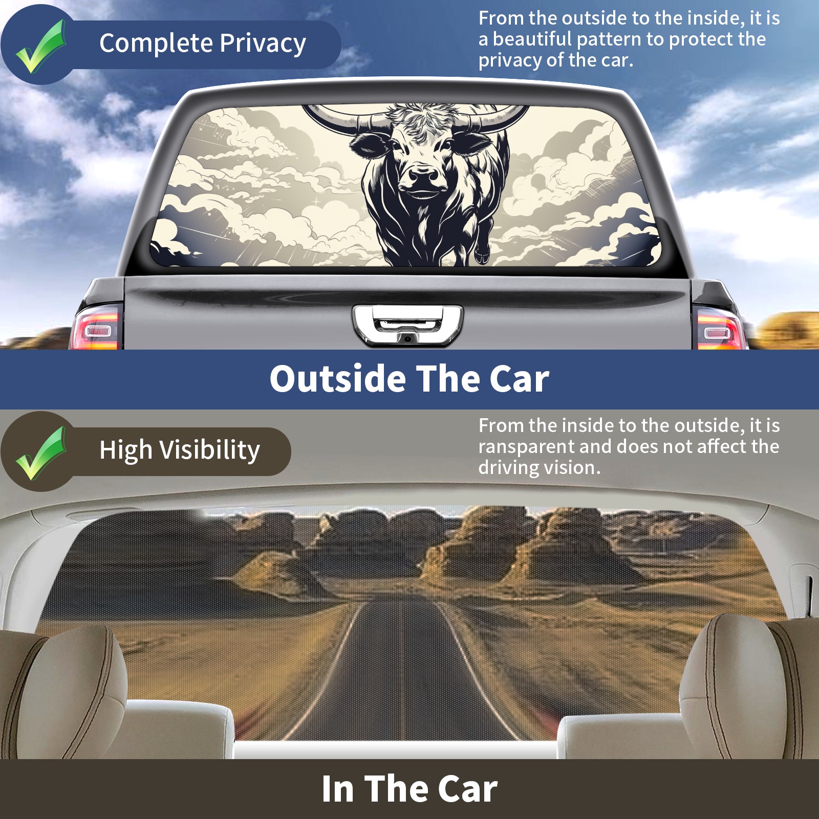 Truck Rear Window Graphics Decals Pickup Trucks Back Window Sticker Full Window Film Decal One Way Visual Waterproof Car Rear Tint Cow (71)