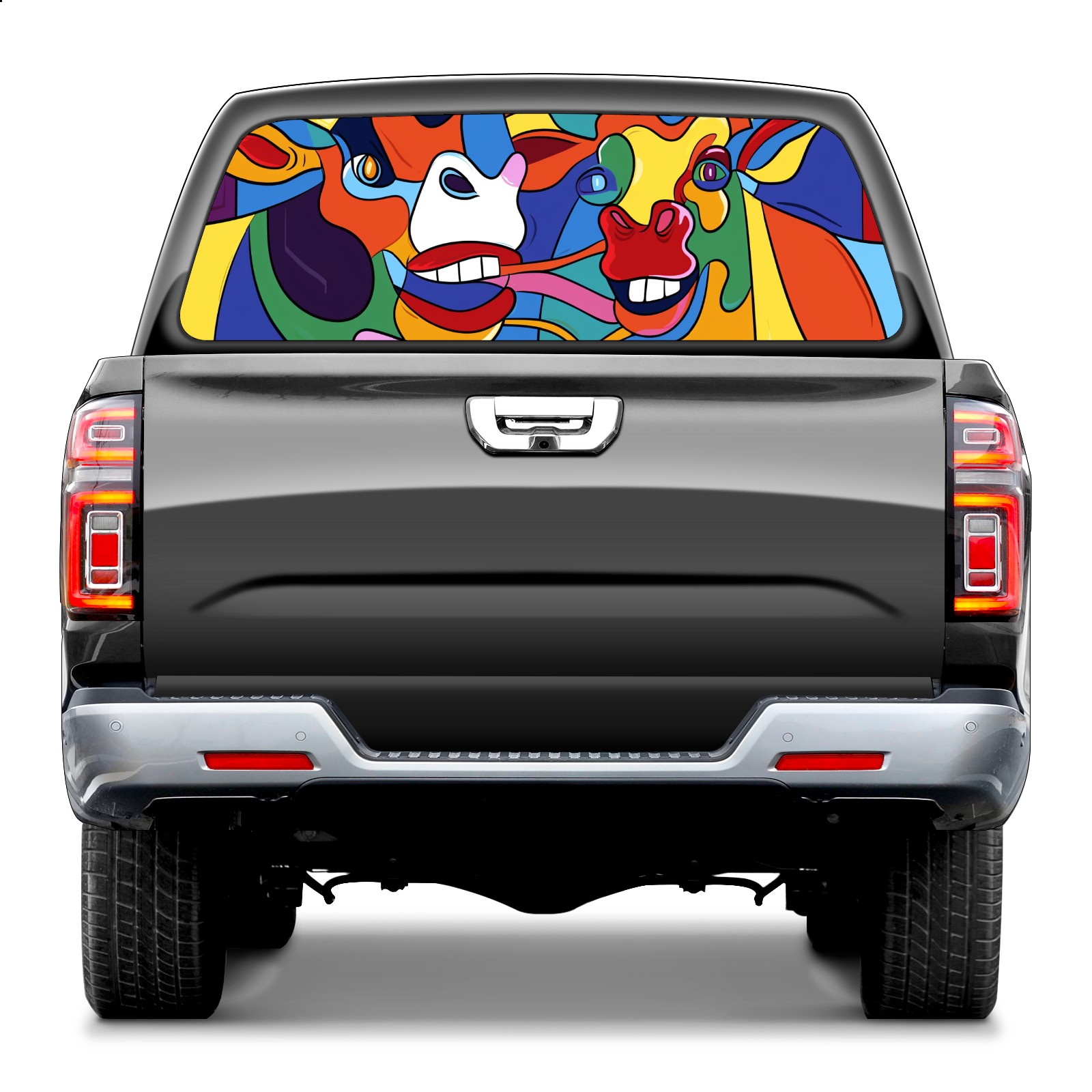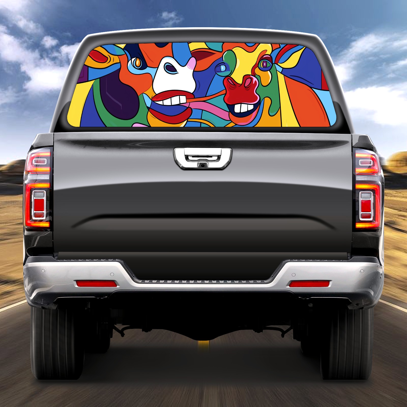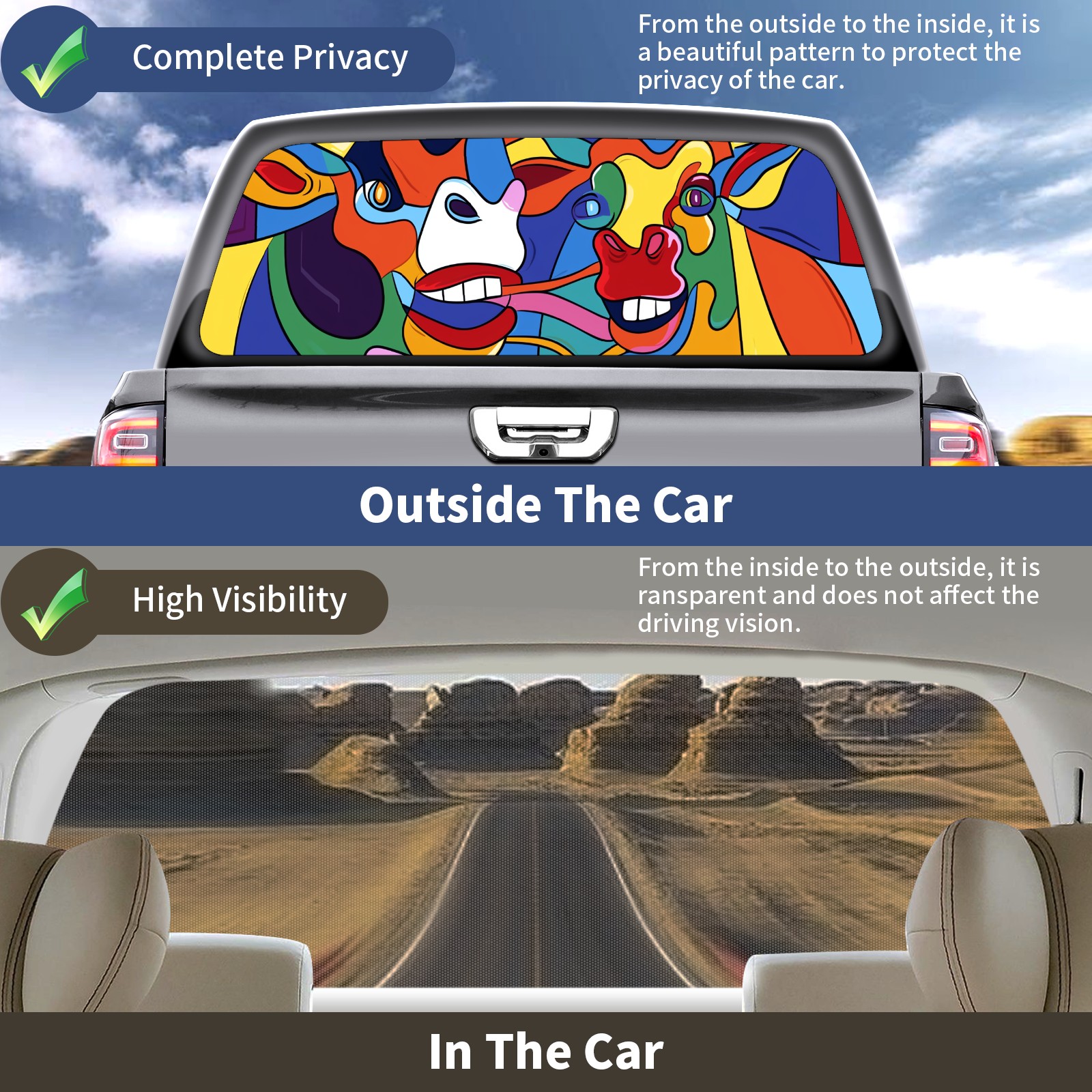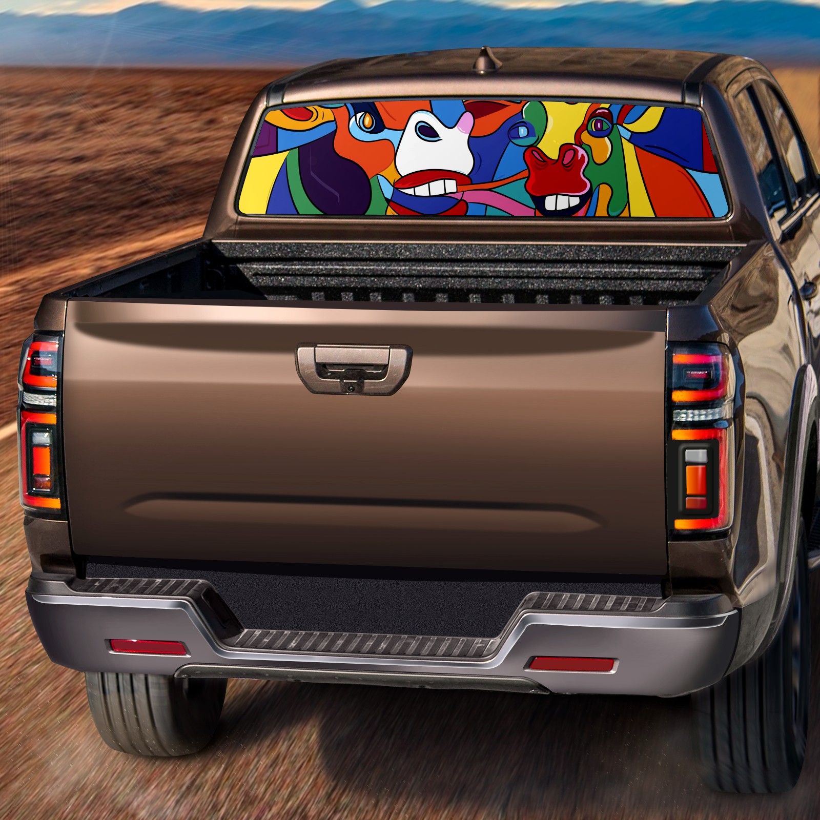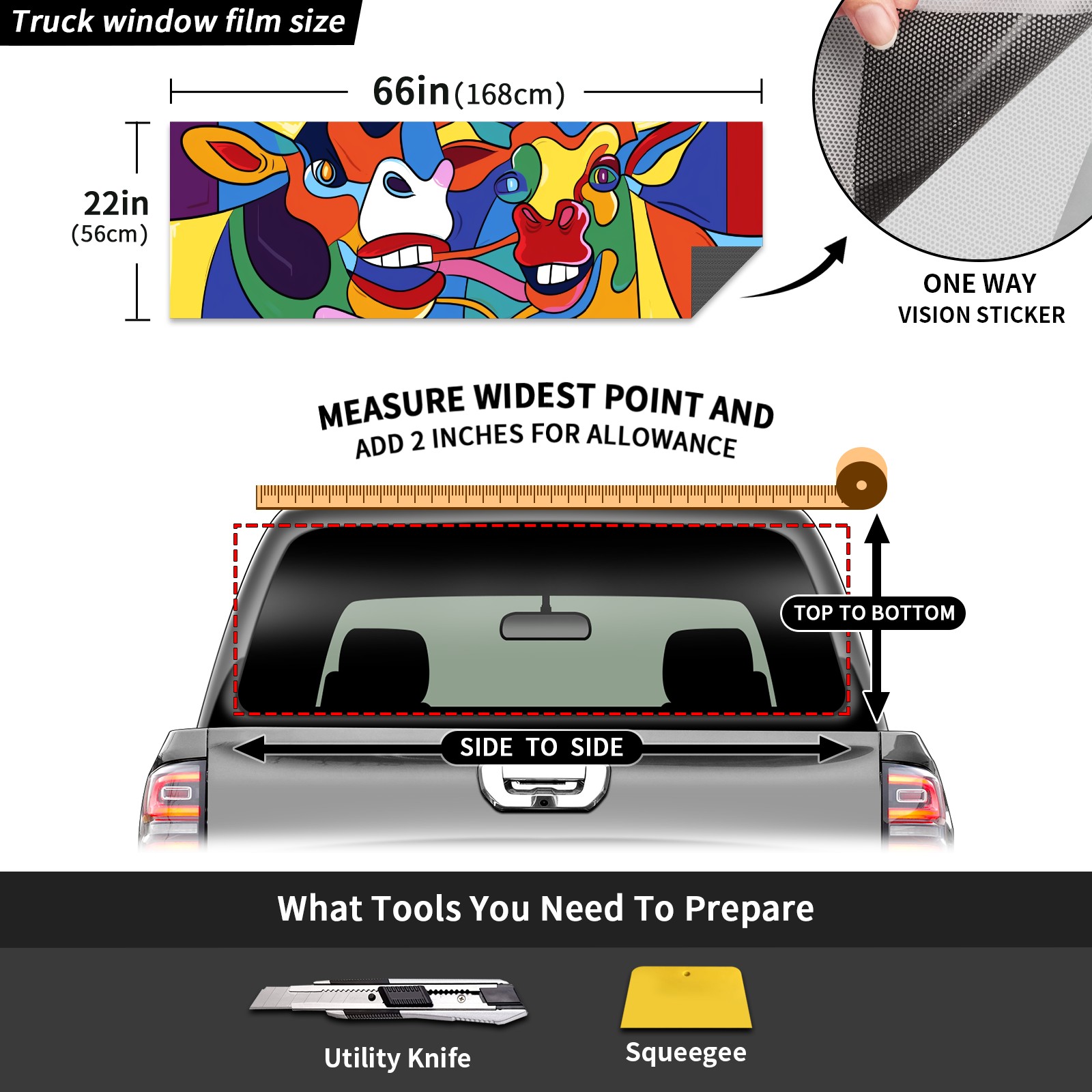 Truck Rear Window Graphics Decals Pickup Trucks Back Window Sticker Full Window Film Decal One Way Visual Waterproof Car Rear Tint Cow (74)
