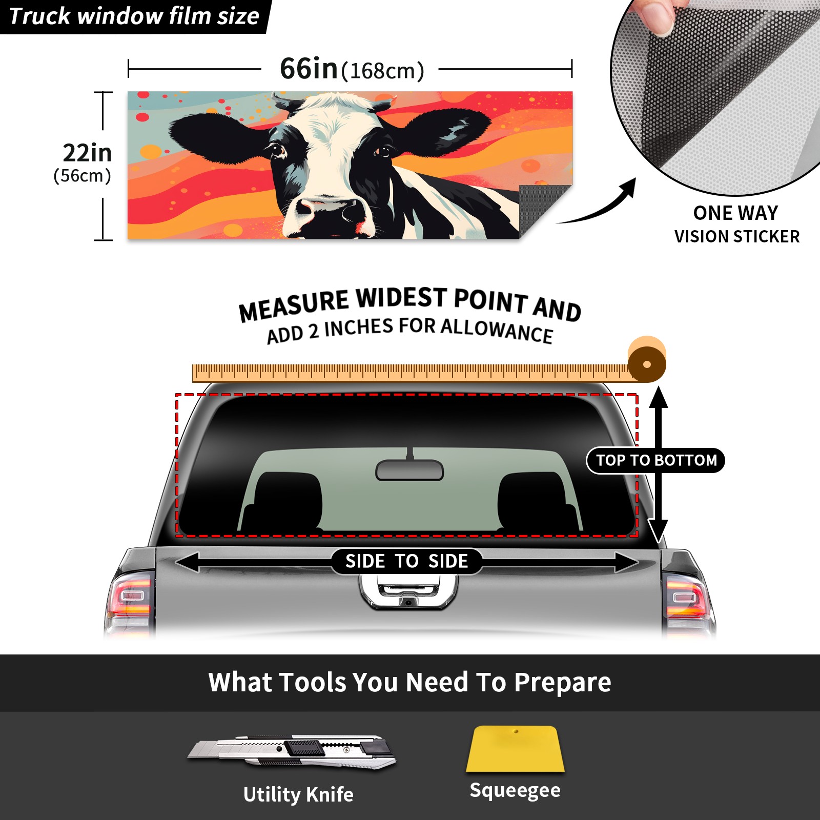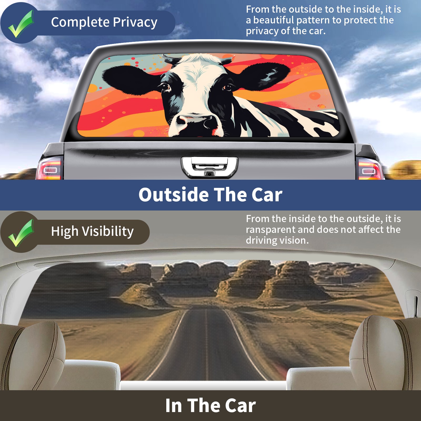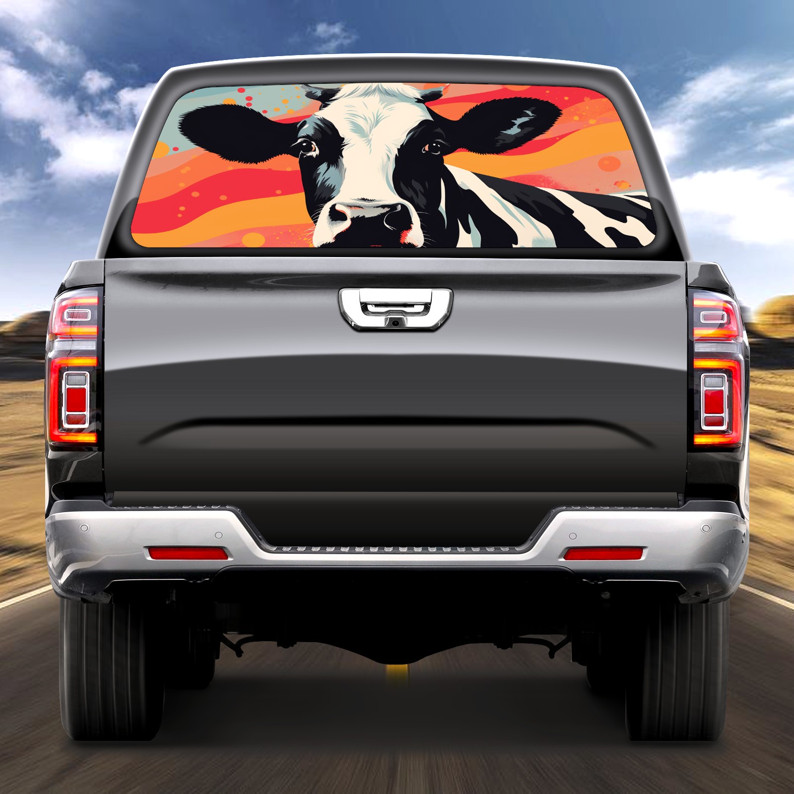 Truck Rear Window Graphics Decals Pickup Trucks Back Window Sticker Full Window Film Decal One Way Visual Waterproof Car Rear Tint Cow (30)