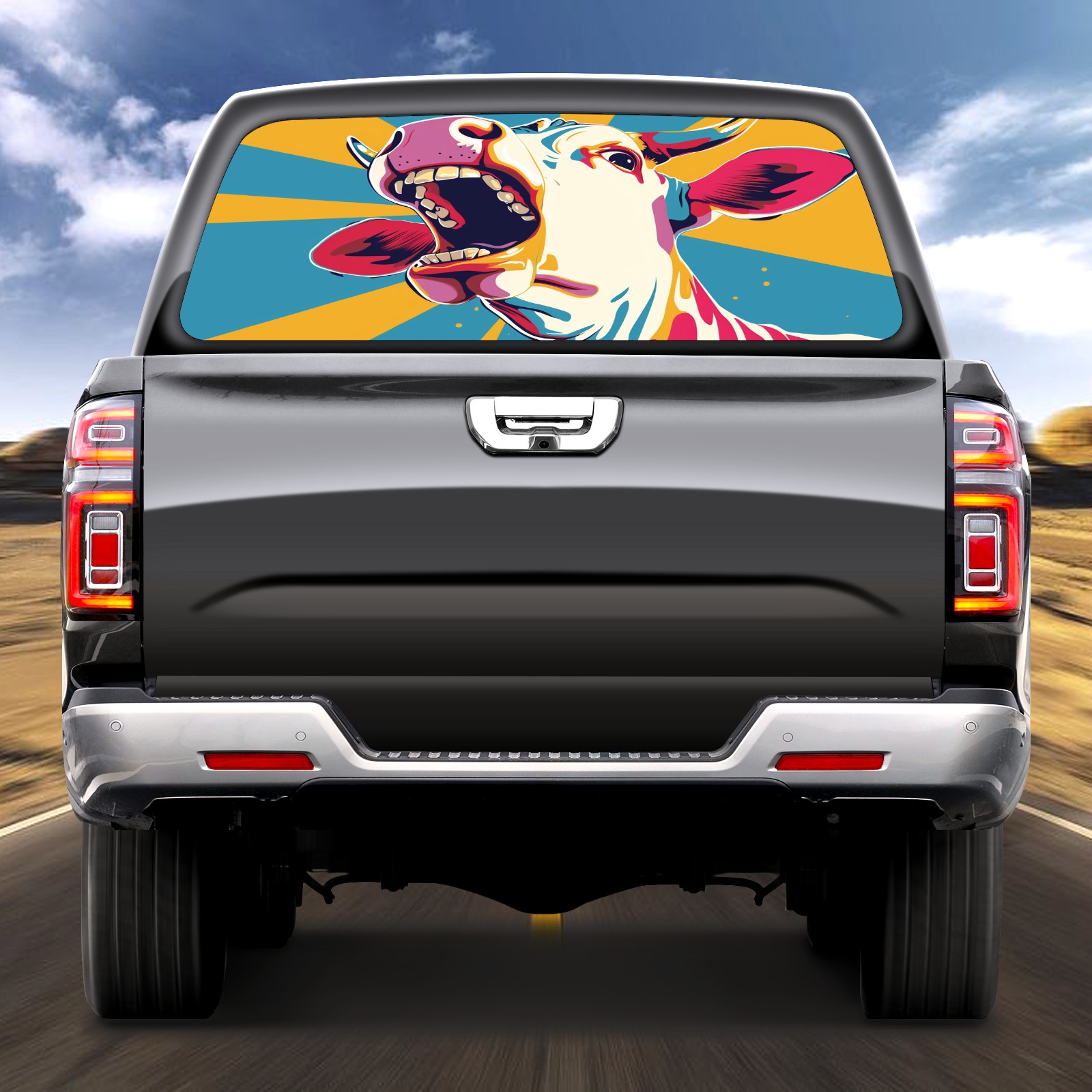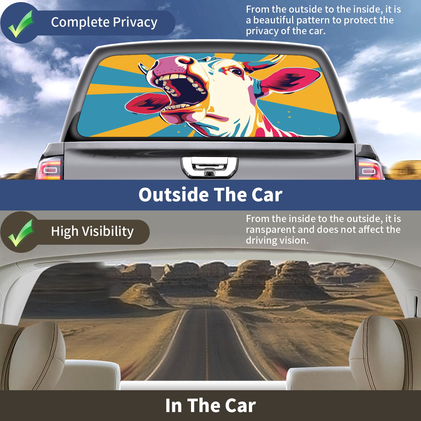 Truck Rear Window Graphics Decals Pickup Trucks Back Window Sticker Full Window Film Decal One Way Visual Waterproof Car Rear Tint Cow (73)