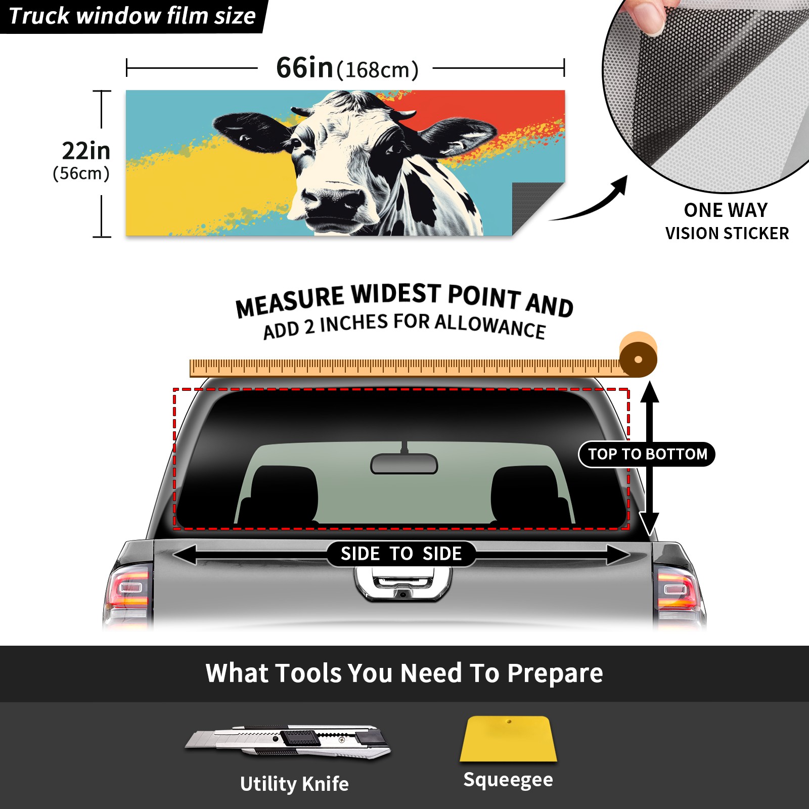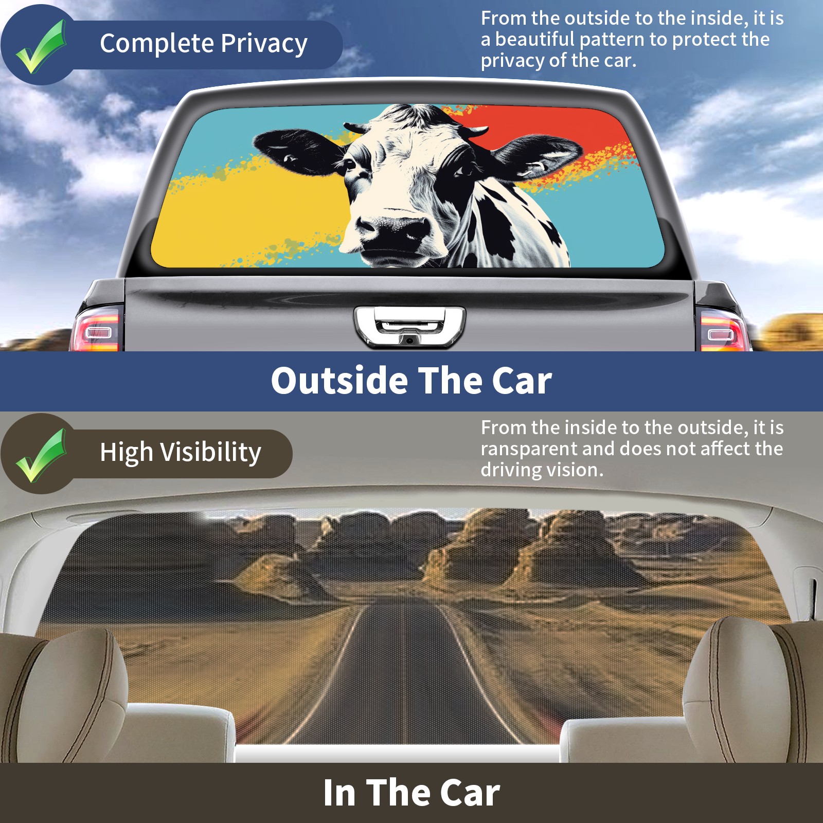 Truck Rear Window Graphics Decals Pickup Trucks Back Window Sticker Full Window Film Decal One Way Visual Waterproof Car Rear Tint Cow (27)