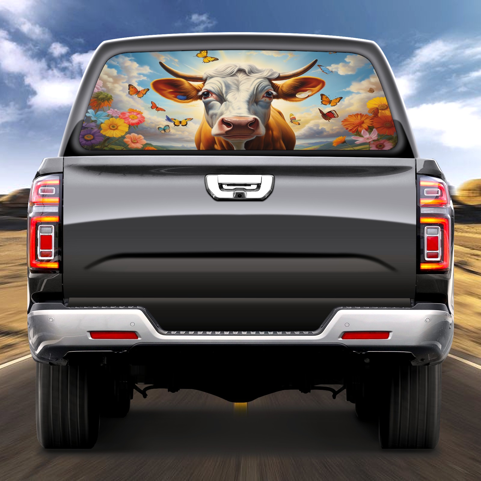 Truck Rear Window Graphics Decals Pickup Trucks Back Window Sticker Full Window Film Decal One Way Visual Waterproof Car Rear Tint Cow (79)