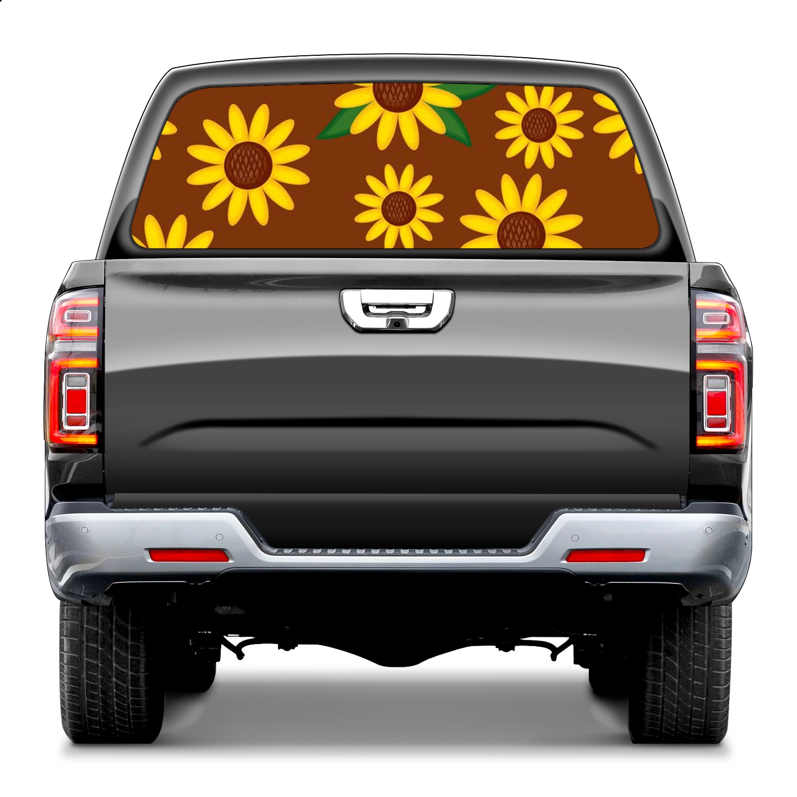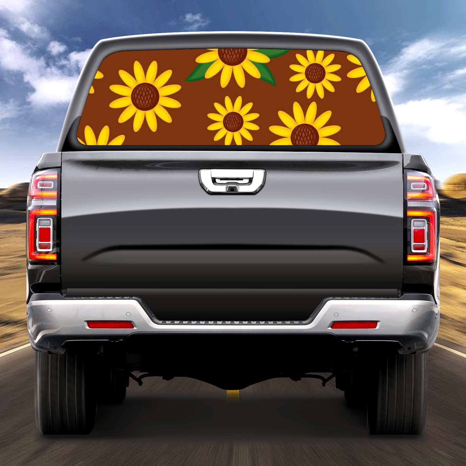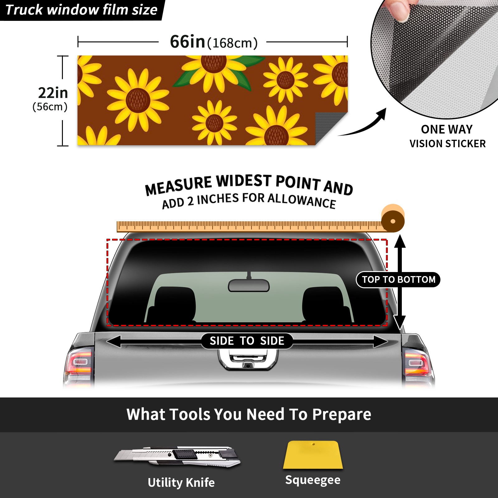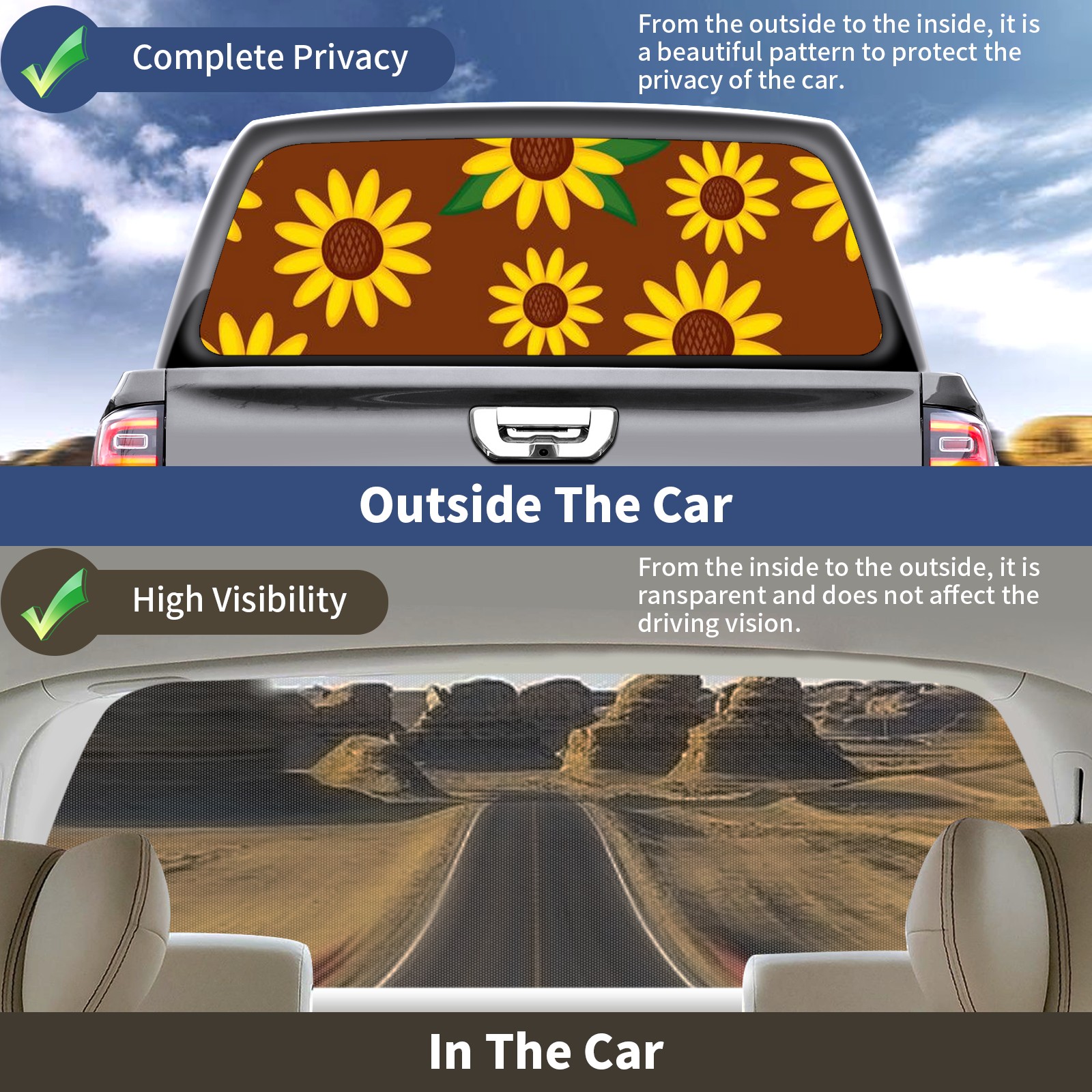 Truck Rear Window Graphics Decals Pickup Trucks Back Window Sticker Full Window Film Decal One Way Visual Waterproof Car Rear Tint Sunflower