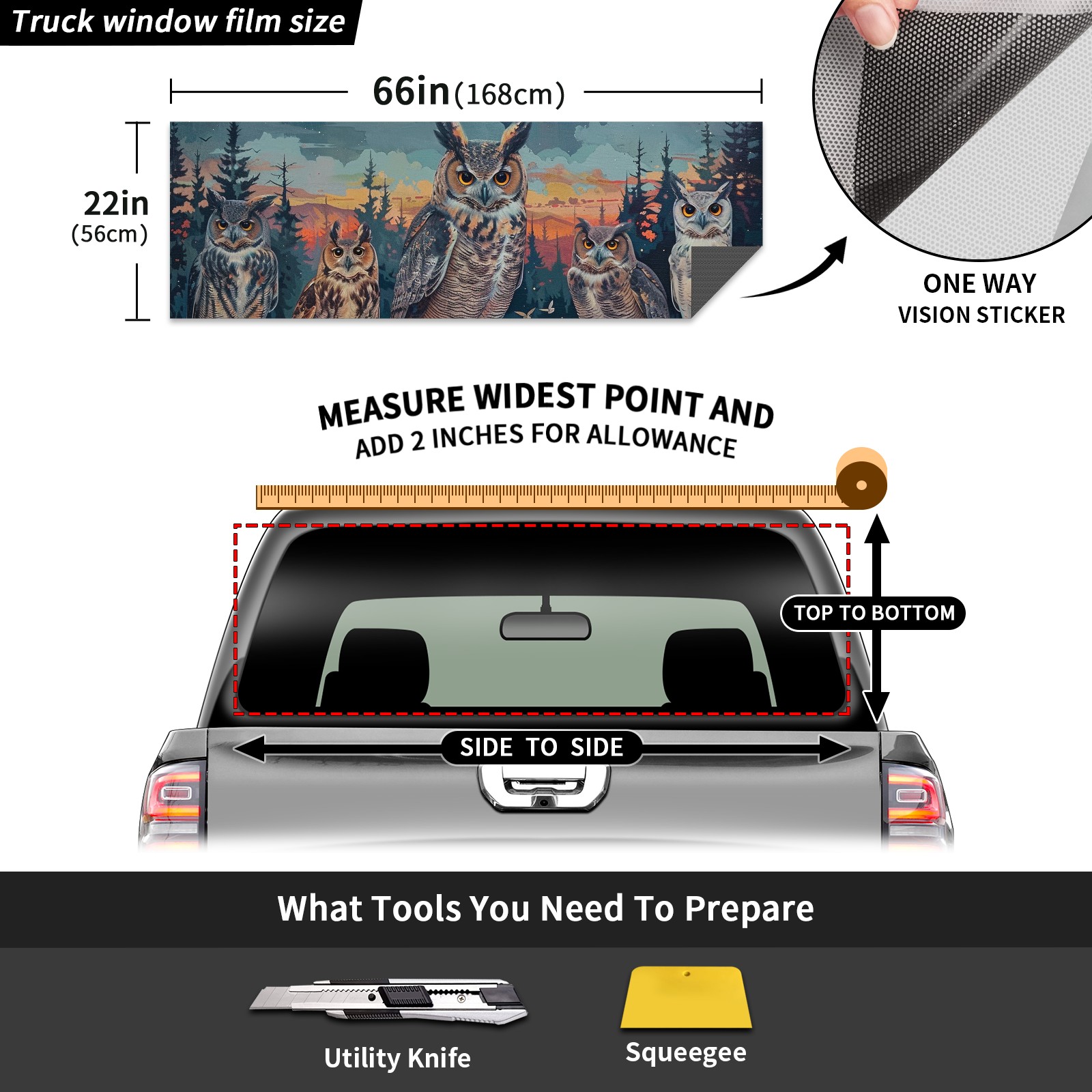 Truck Rear Window Graphics Decals Pickup Trucks Back Window Sticker Full Window Film Decal One Way Visual Waterproof Car Rear Tint Owl