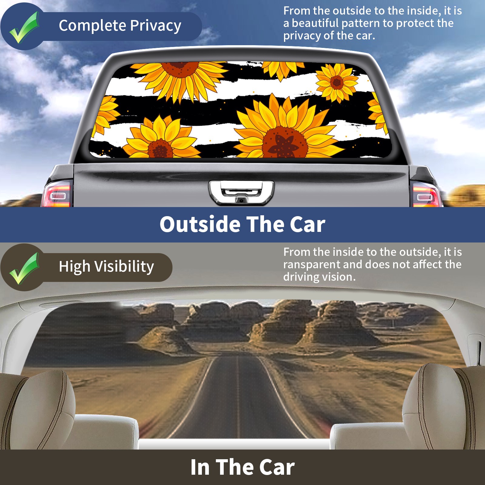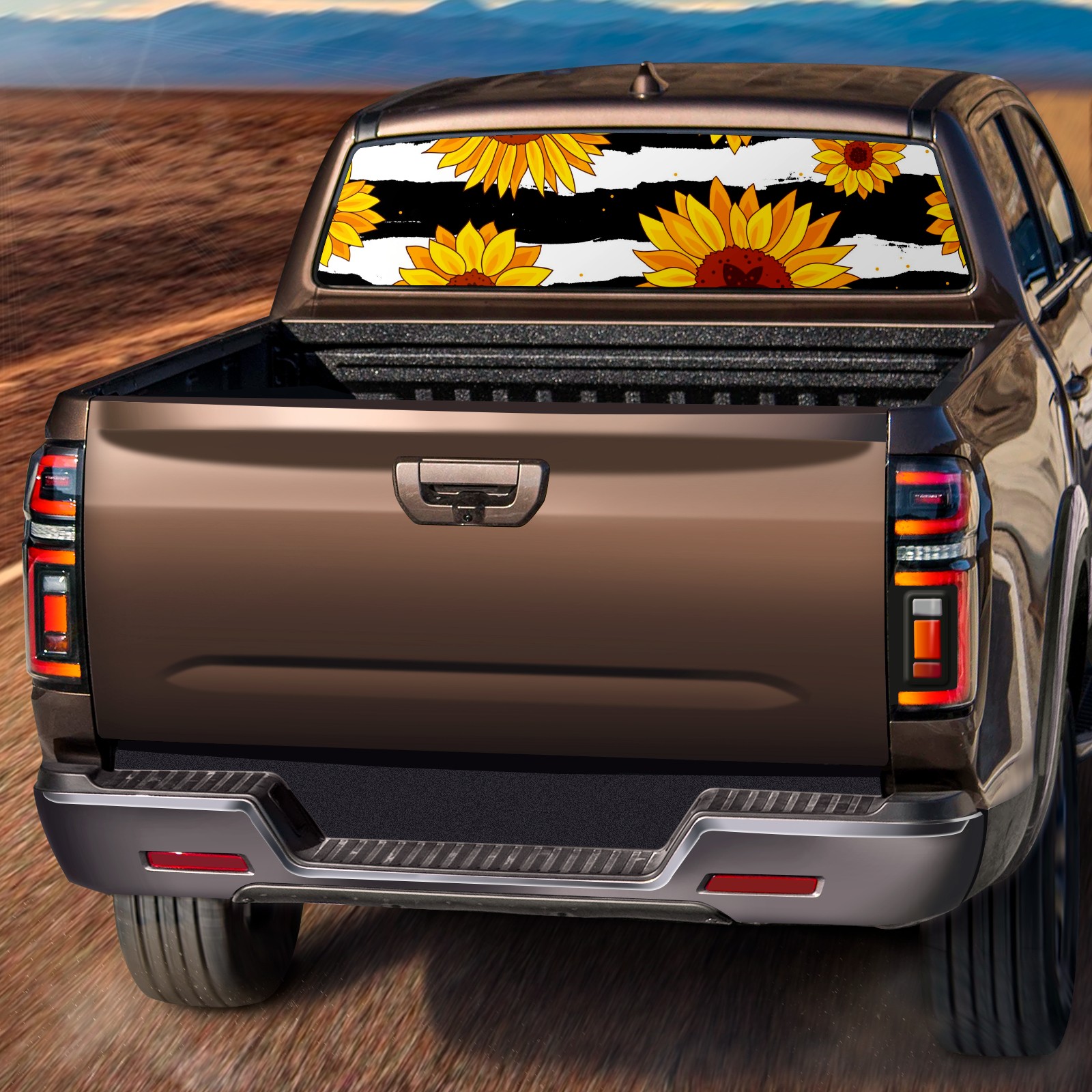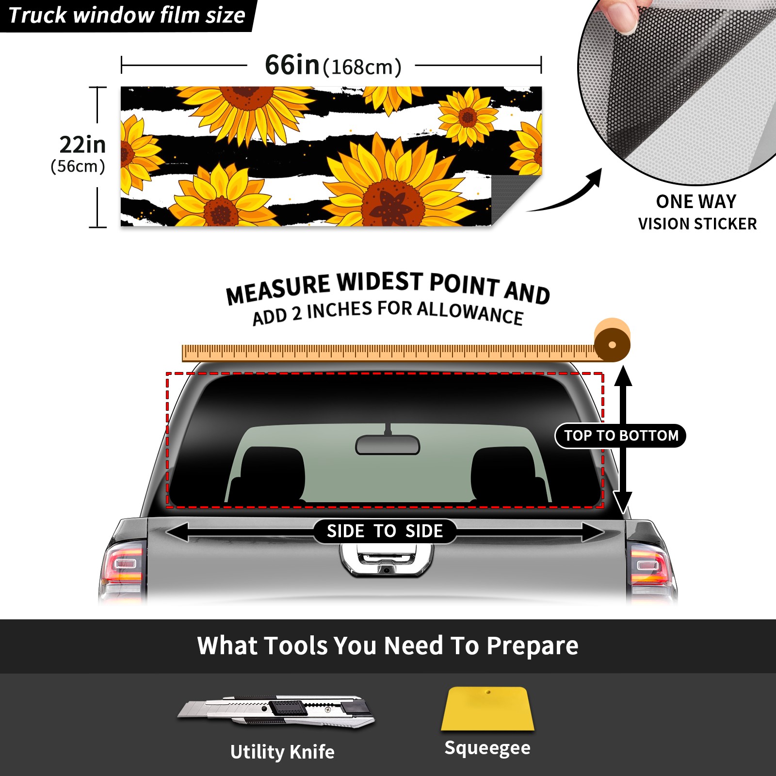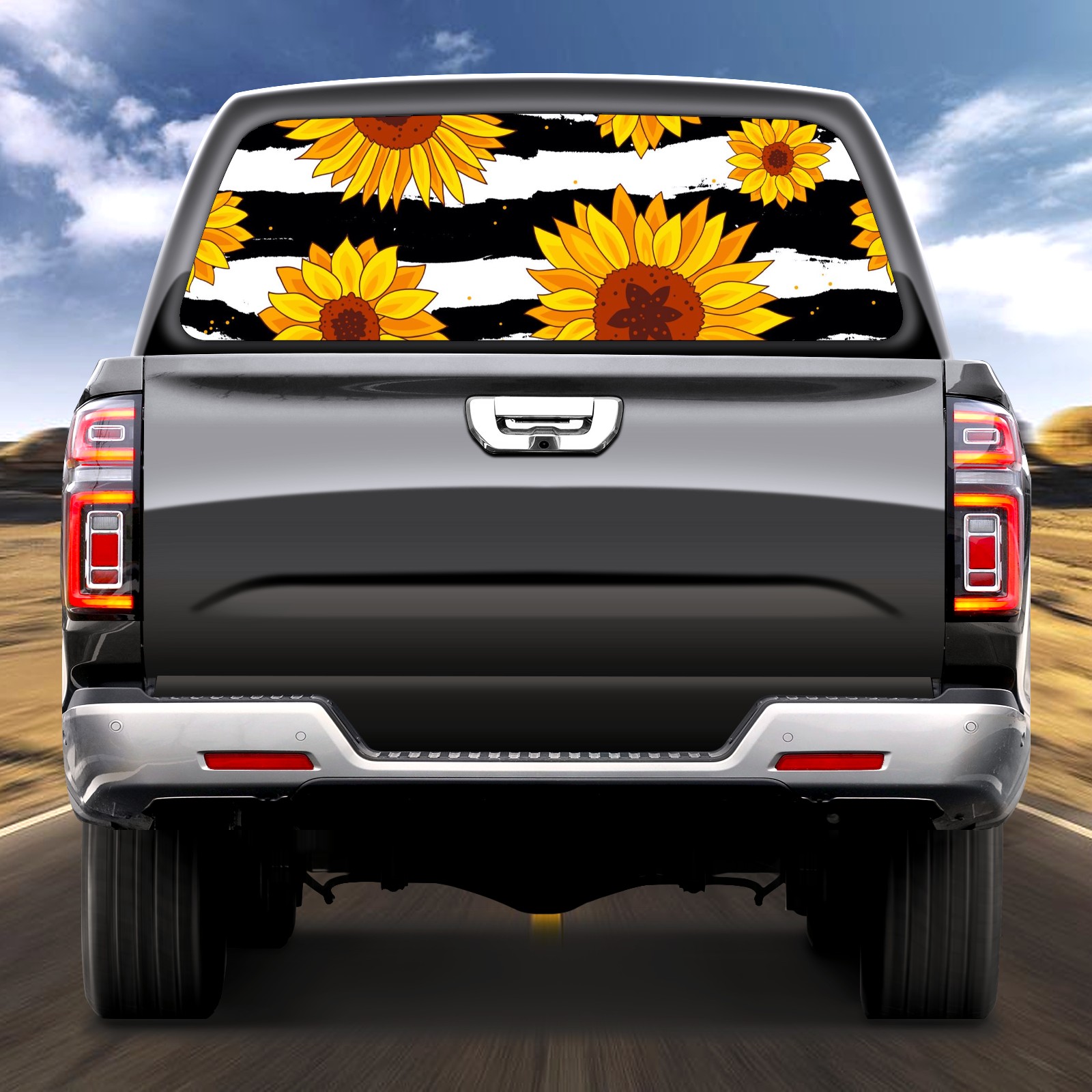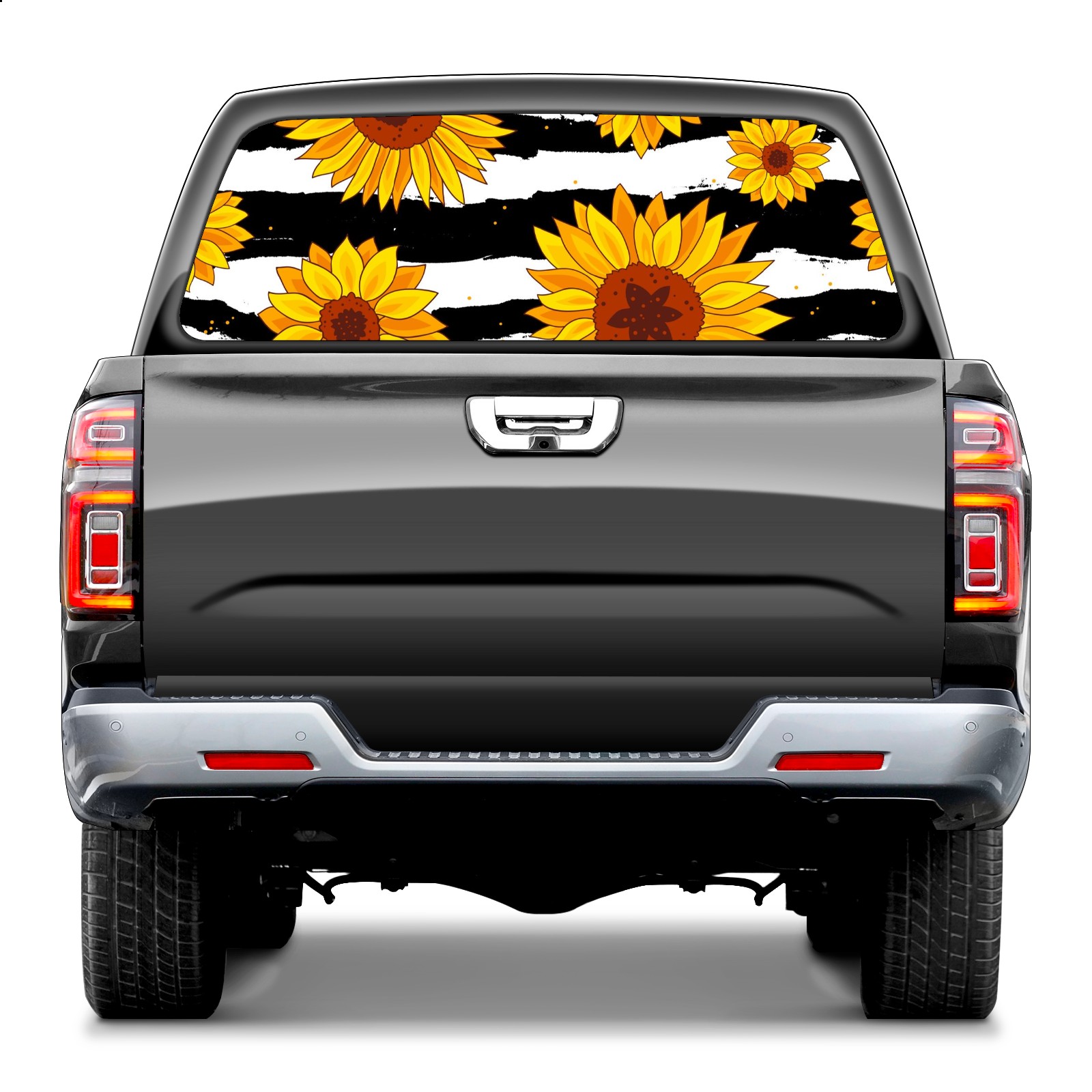 Truck Rear Window Graphics Decals Pickup Trucks Back Window Sticker Full Window Film Decal One Way Visual Waterproof Car Rear Tint Sunflowers On Striped Black And White