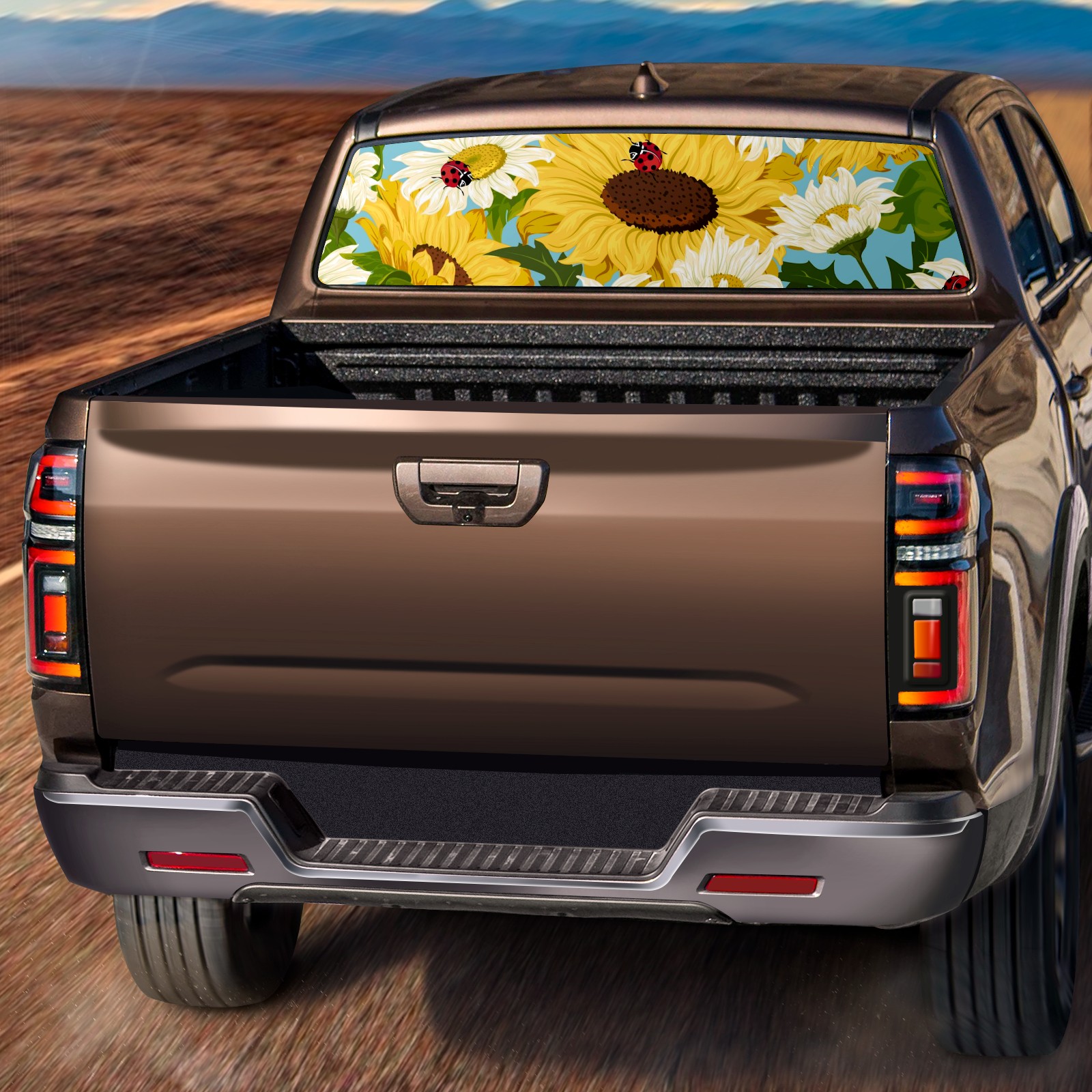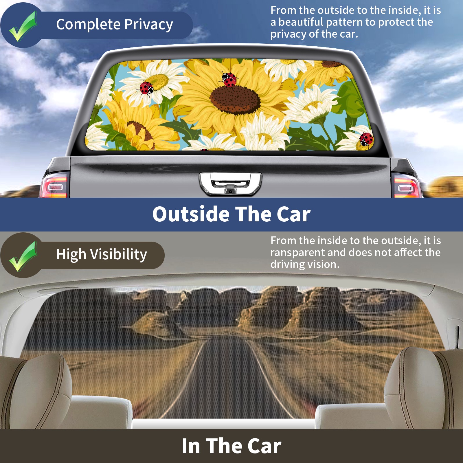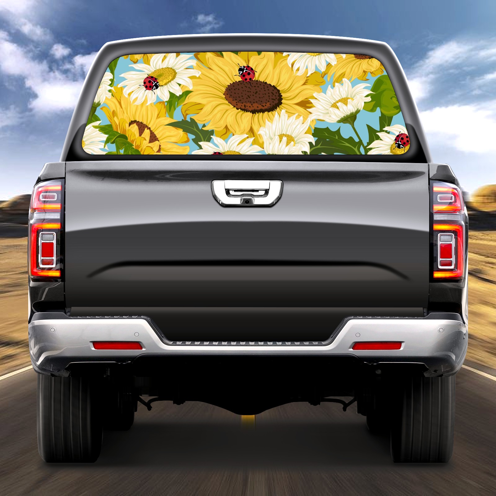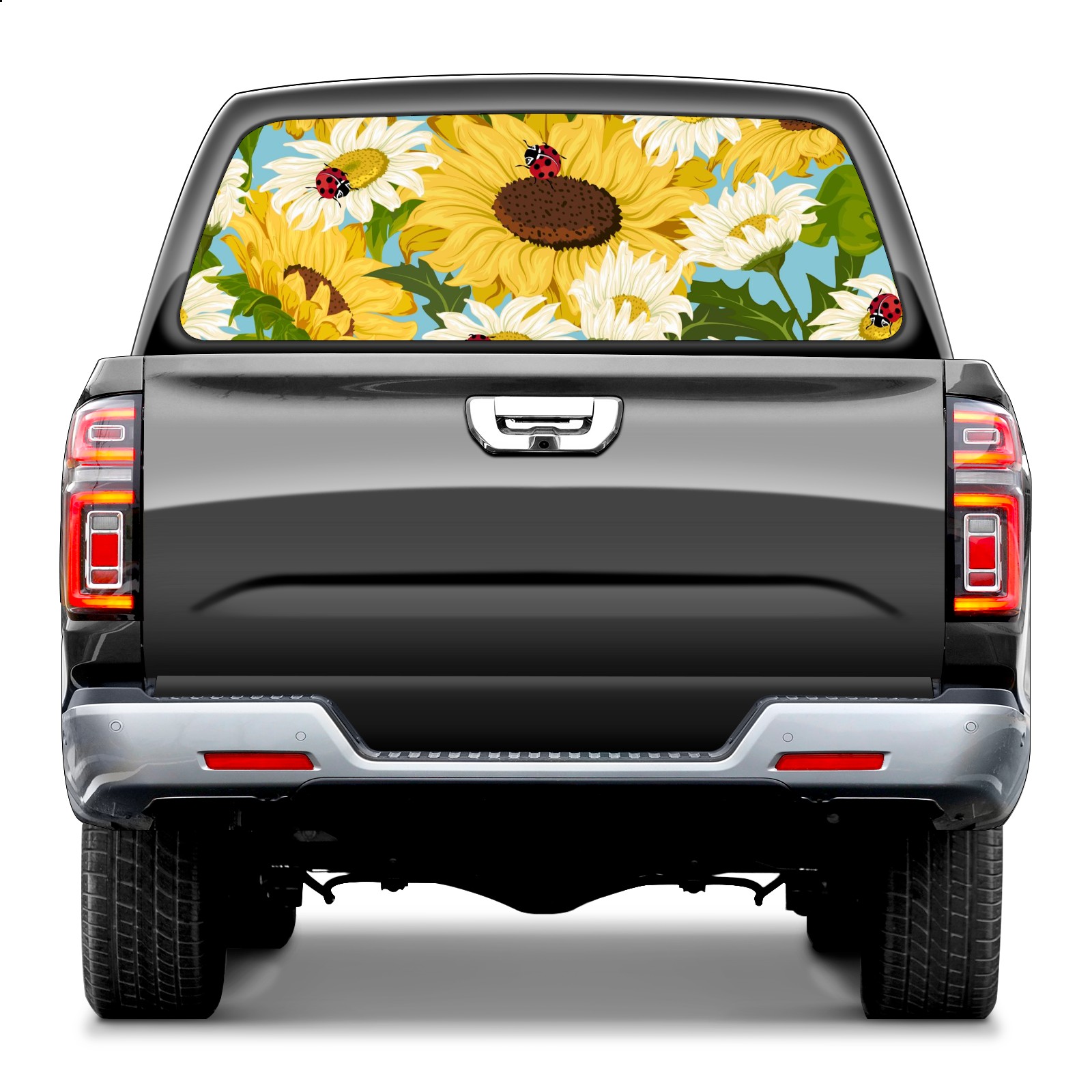 Truck Rear Window Graphics Decals Pickup Trucks Back Window Sticker Full Window Film Decal One Way Visual Waterproof Car Rear Tint Sunflowers And Ladybugs