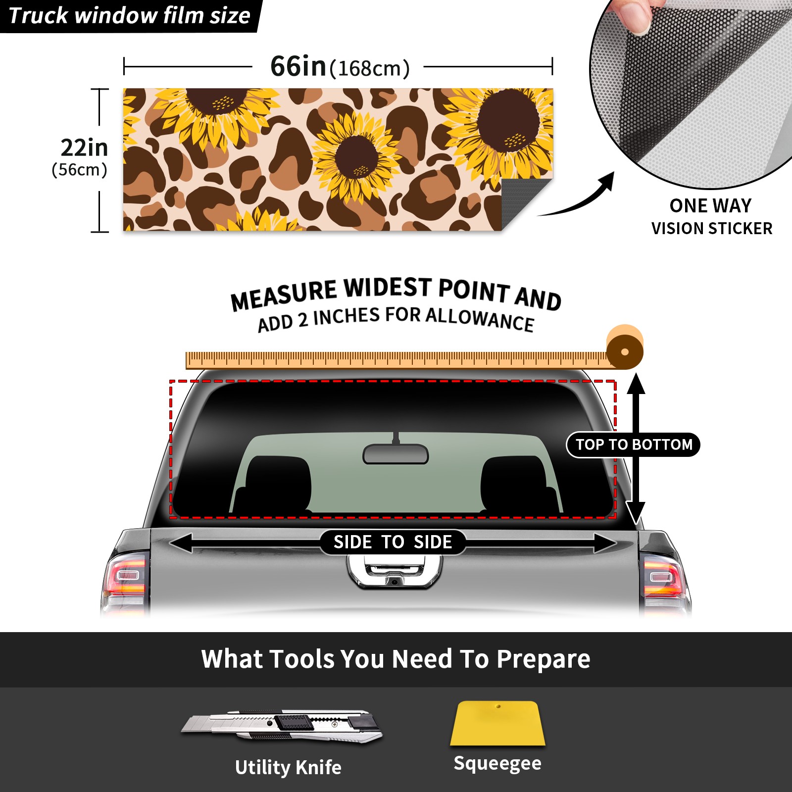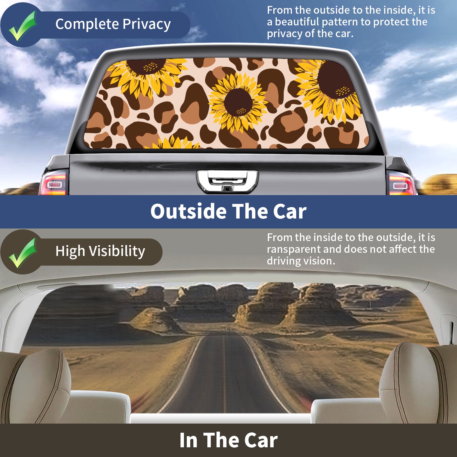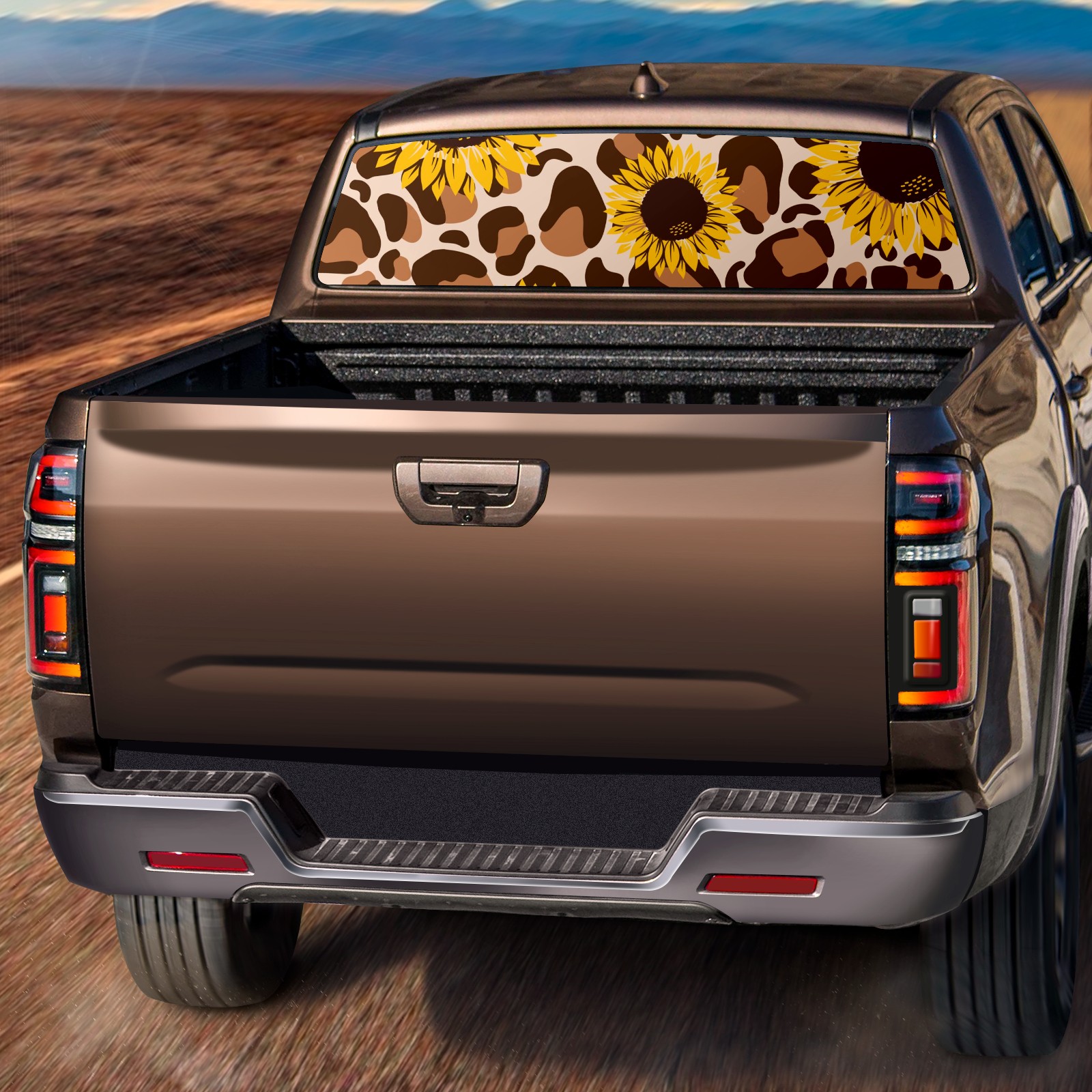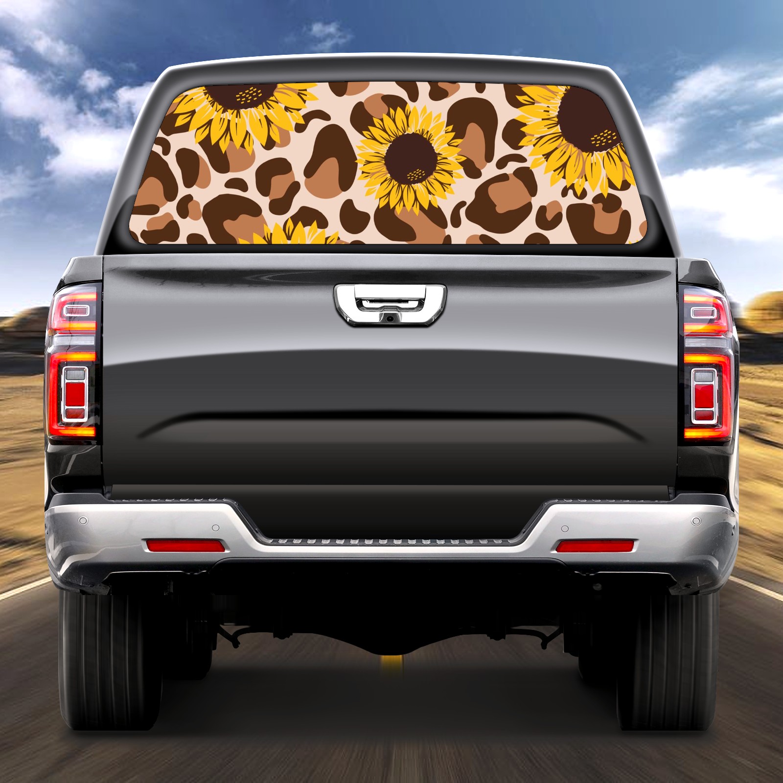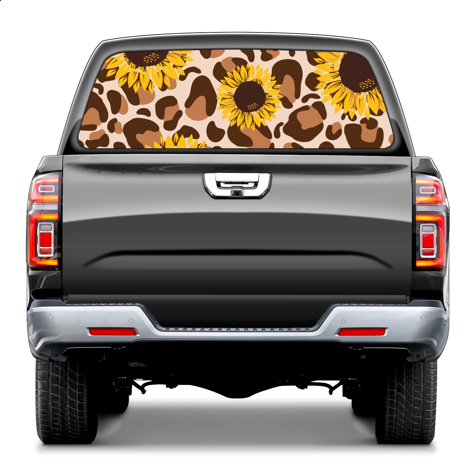Truck Rear Window Graphics Decals Pickup Trucks Back Window Sticker Full Window Film Decal One Way Visual Waterproof Car Rear Tint Retro Leopard Sunflower
