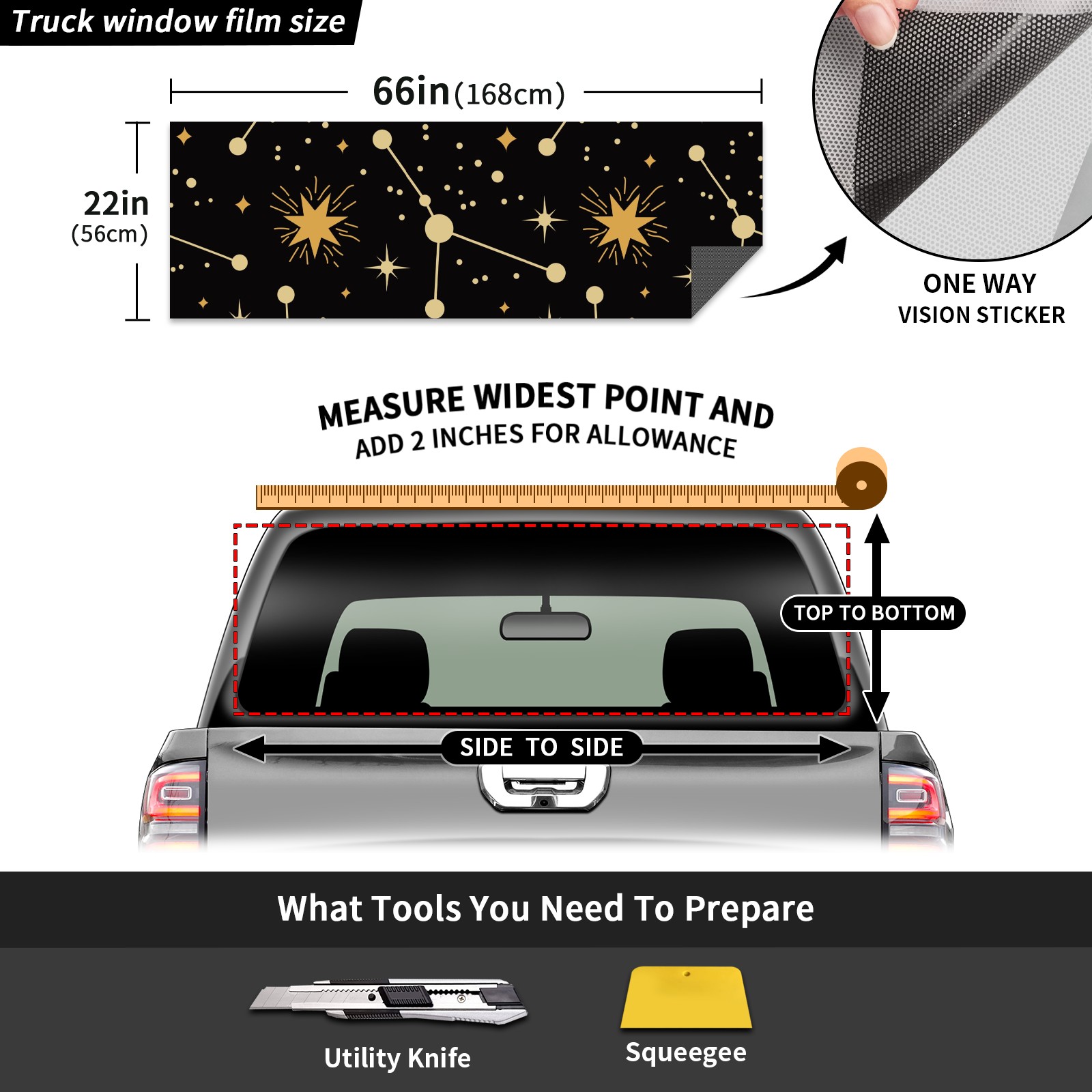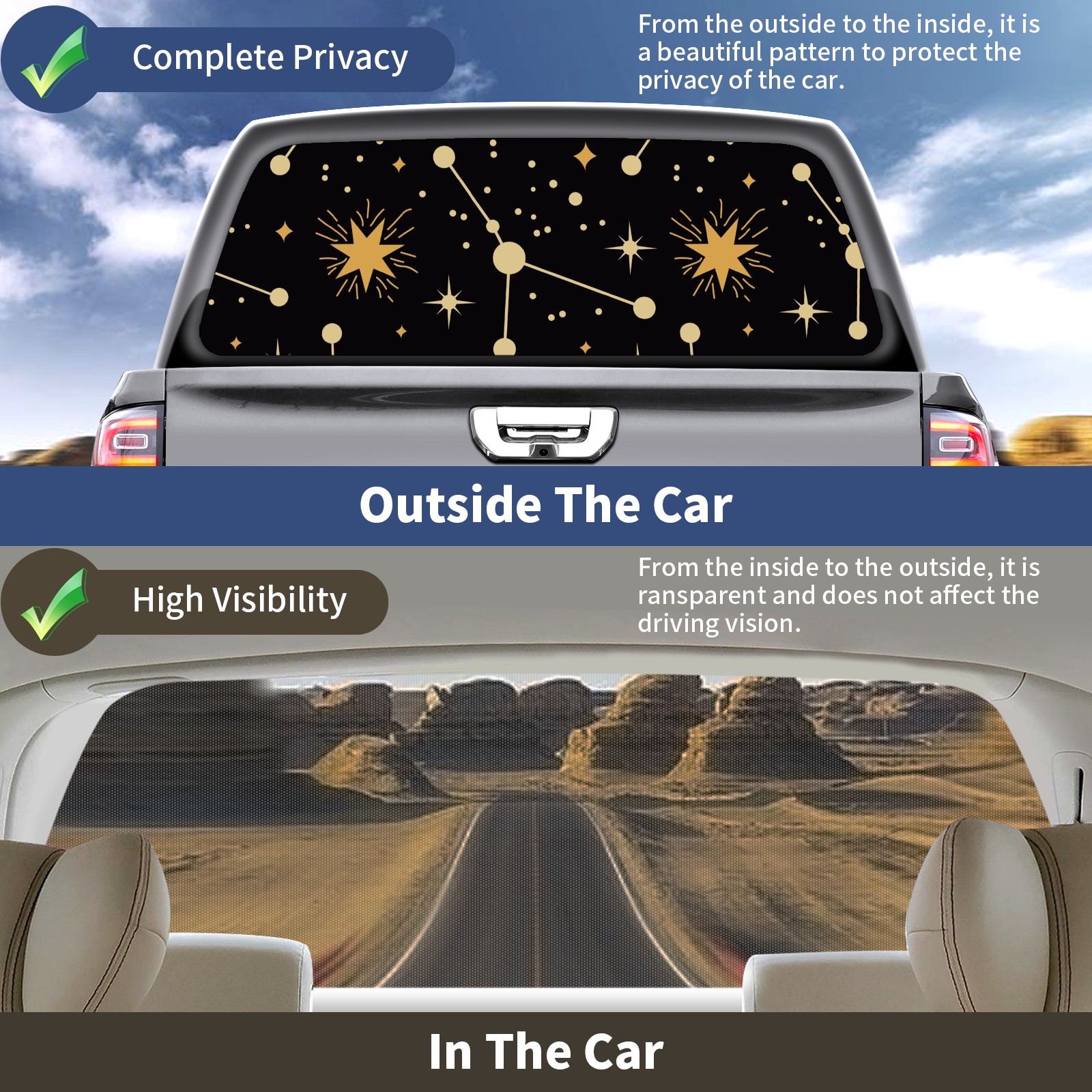 <b>One-Way Light Transmission Window Film Protect Your Privacy While Allowing You To Enjoy The Scenery Outside Your Window!</b> <br> <b>●Decals Instructions Usage--Teach You To Use Quickly</b> <br> 1.Clean the window galss thoroughly <br> 2.Use a Squeegee or other card to scrape off the remaining water and bumps(don't use too much force) <br> 3.Remove the film's back cover .Use a knife to cut out a suitable contour and wipe off the remaining water(you can also use a hair dryer to blow dry) <br> 4.Find a suitable location and stick a sticker <br> <b>●Unique Design</b> <br> ZXIVGOQFR Back window stickers ‘s smart looking and unique cute design makes your vehicle special under sunshine. Makes your car easy to identify, perfect for finding your car in crowded parking lots and garages.funny visor reflects personality and attitude. <br> <b>●Perfect Gift for all Drivers<br></b> We create all the gifts and accessories you only need to choose what you like. Get full tailgate wraps, rear window decals, and everything you need to make your pickup truck look awesome. <br> <b>Decorate Your Pickup Truck With Rear Window Decal Today!</b>
