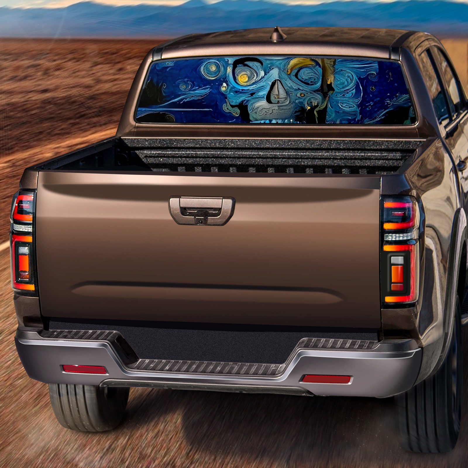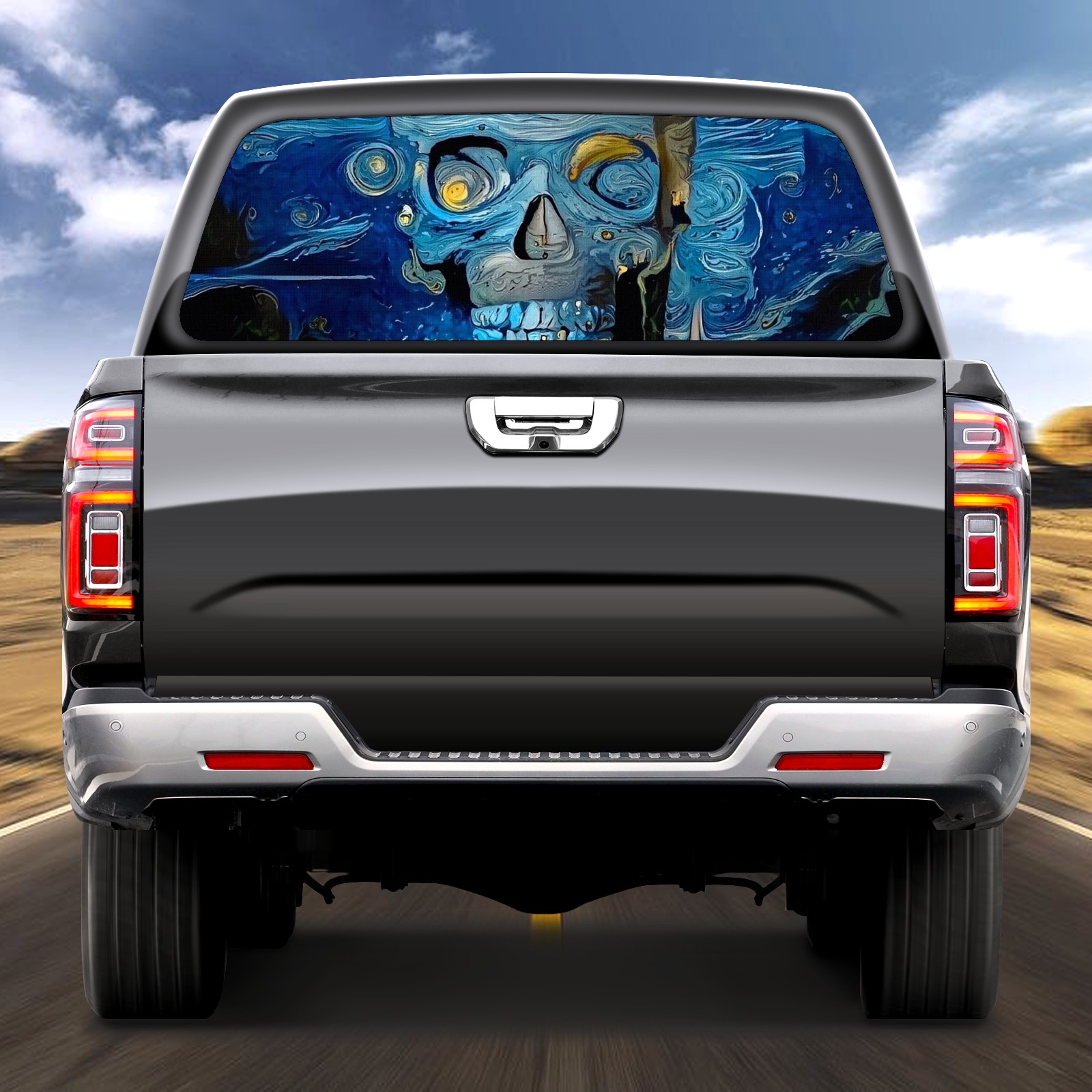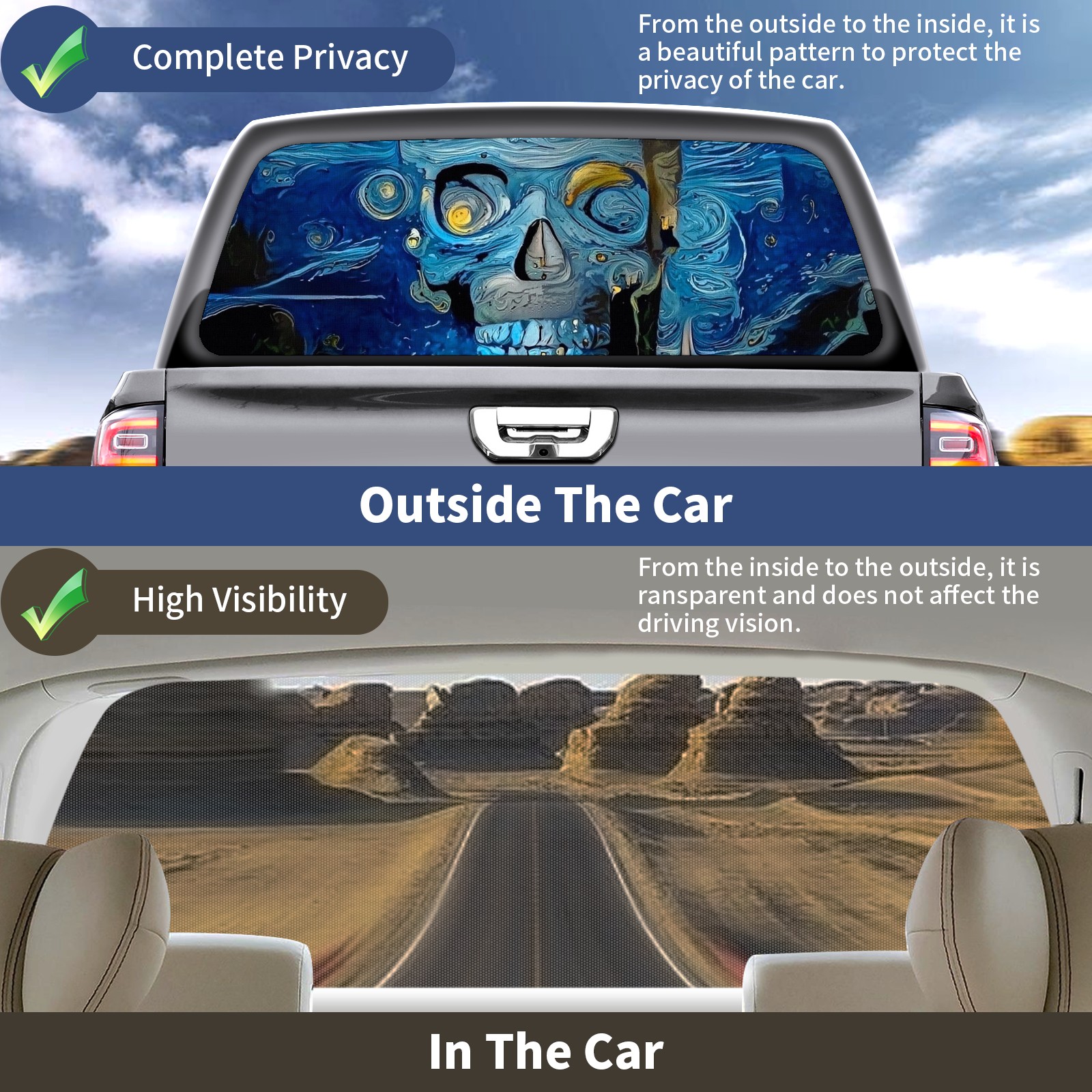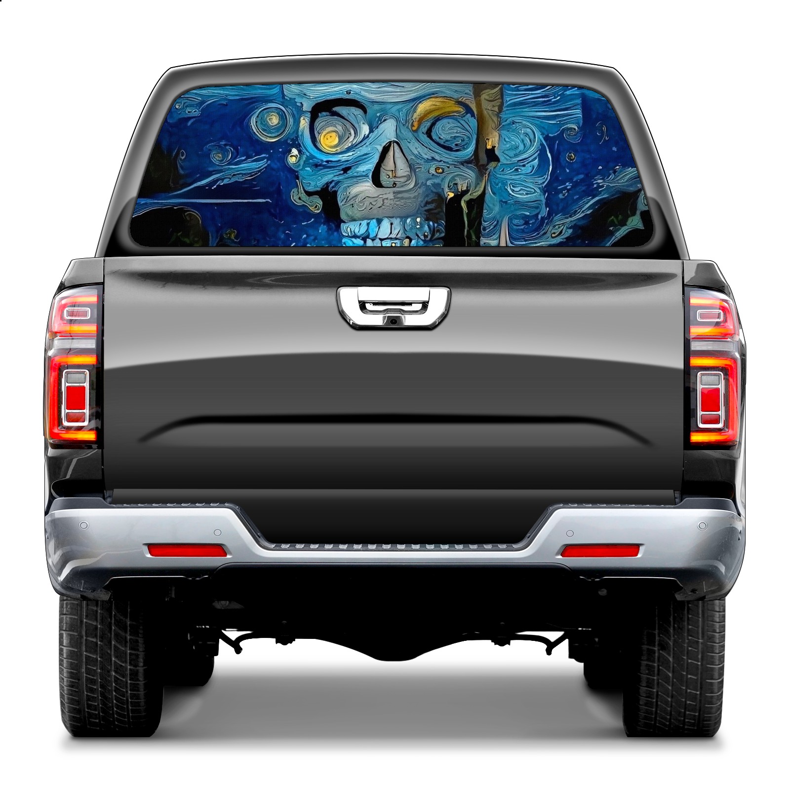 Truck Rear Window Graphics Decals Pickup Trucks Back Window Sticker Full Window Film Decal One Way Visual Waterproof Car Rear Tint Abstract Blue Skull