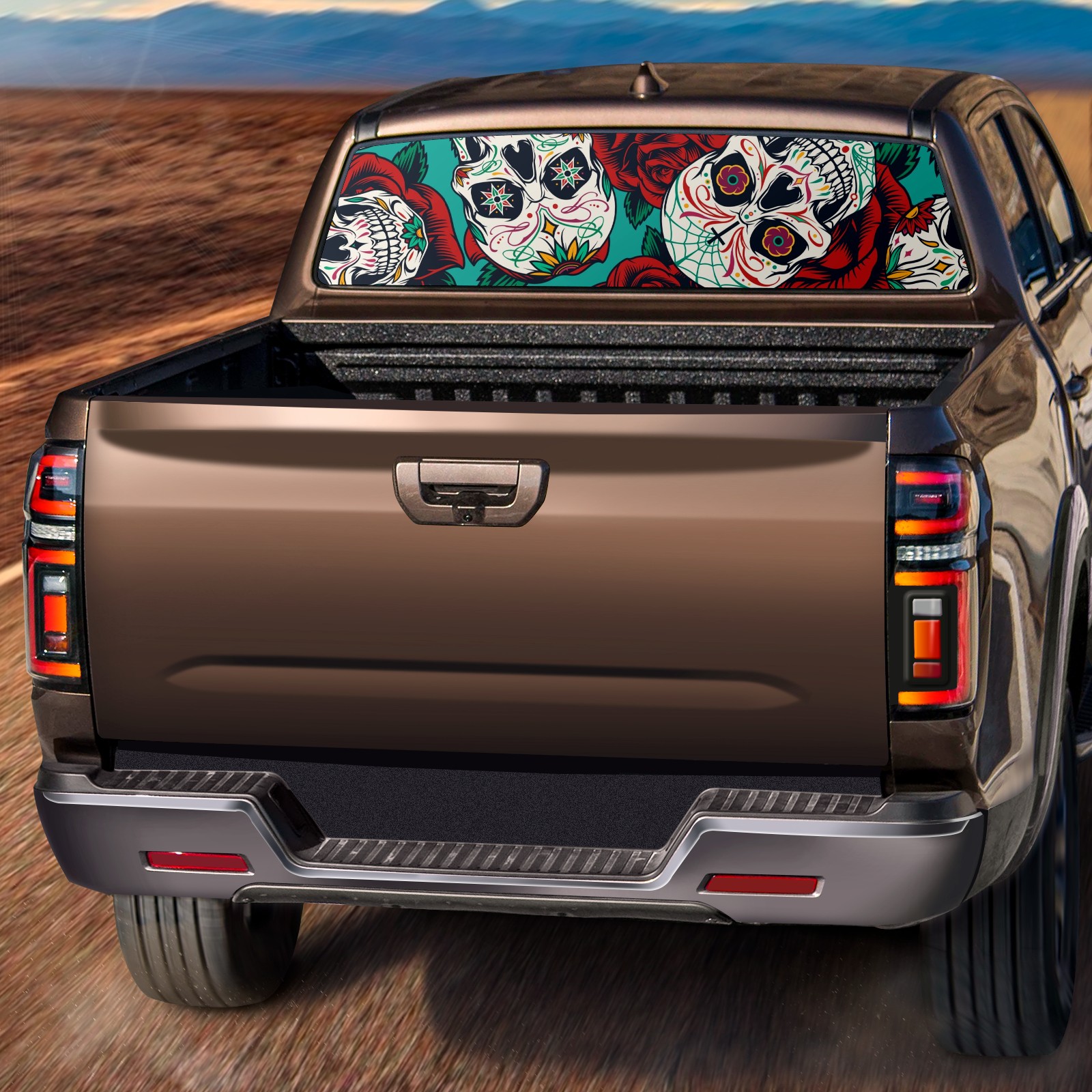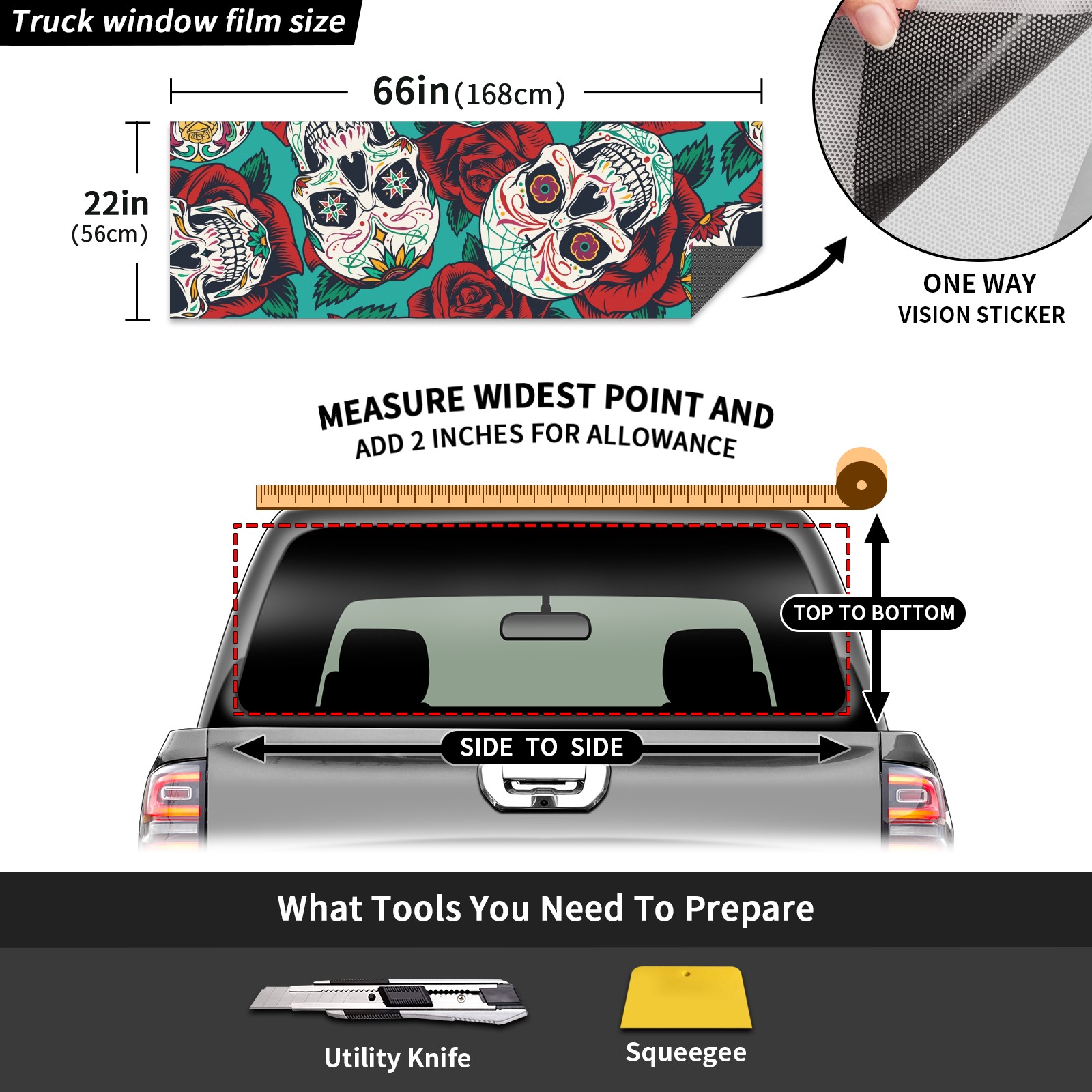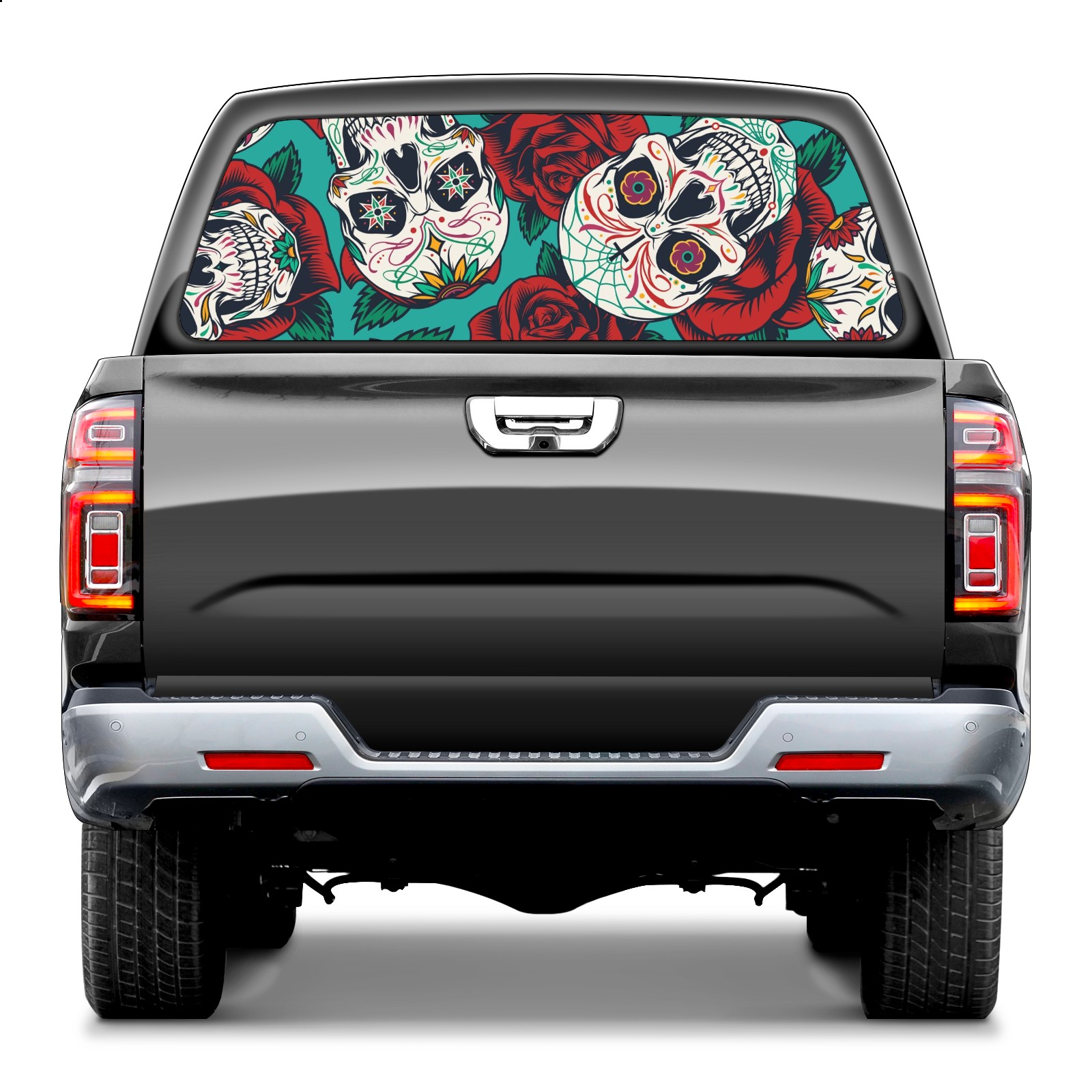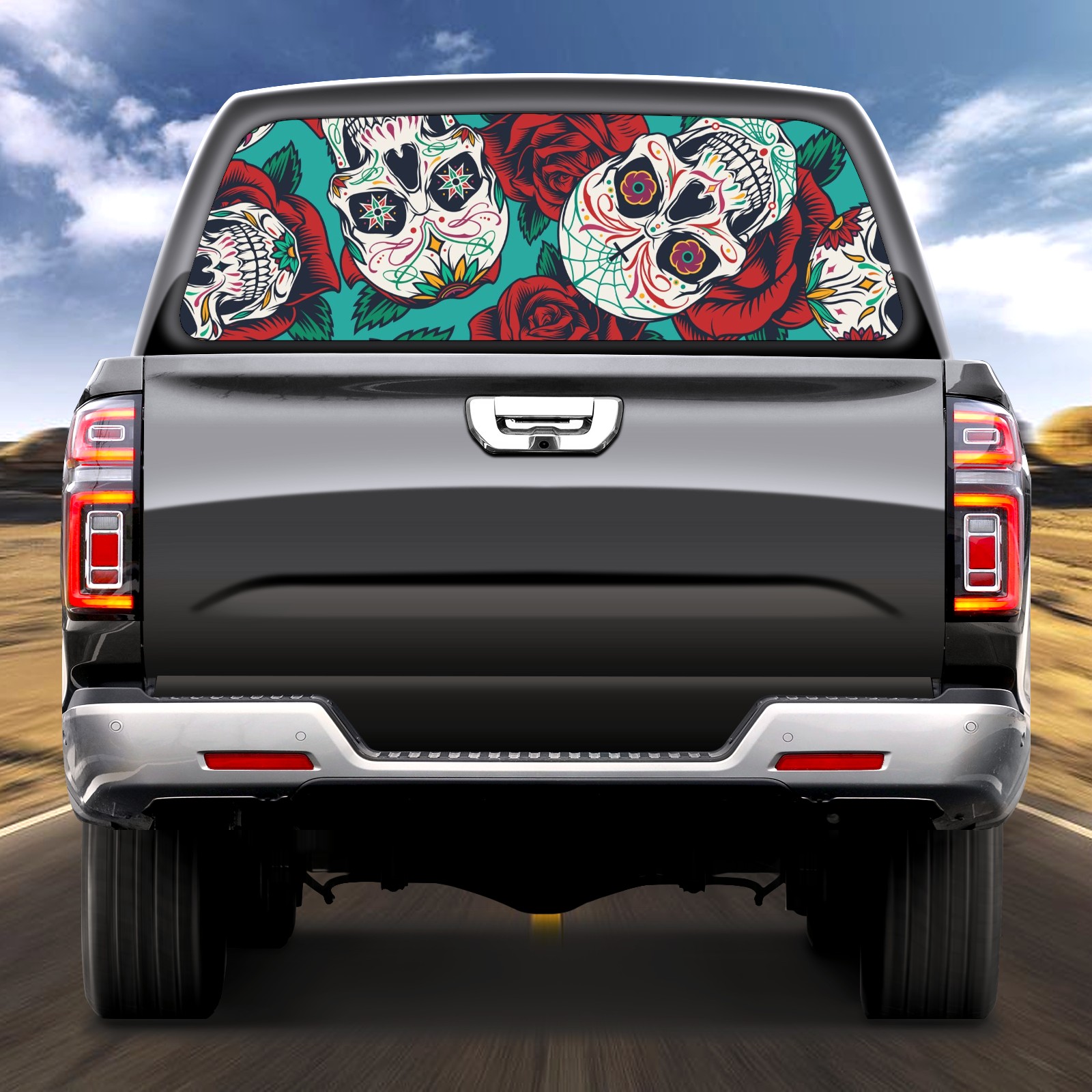 Truck Rear Window Graphics Decals Pickup Trucks Back Window Sticker Full Window Film Decal One Way Visual Waterproof Car Rear Tint Vintage Skull Rose Flowers