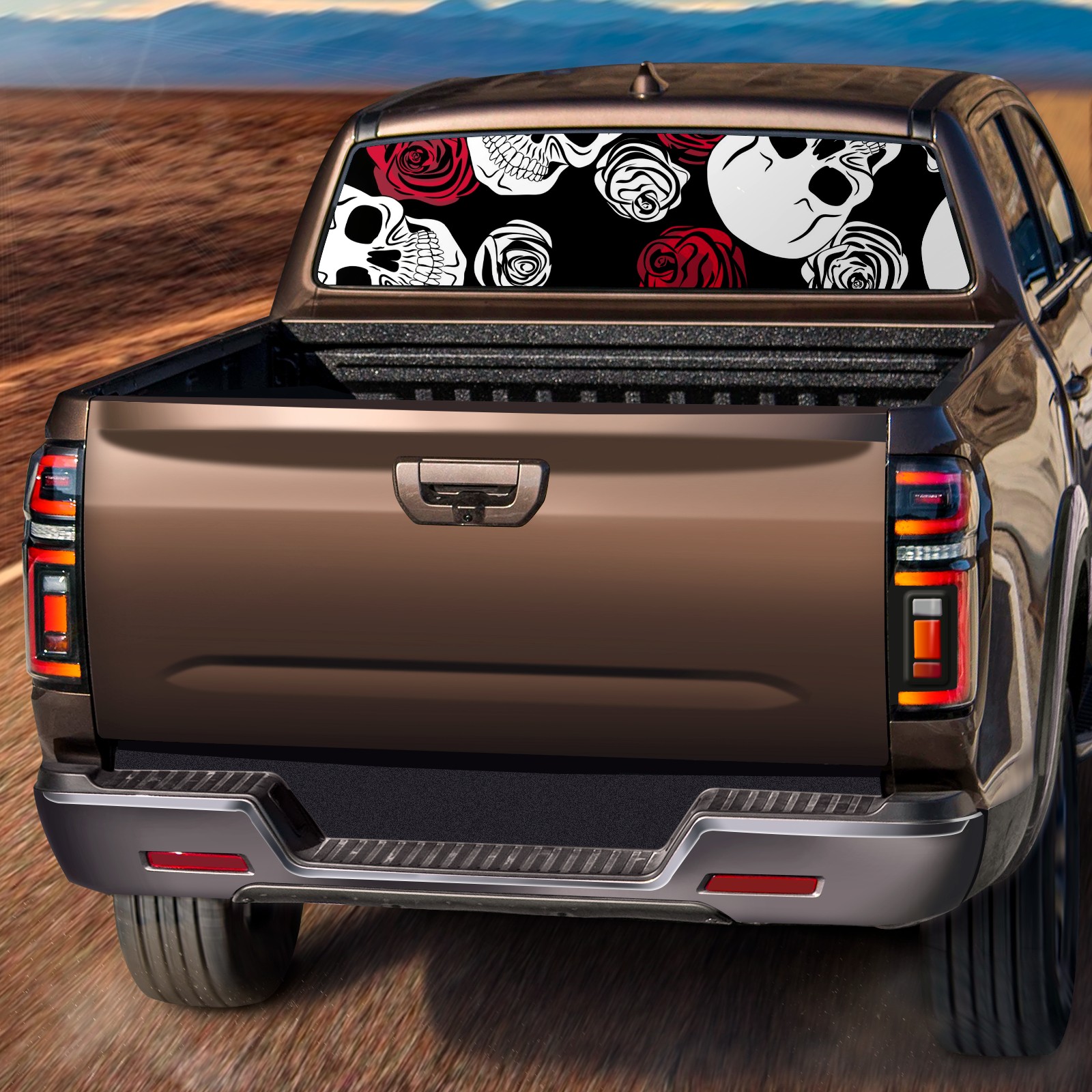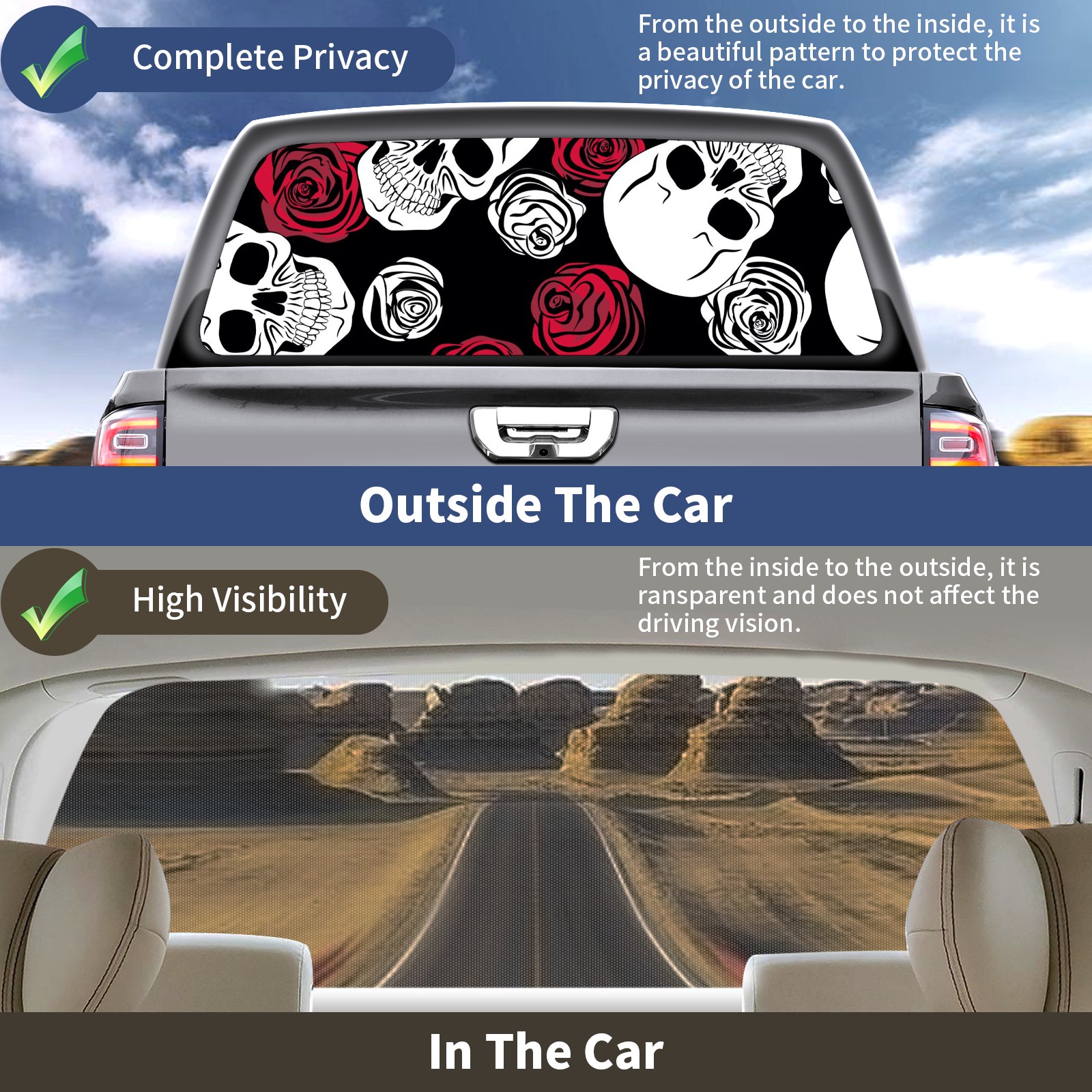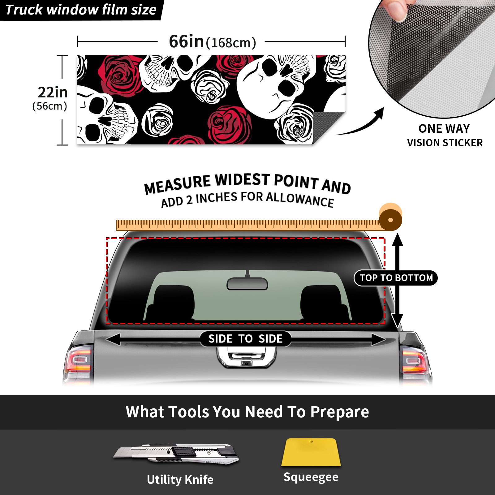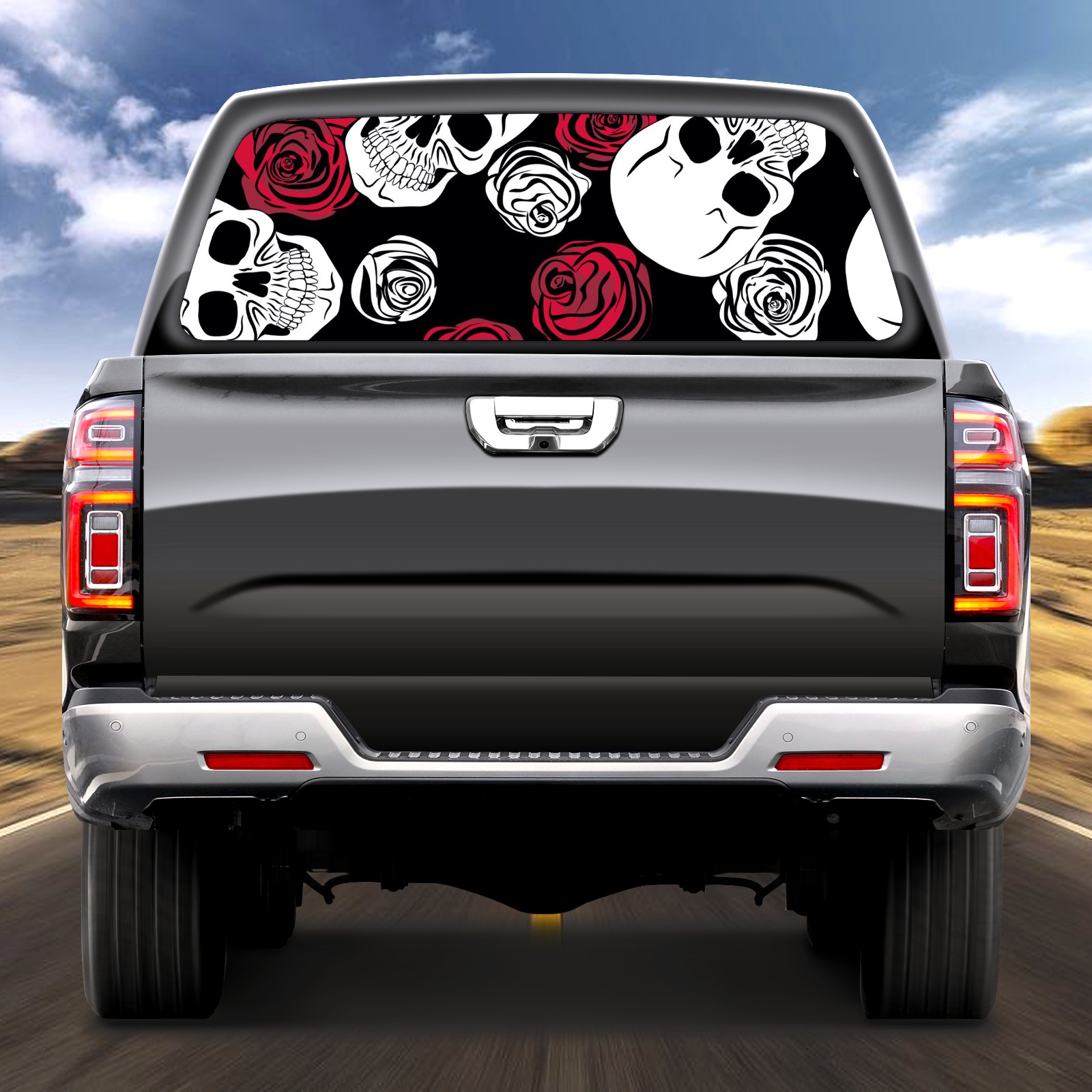 Truck Rear Window Graphics Decals Pickup Trucks Back Window Sticker Full Window Film Decal One Way Visual Waterproof Car Rear Tint Skull Red White Rose