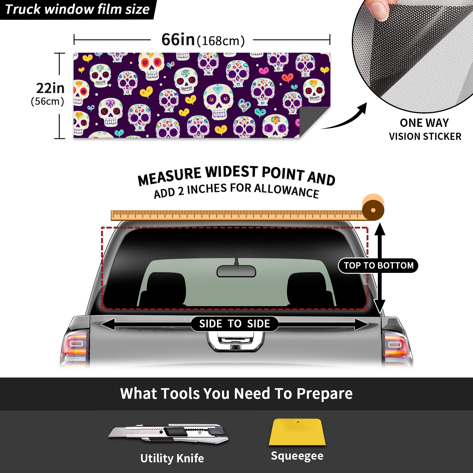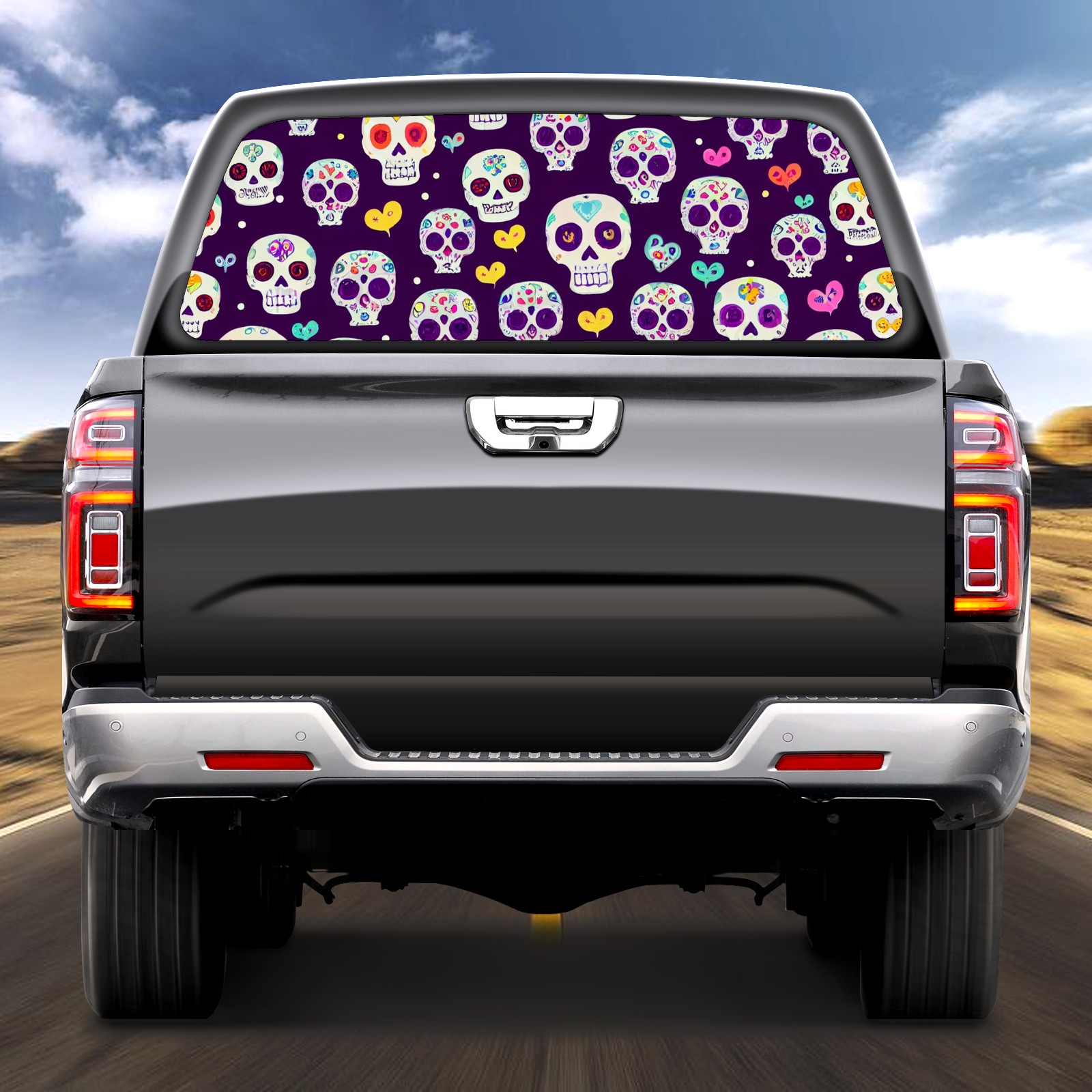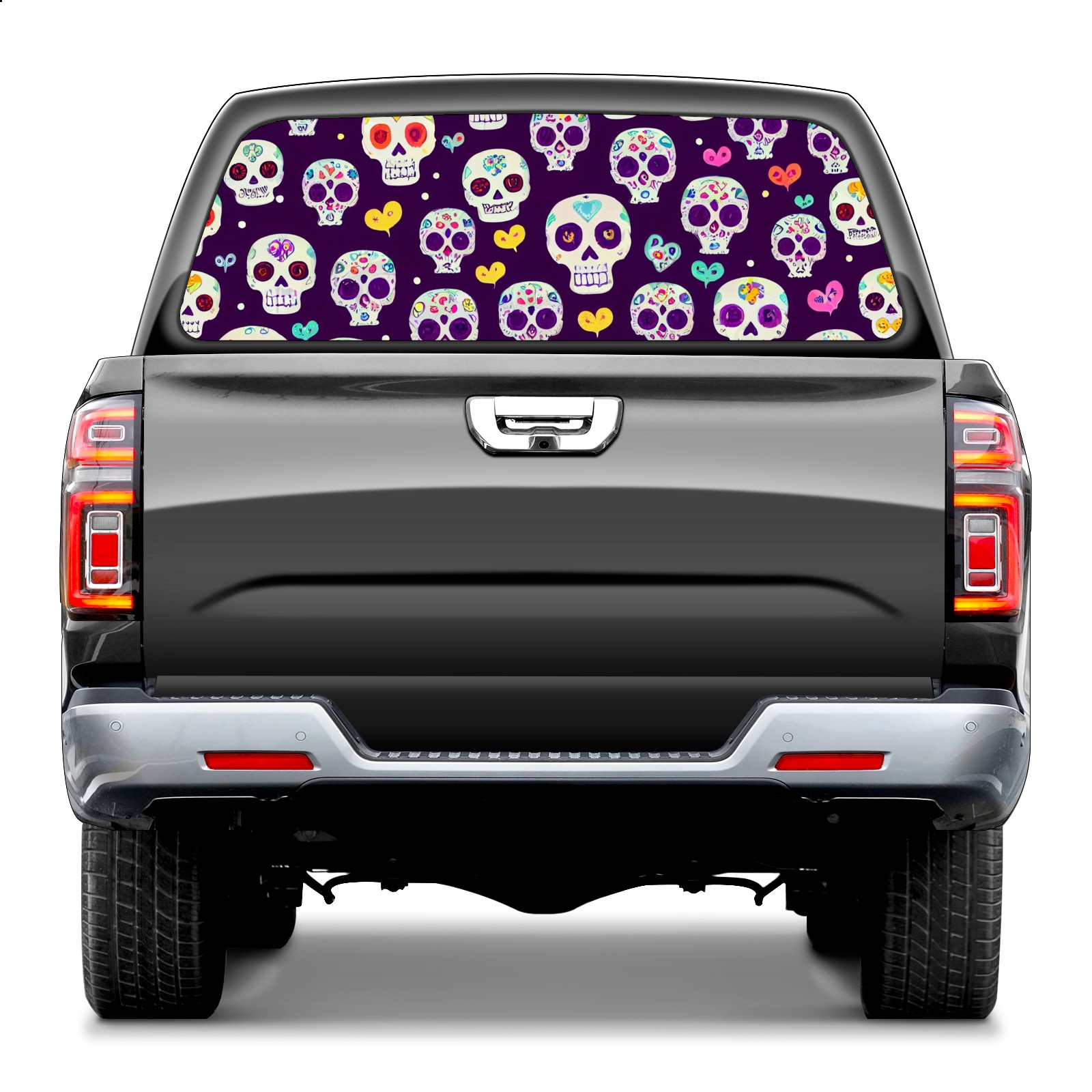 Truck Rear Window Graphics Decals Pickup Trucks Back Window Sticker Full Window Film Decal One Way Visual Waterproof Car Rear Tint Skull And Flowers Graffiti