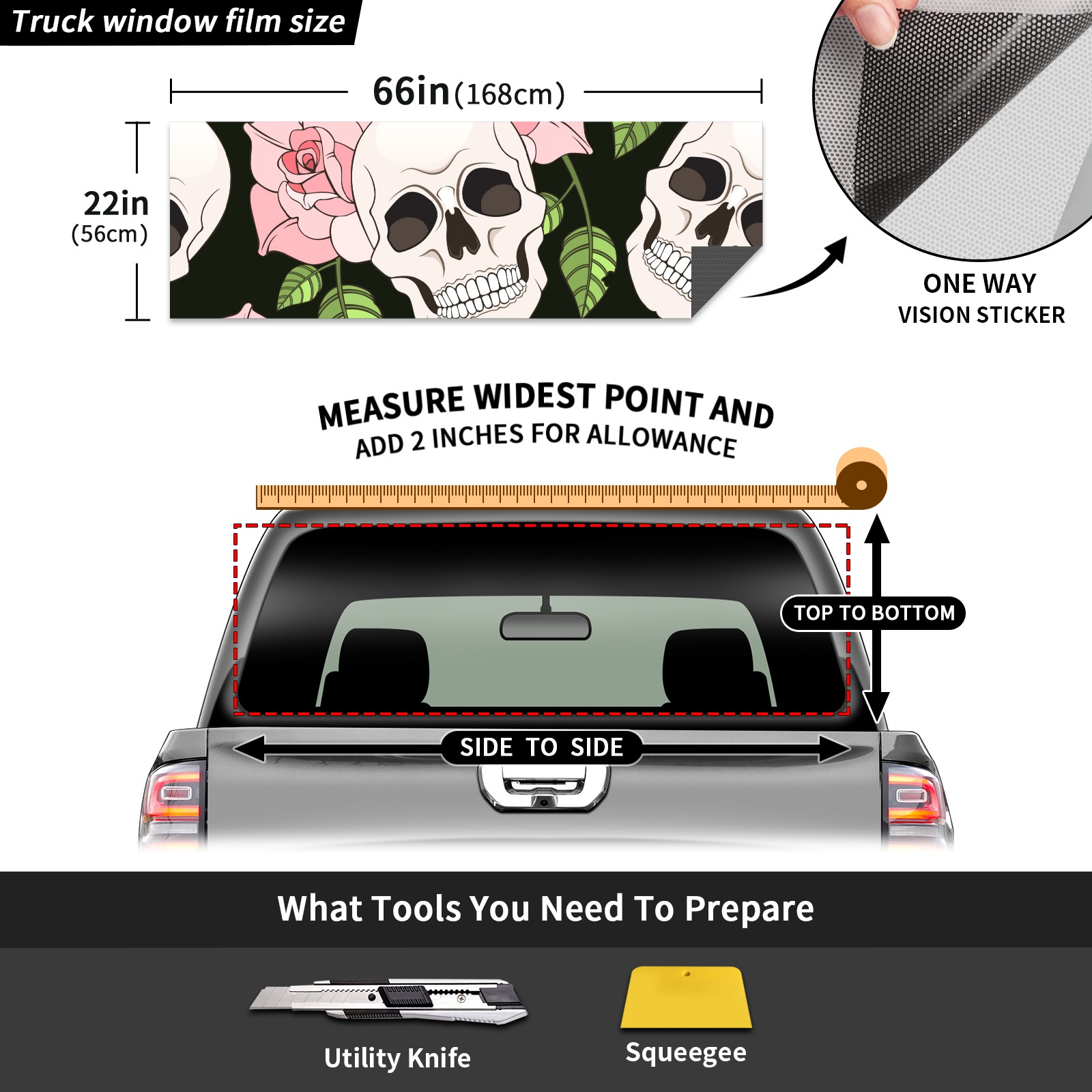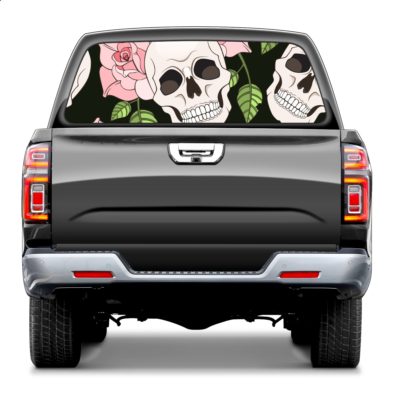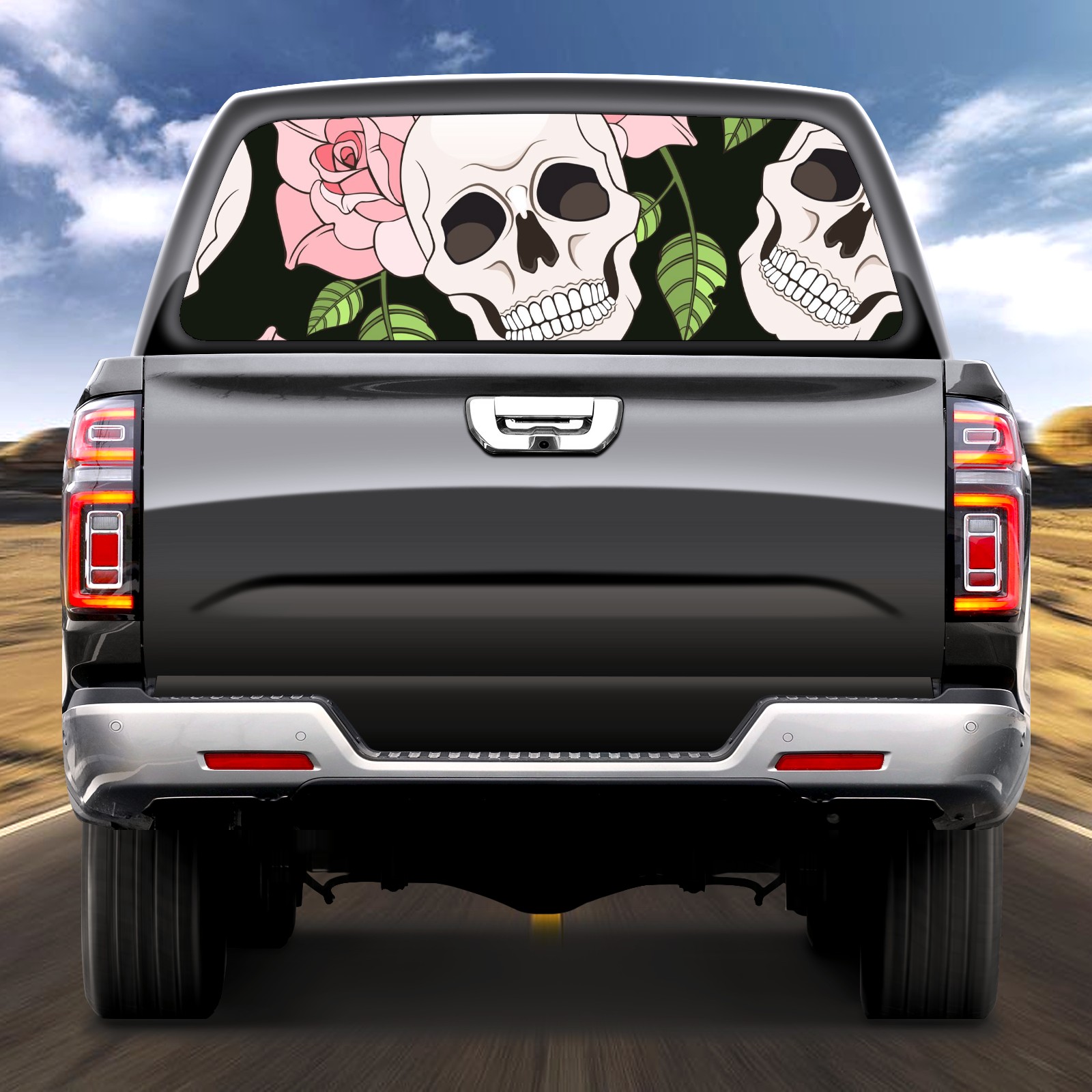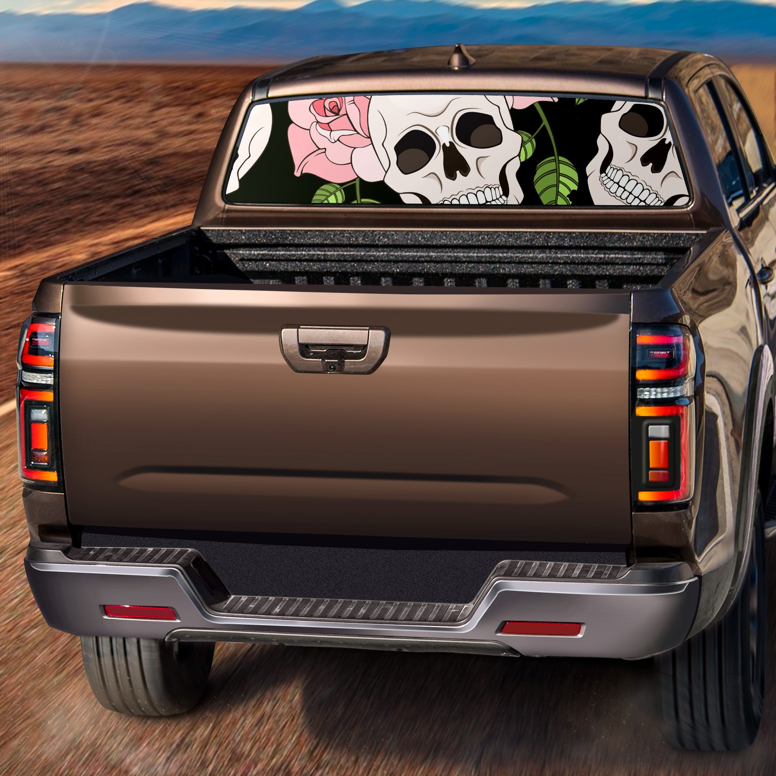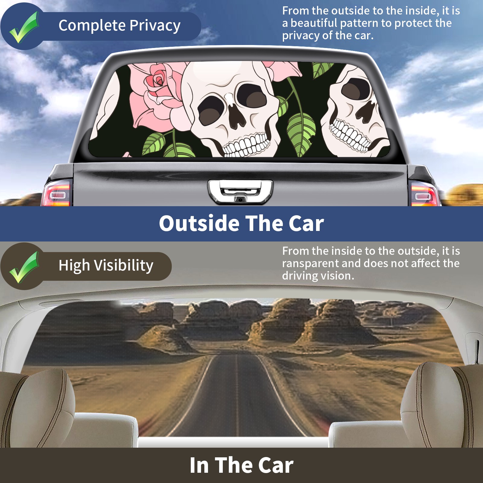 Truck Rear Window Graphics Decals Pickup Trucks Back Window Sticker Full Window Film Decal One Way Visual Waterproof Car Rear Tint Gothic Roses And Skulls