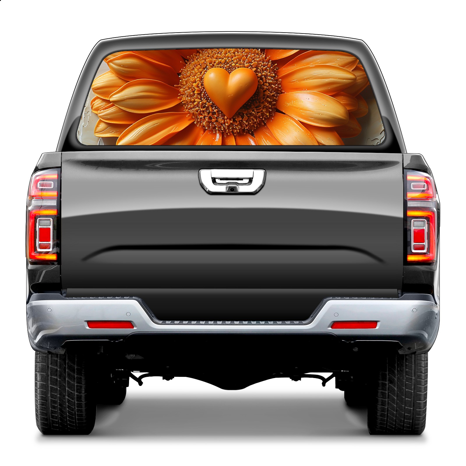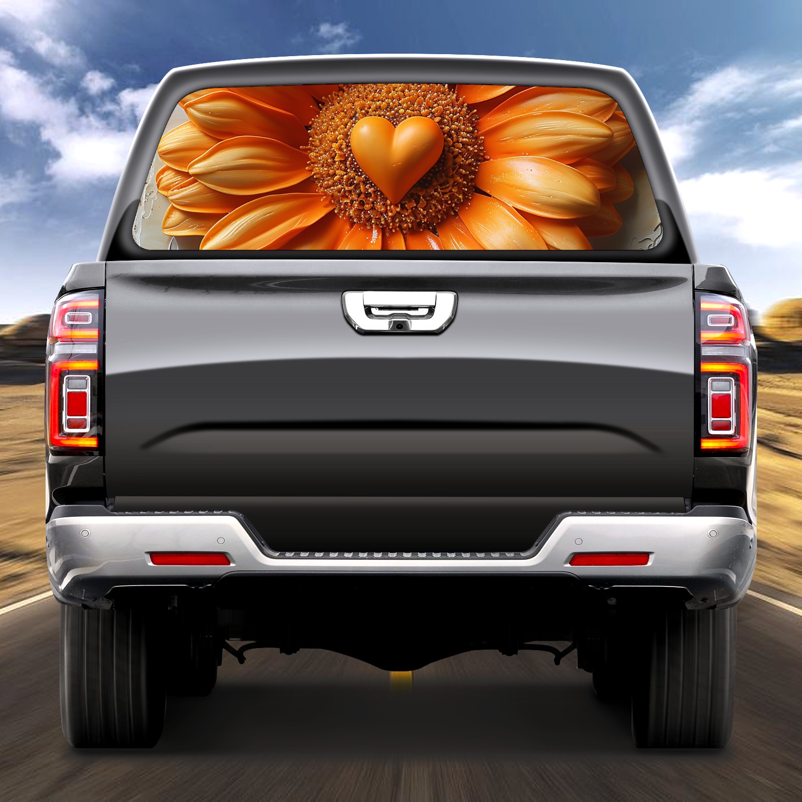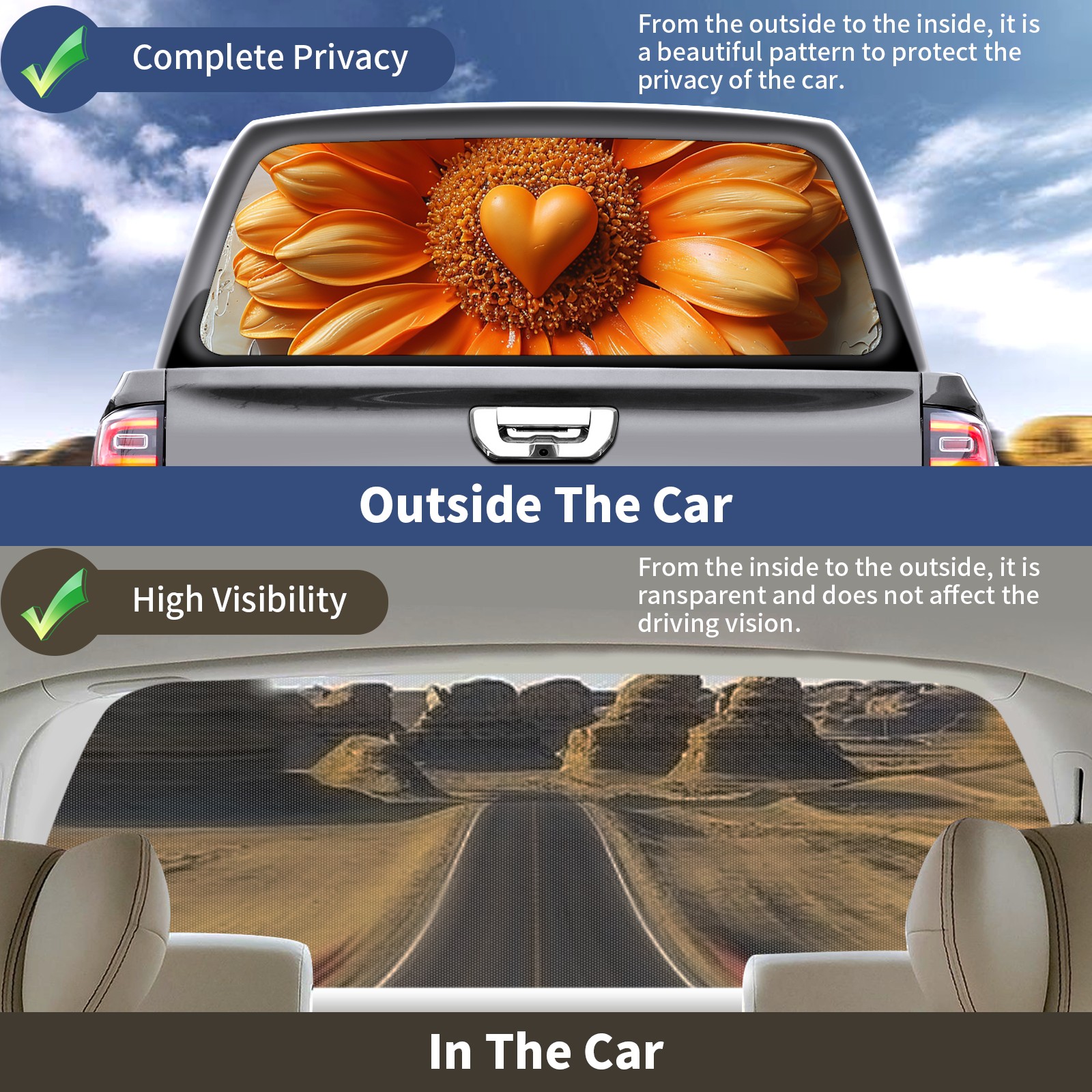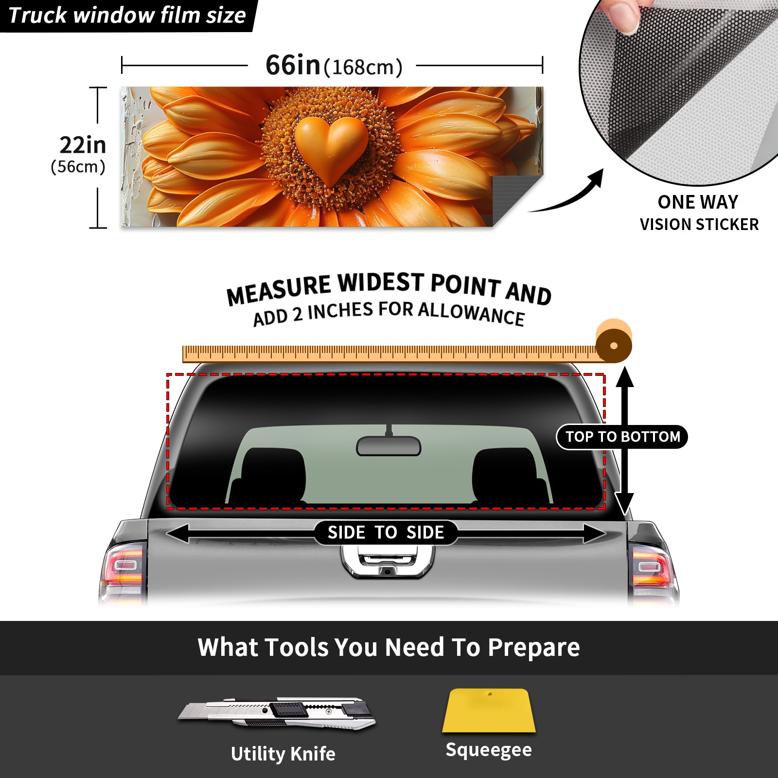 Truck Rear Window Graphics Decals Pickup Trucks Back Window Sticker Full Window Film Decal One Way Visual Waterproof Car Rear Tint Sunflower