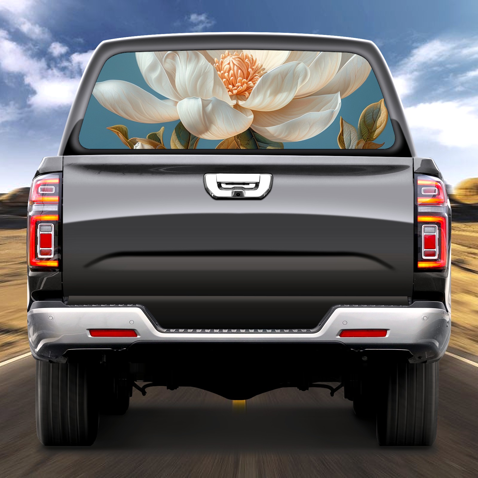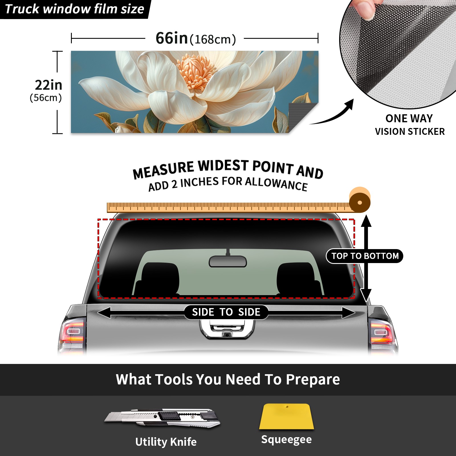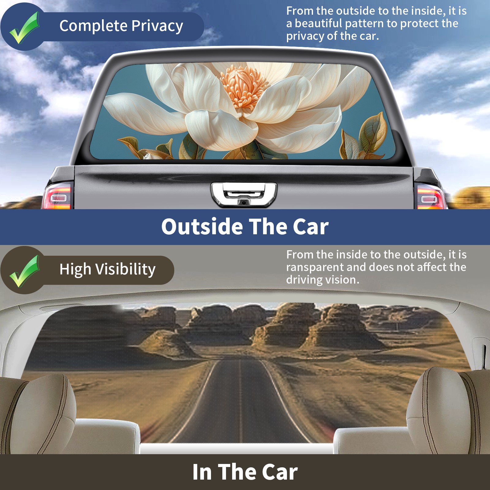 Truck Rear Window Graphics Decals Pickup Trucks Back Window Sticker Full Window Film Decal One Way Visual Waterproof Car Rear Tint Camellia