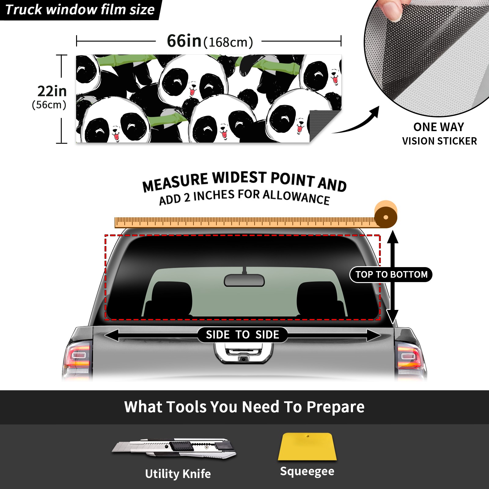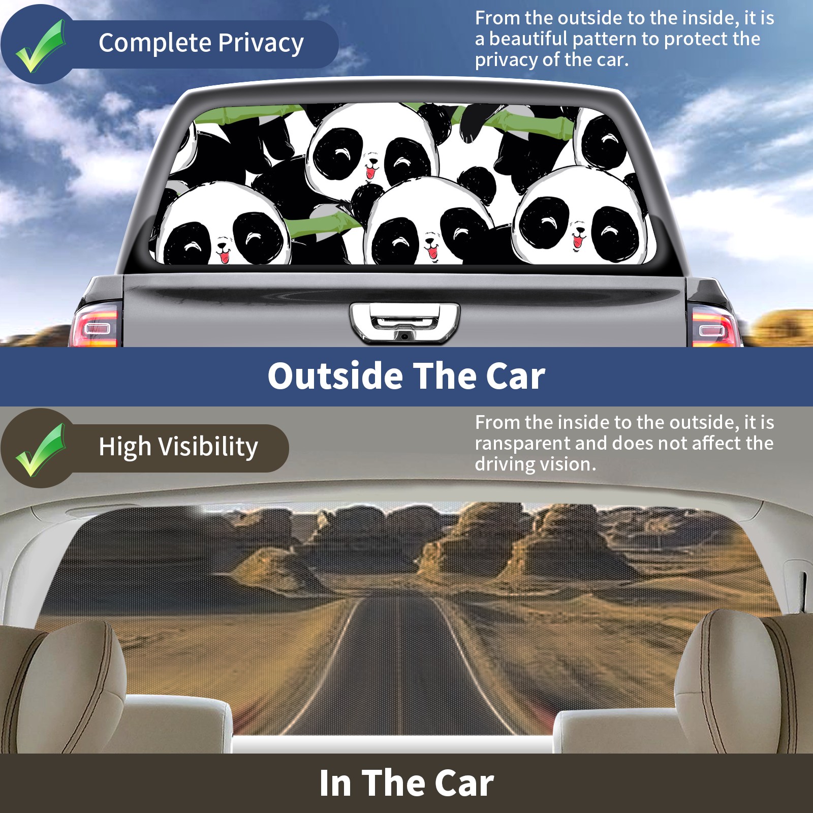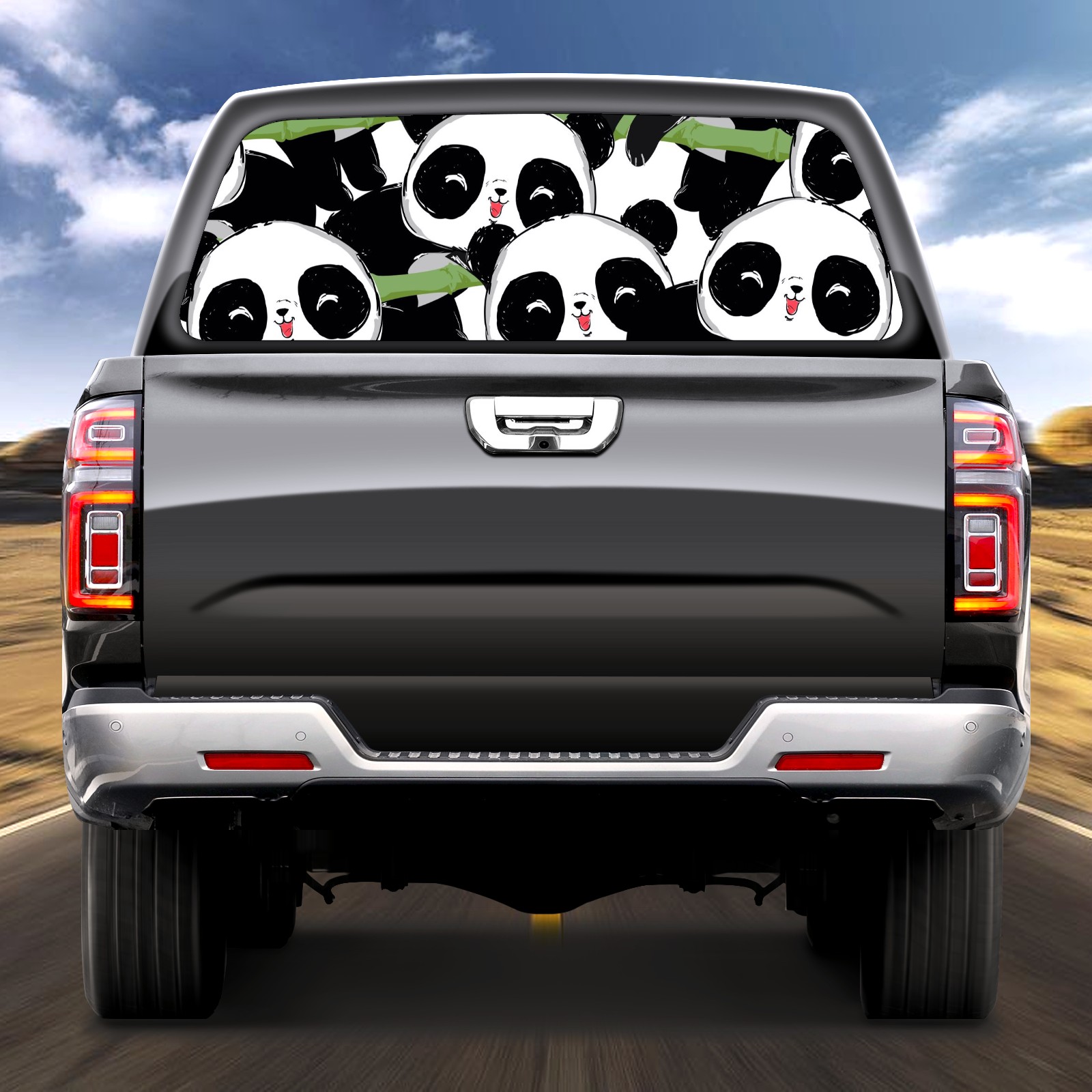 Truck Rear Window Graphics Decals Pickup Trucks Back Window Sticker Full Window Film Decal One Way Visual Waterproof Car Rear Tint Cute Panda