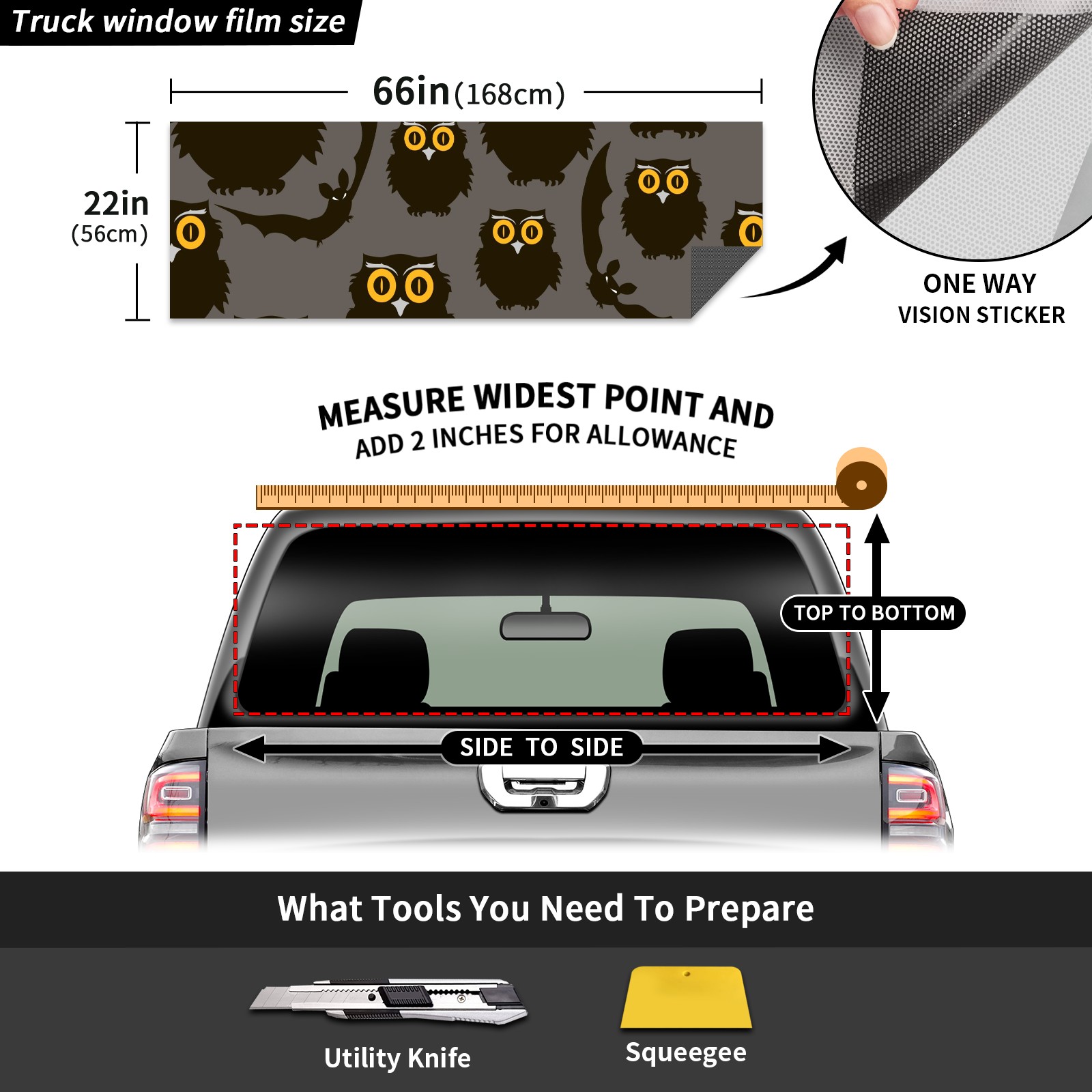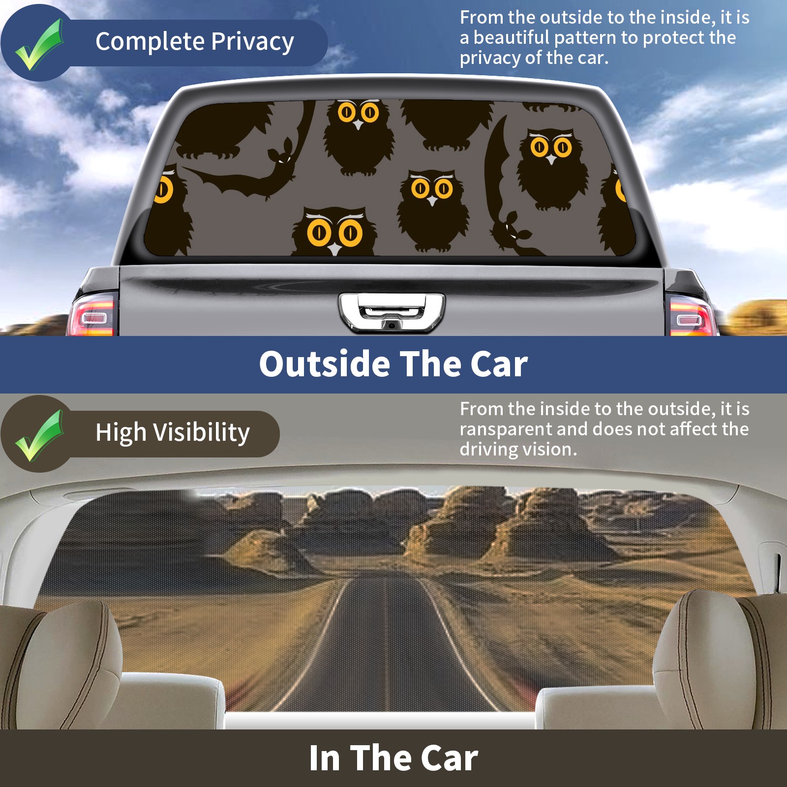 Truck Rear Window Graphics Decals Pickup Trucks Back Window Sticker Full Window Film Decal One Way Visual Waterproof Car Rear Tint Owls And Bats