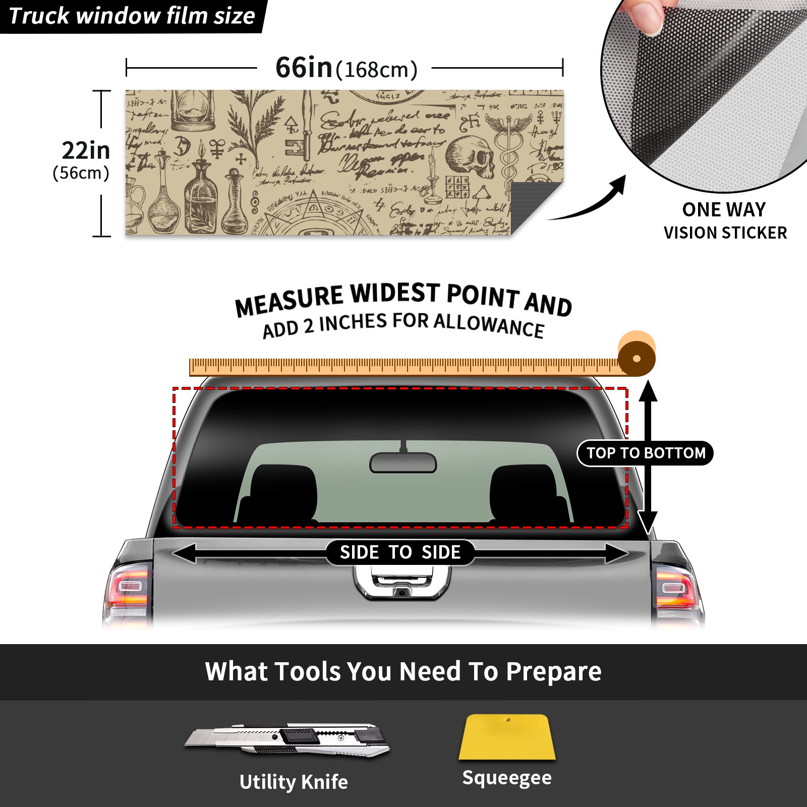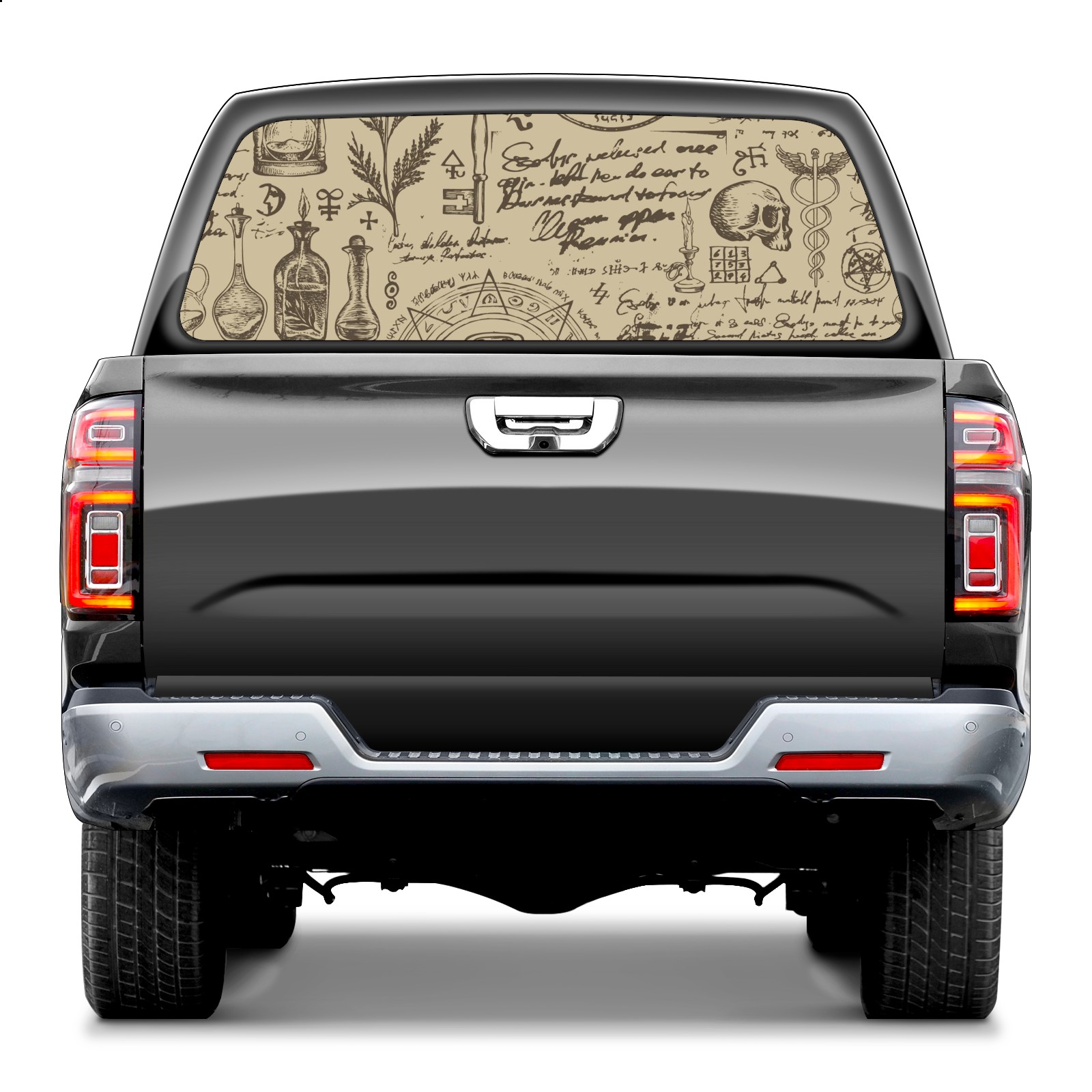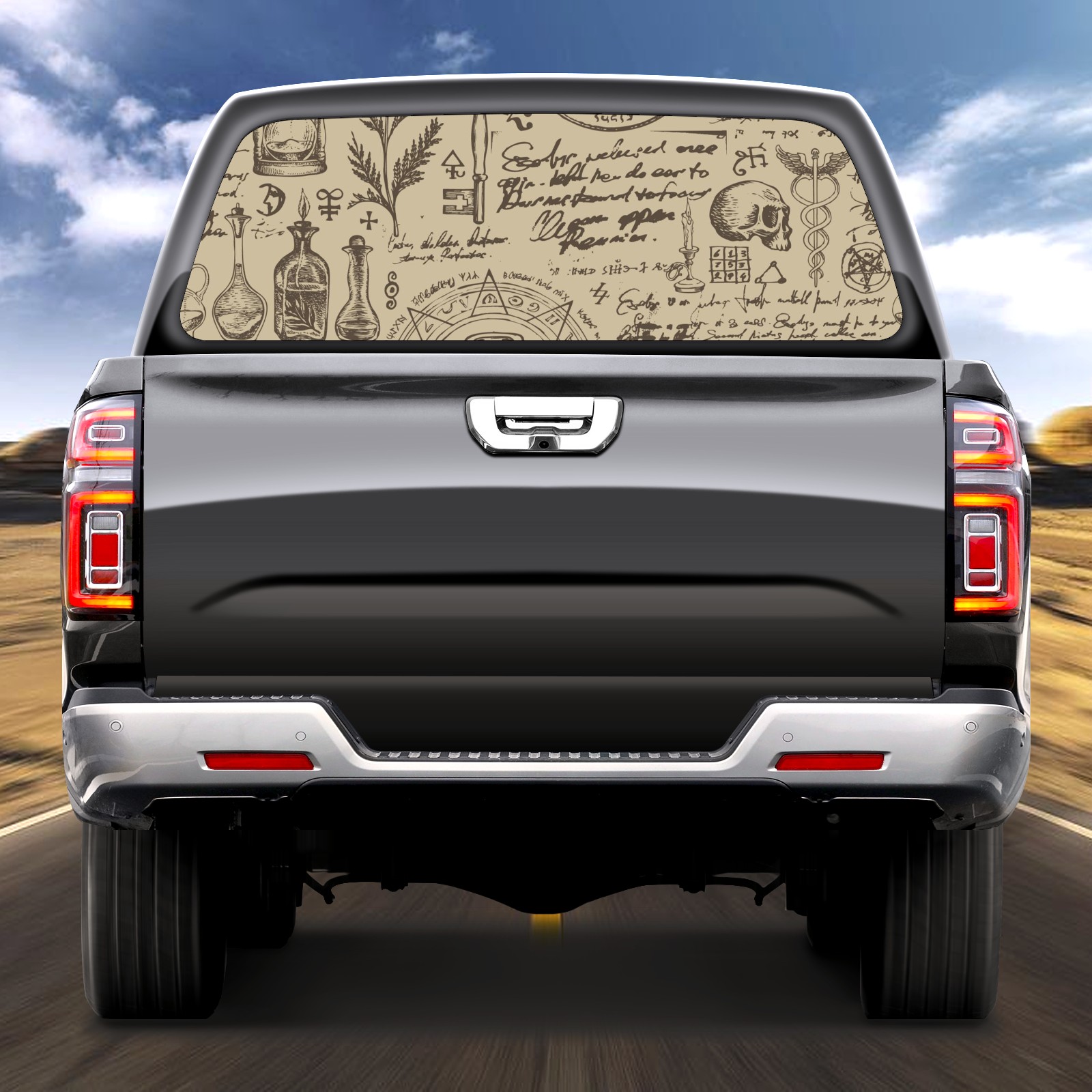 Truck Rear Window Graphics Decals Pickup Trucks Back Window Sticker Full Window Film Decal One Way Visual Waterproof Car Rear Tint Retro Style Magic Witchcraft