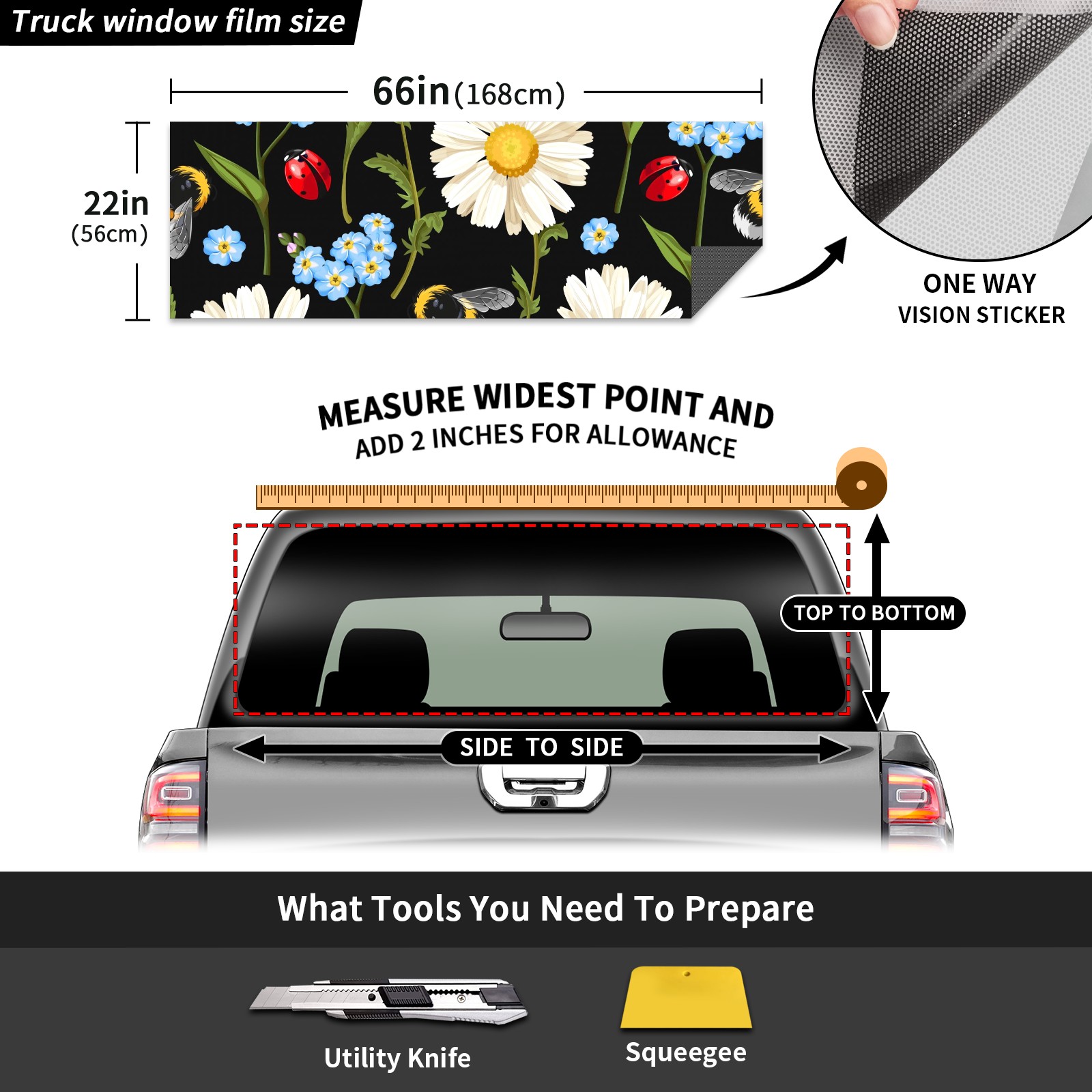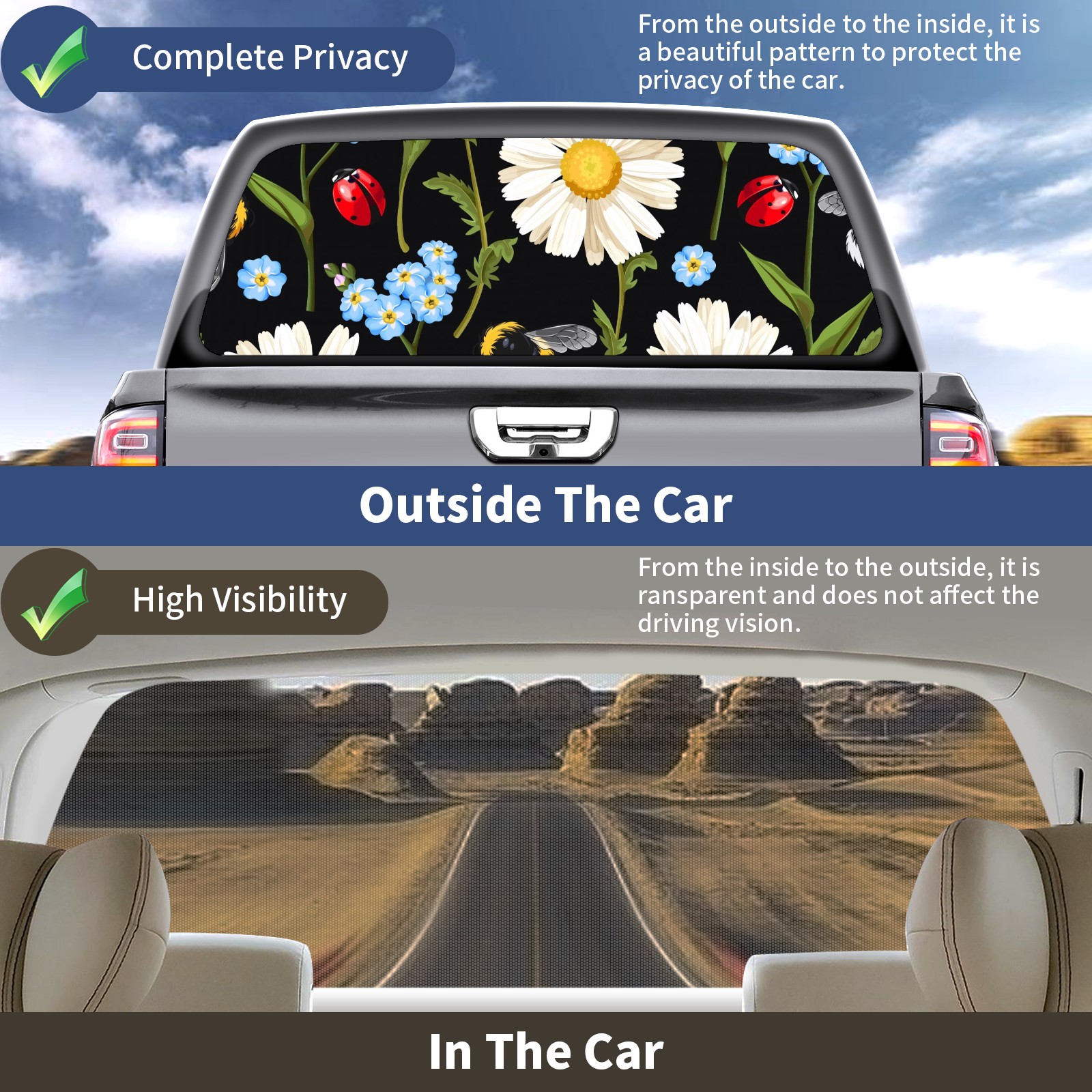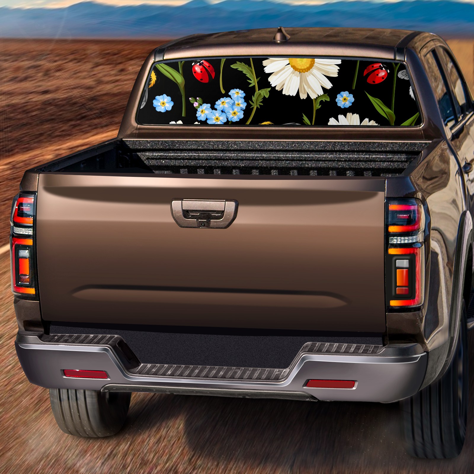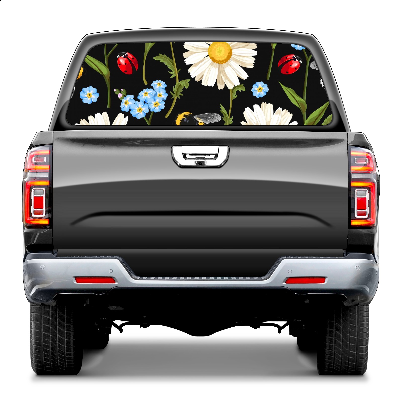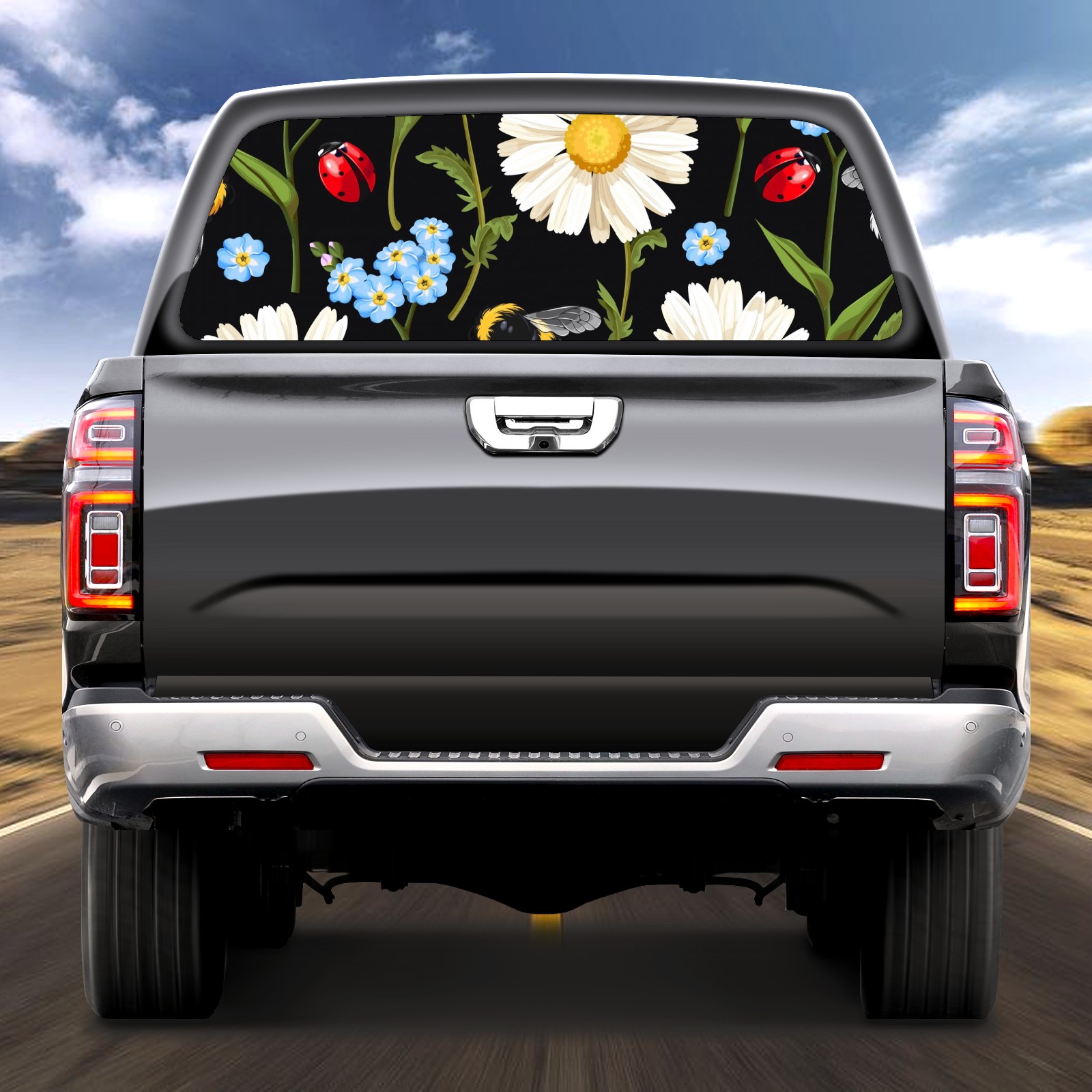 Truck Rear Window Graphics Decals Pickup Trucks Back Window Sticker Full Window Film Decal One Way Visual Waterproof Car Rear Tint Ladybug Meadow Flowers