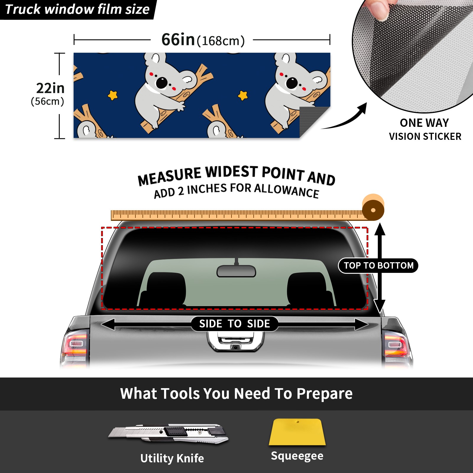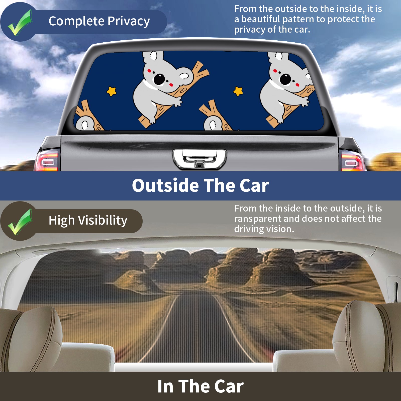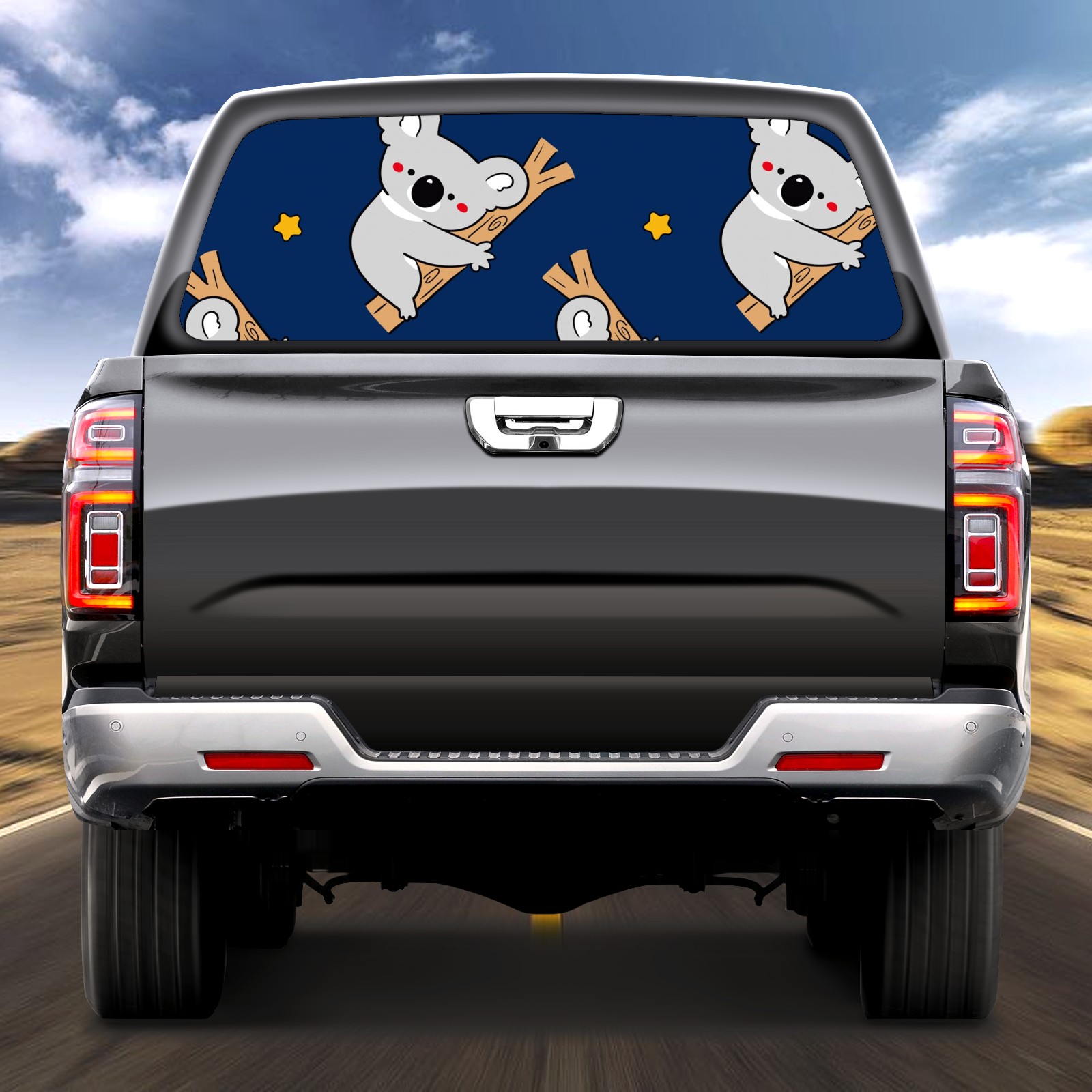 Truck Rear Window Graphics Decals Pickup Trucks Back Window Sticker Full Window Film Decal One Way Visual Waterproof Car Rear Tint Koala Bear Star On Dark Blue Background