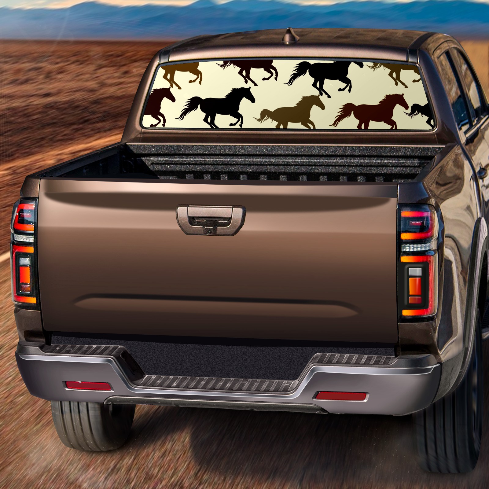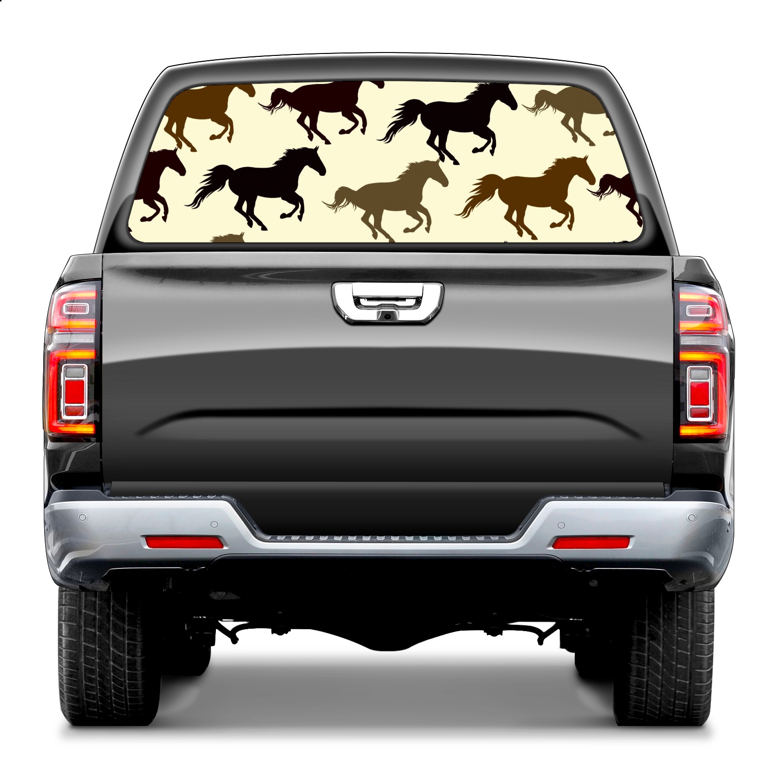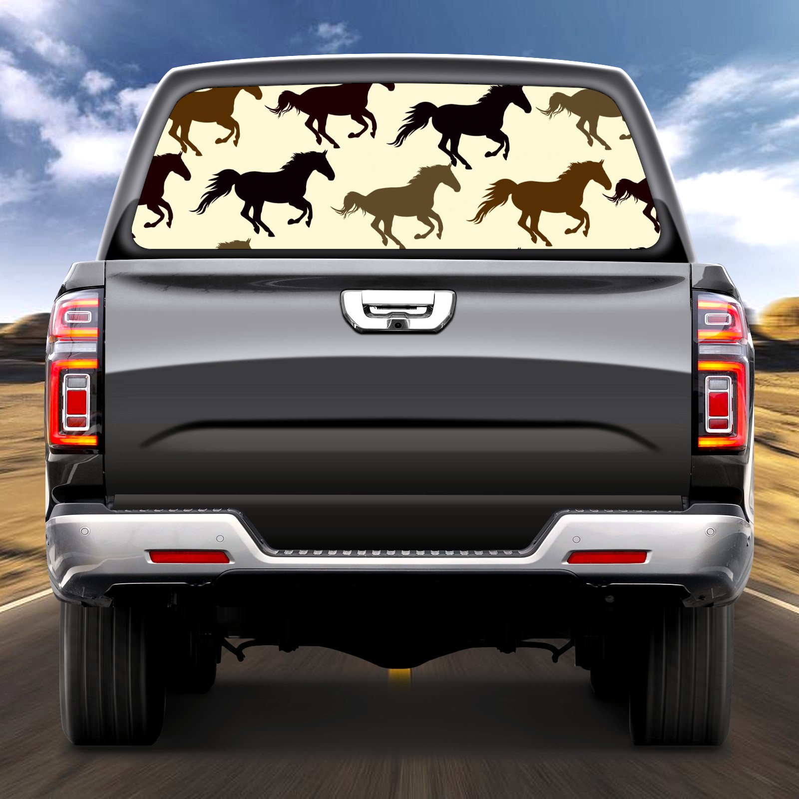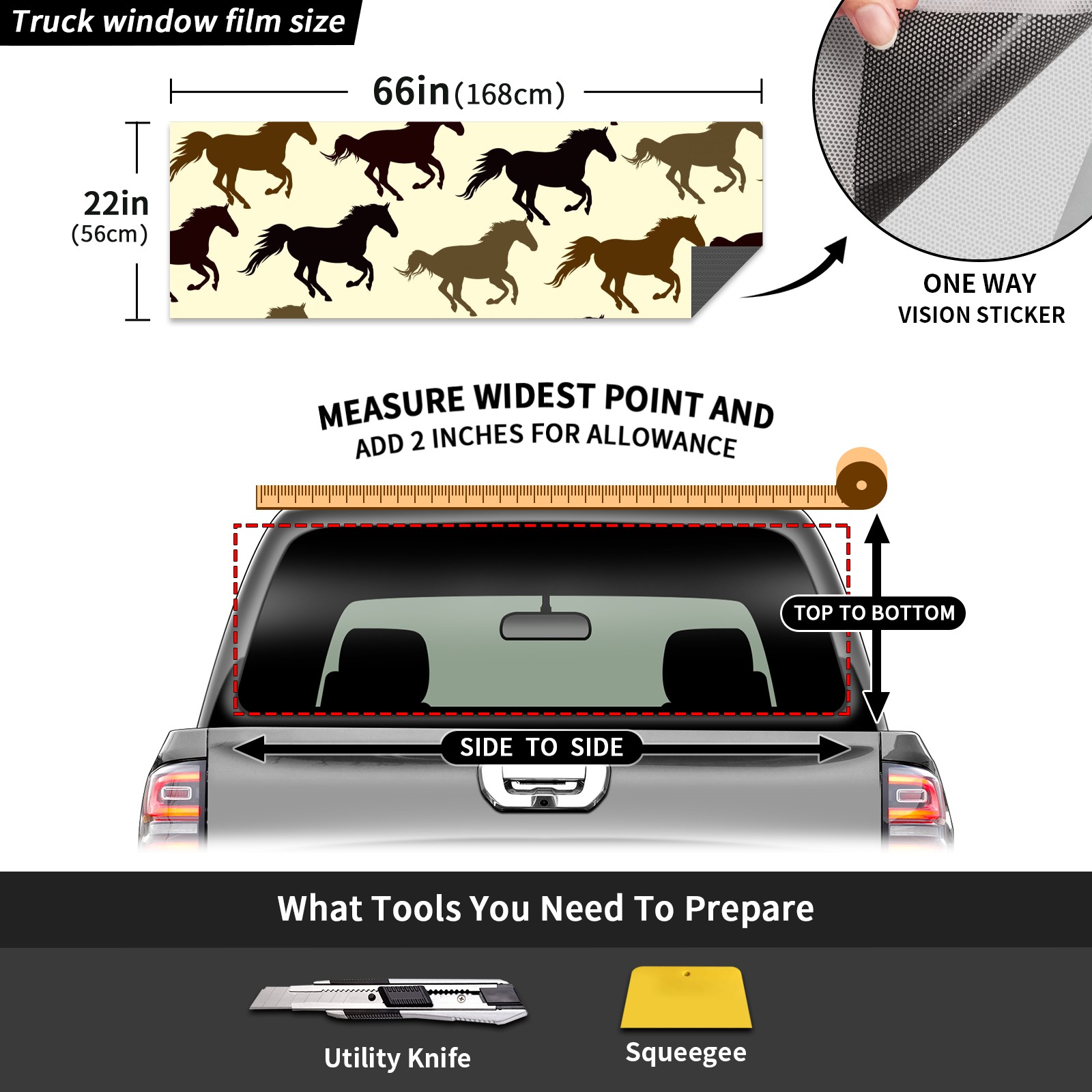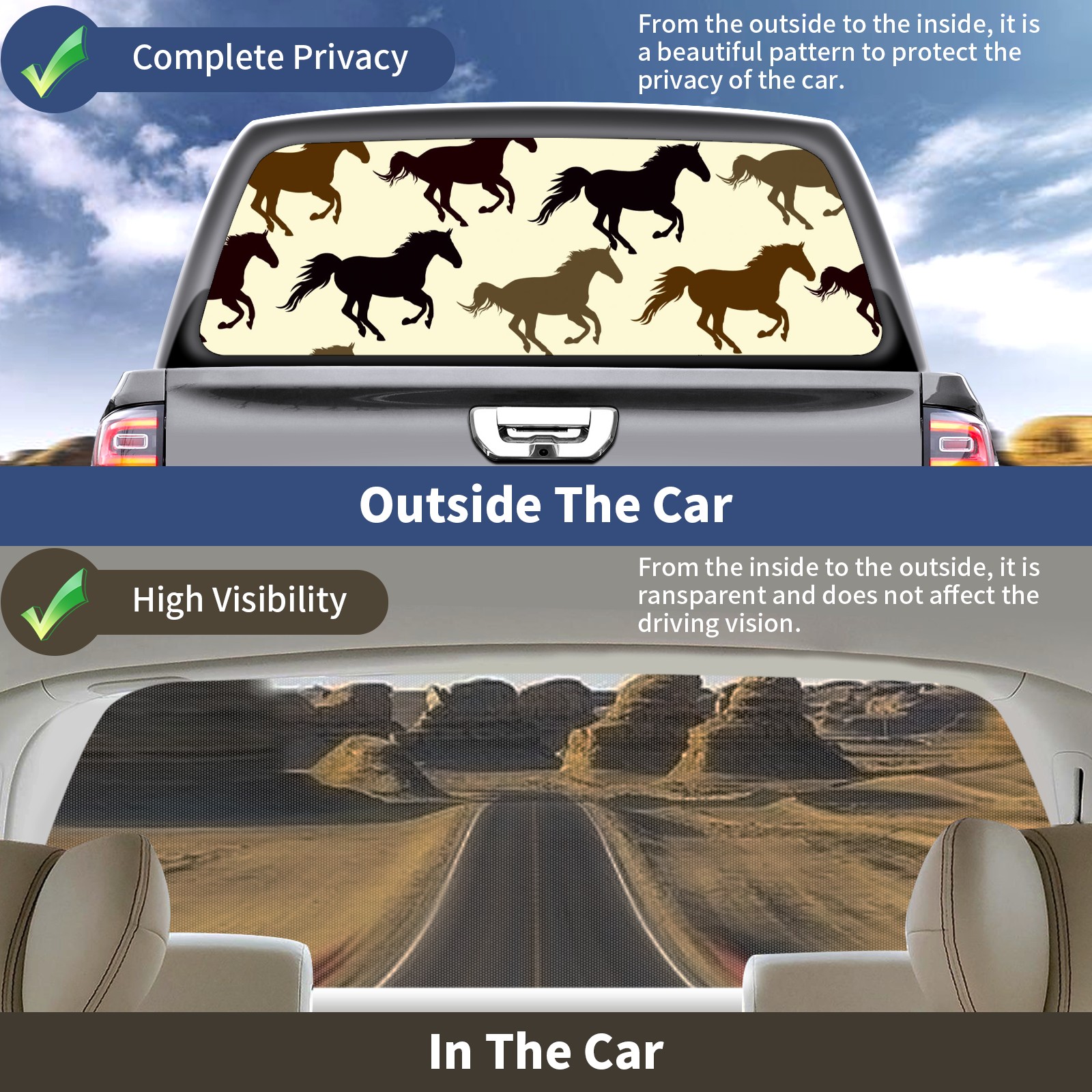 Truck Rear Window Graphics Decals Pickup Trucks Back Window Sticker Full Window Film Decal One Way Visual Waterproof Car Rear Tint Horse On Yellow Background