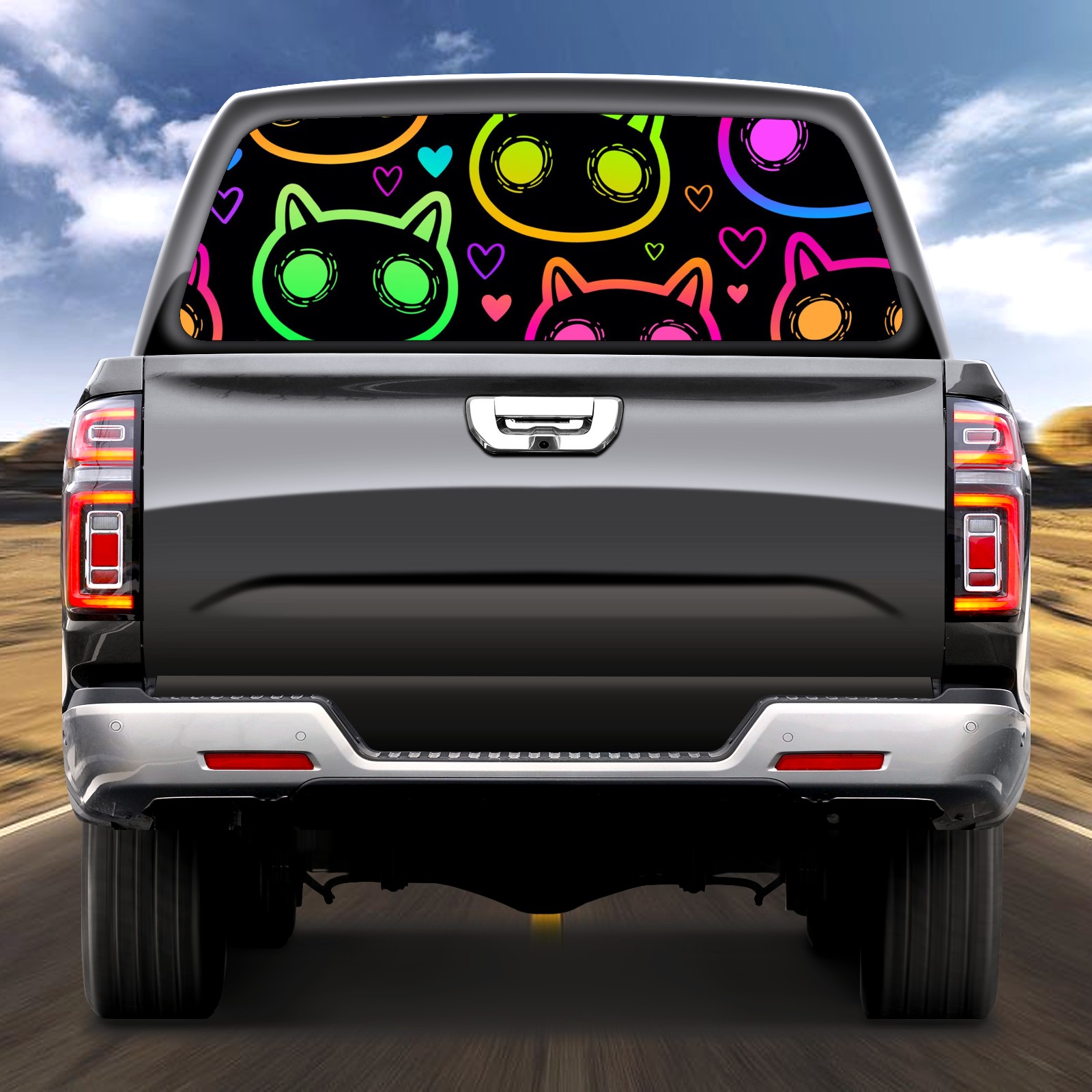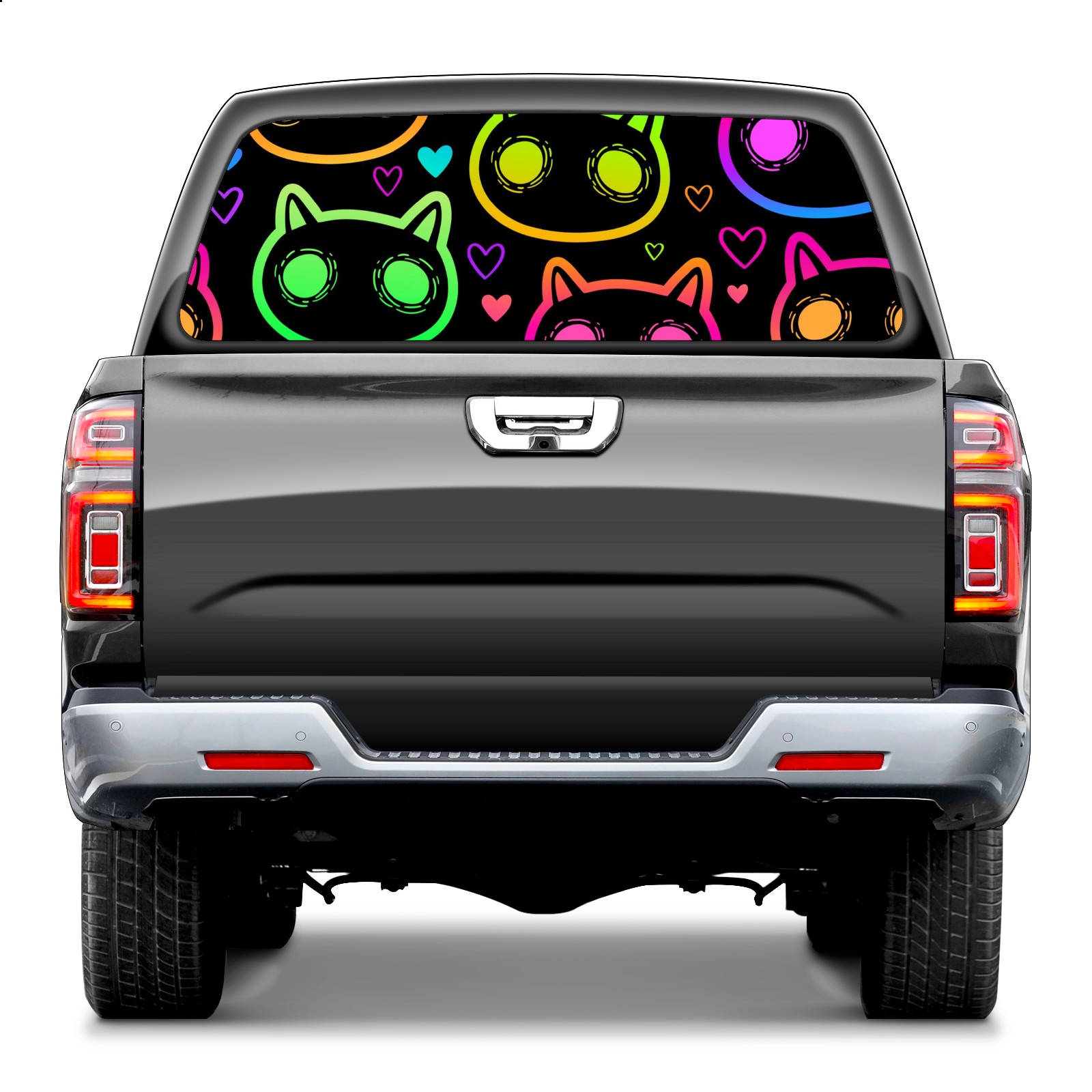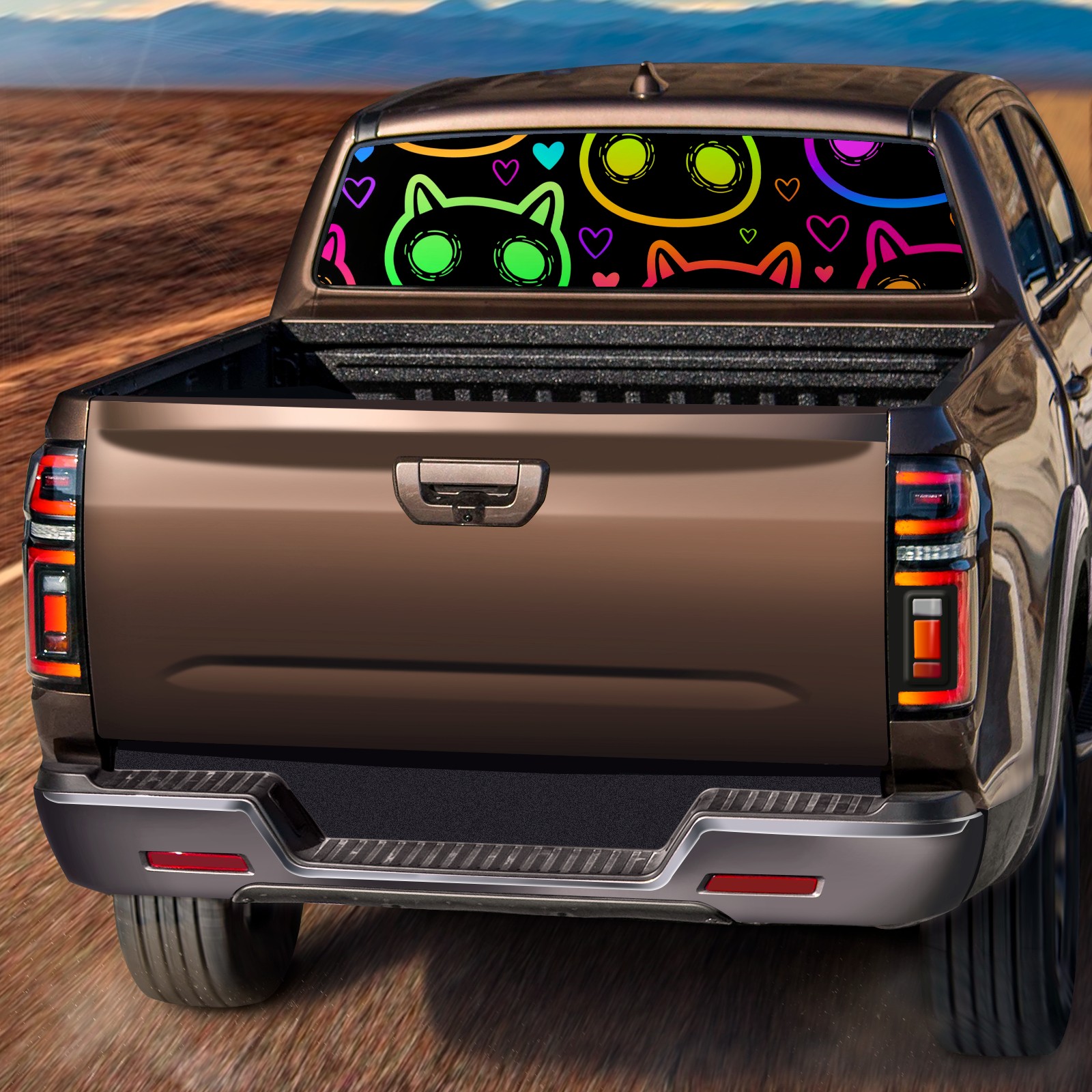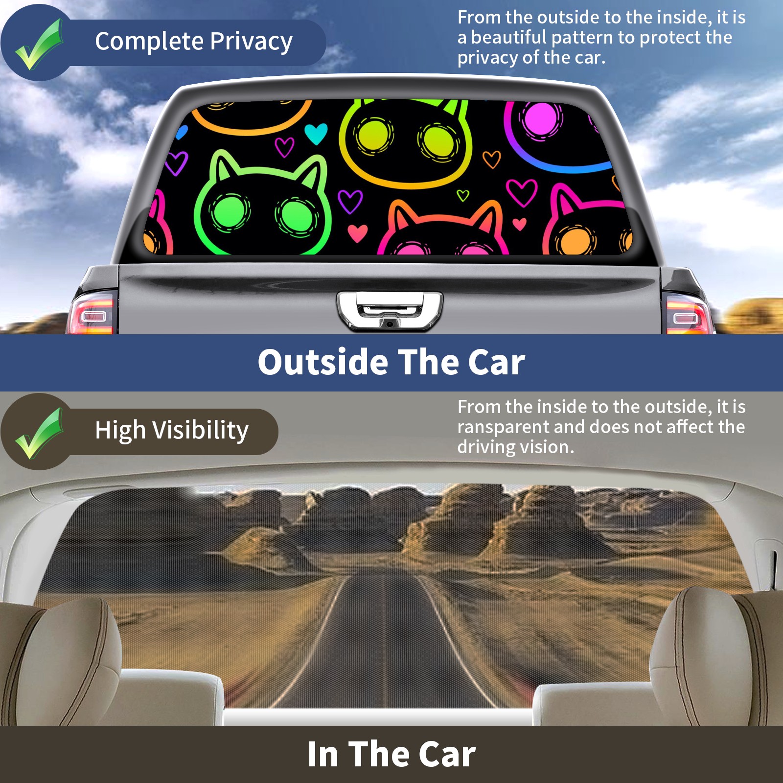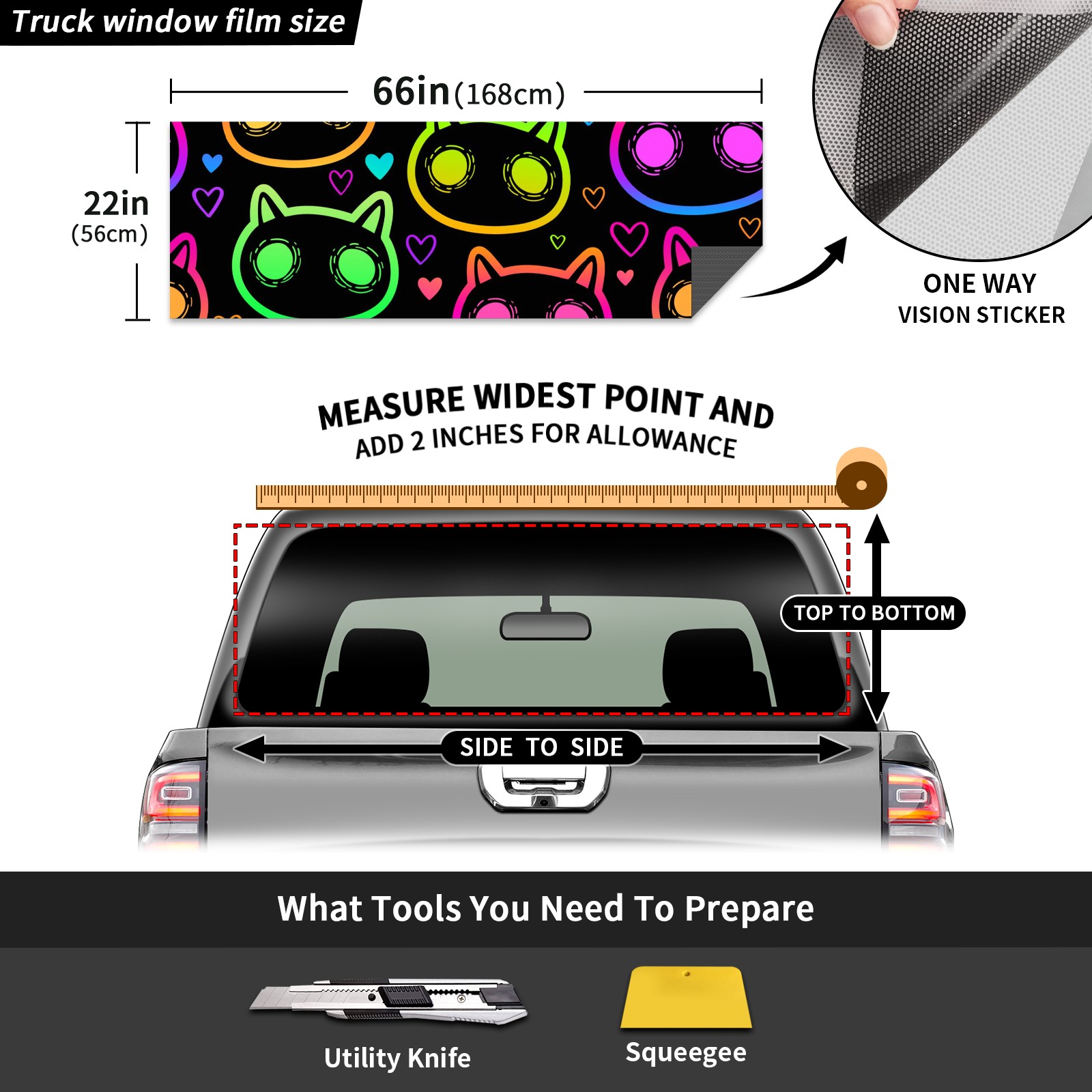 Truck Rear Window Graphics Decals Pickup Trucks Back Window Sticker Full Window Film Decal One Way Visual Waterproof Car Rear Tint Halloween Cute Witchcraft Cat