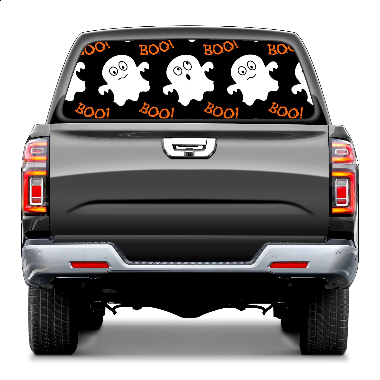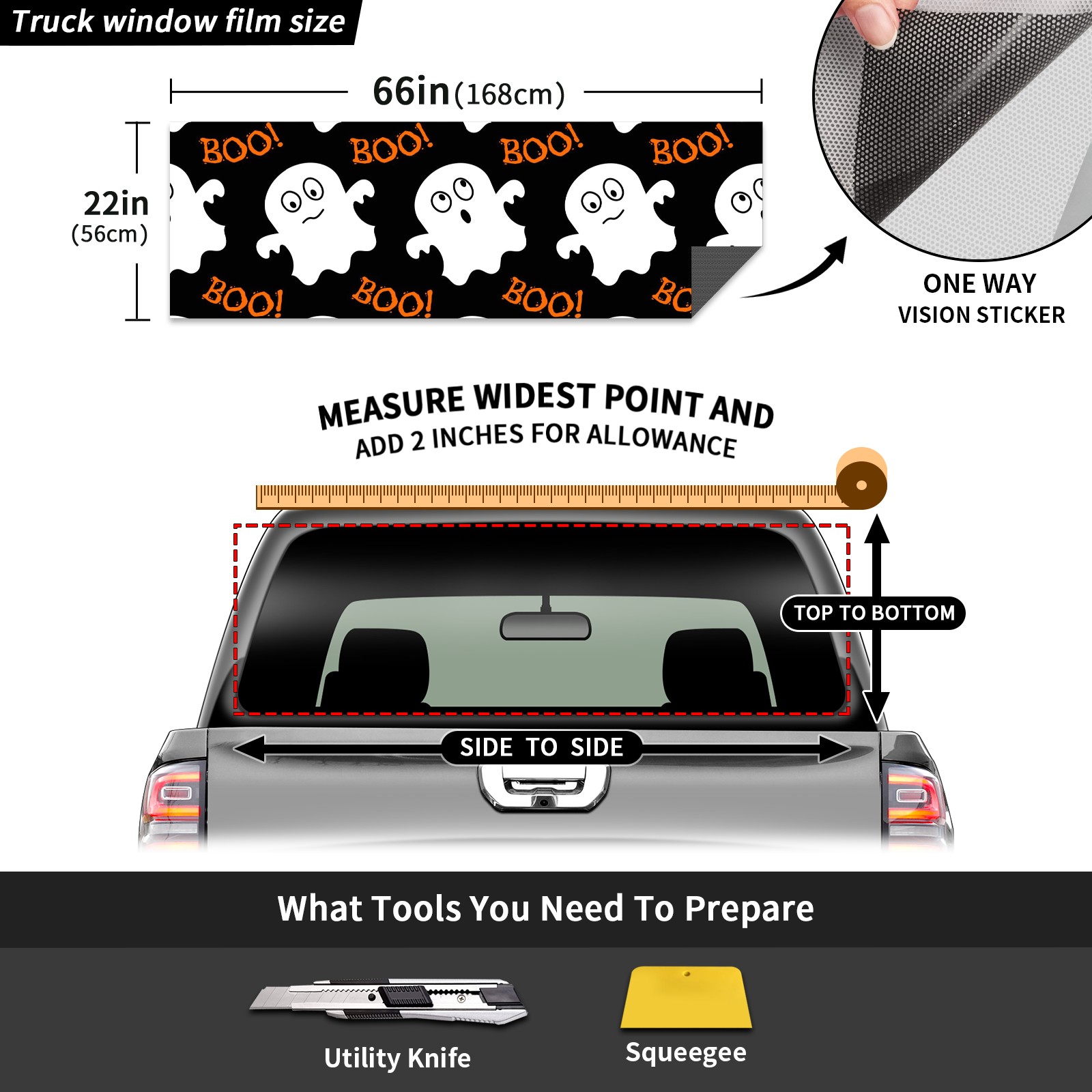 Truck Rear Window Graphics Decals Pickup Trucks Back Window Sticker Full Window Film Decal One Way Visual Waterproof Car Rear Tint Halloween Cute Ghosts