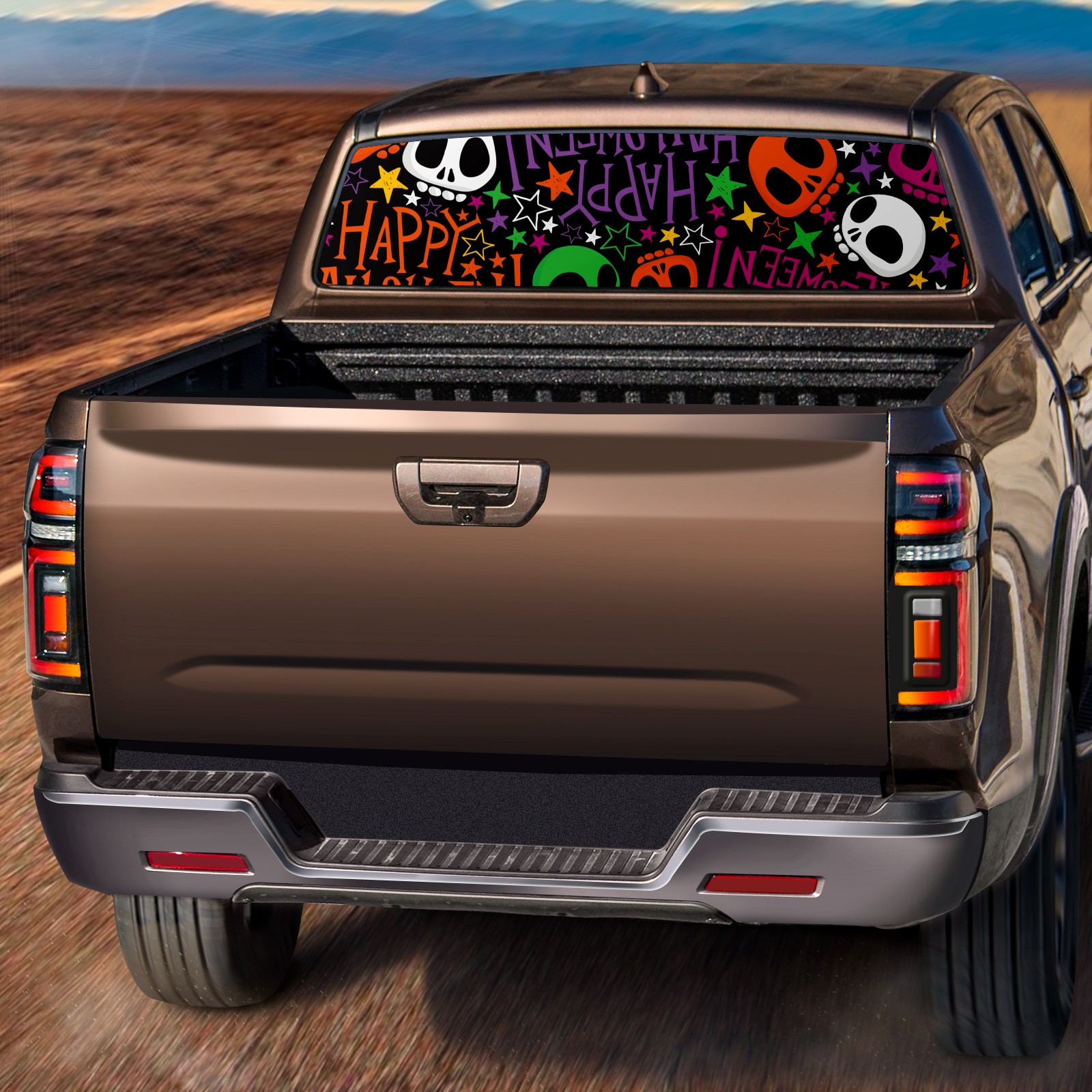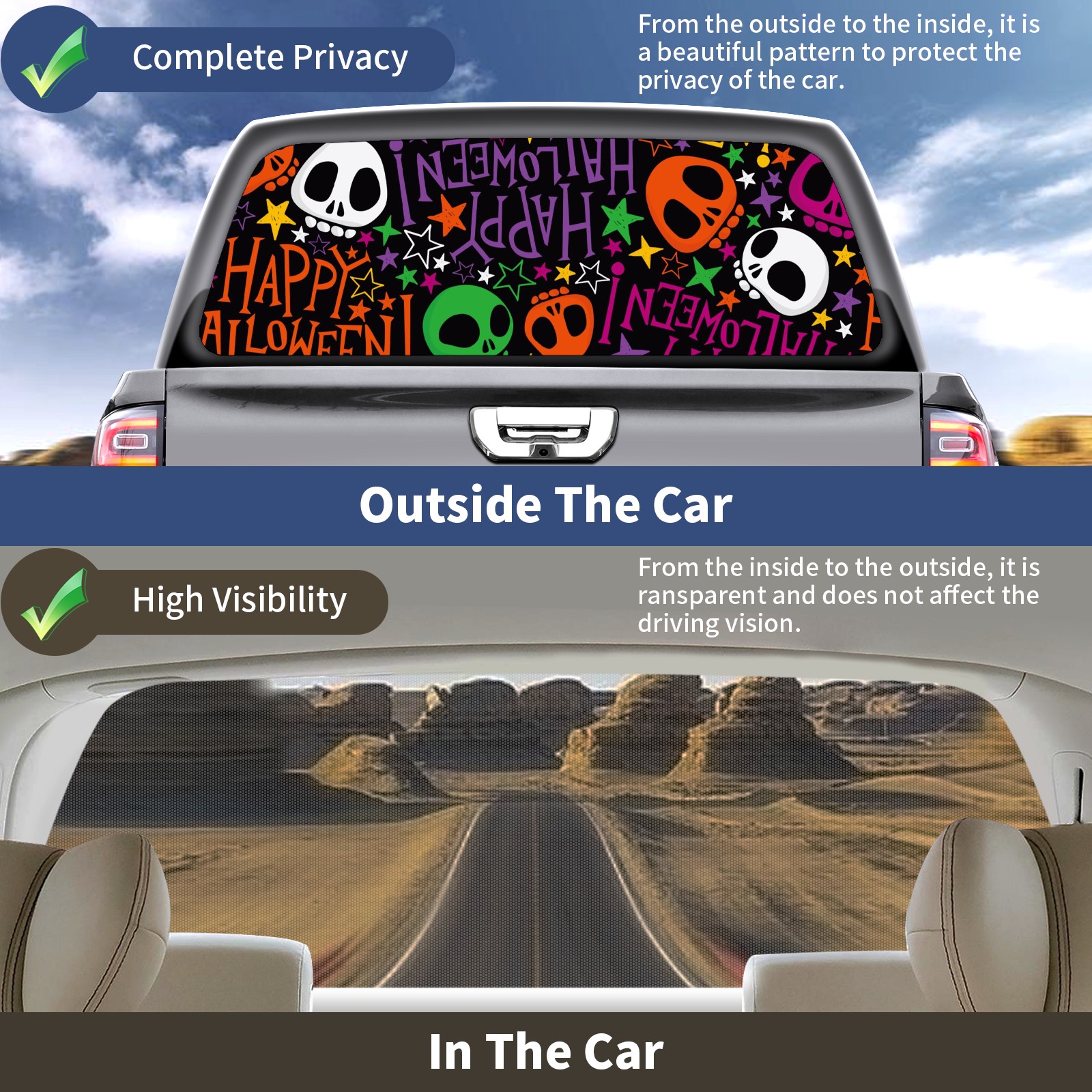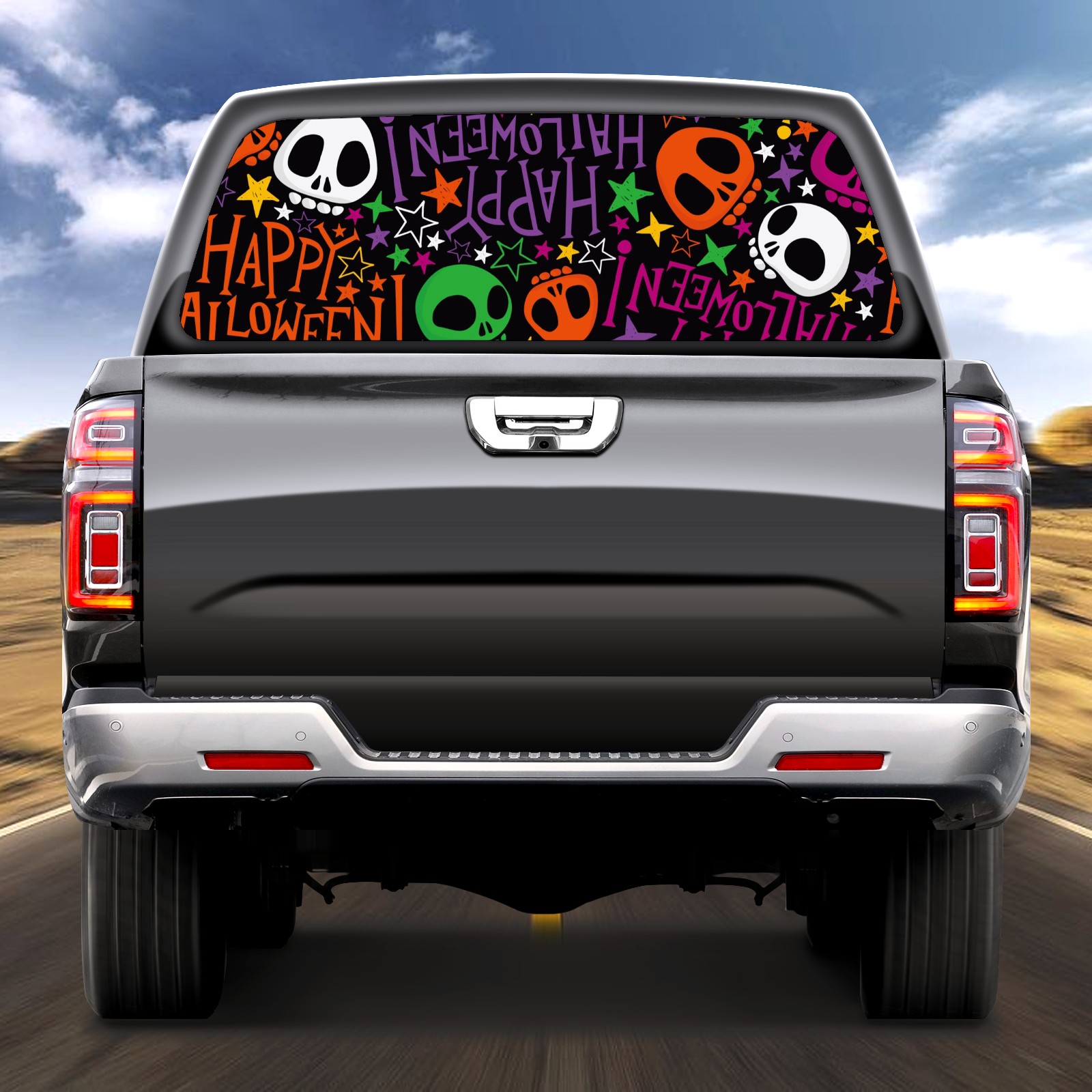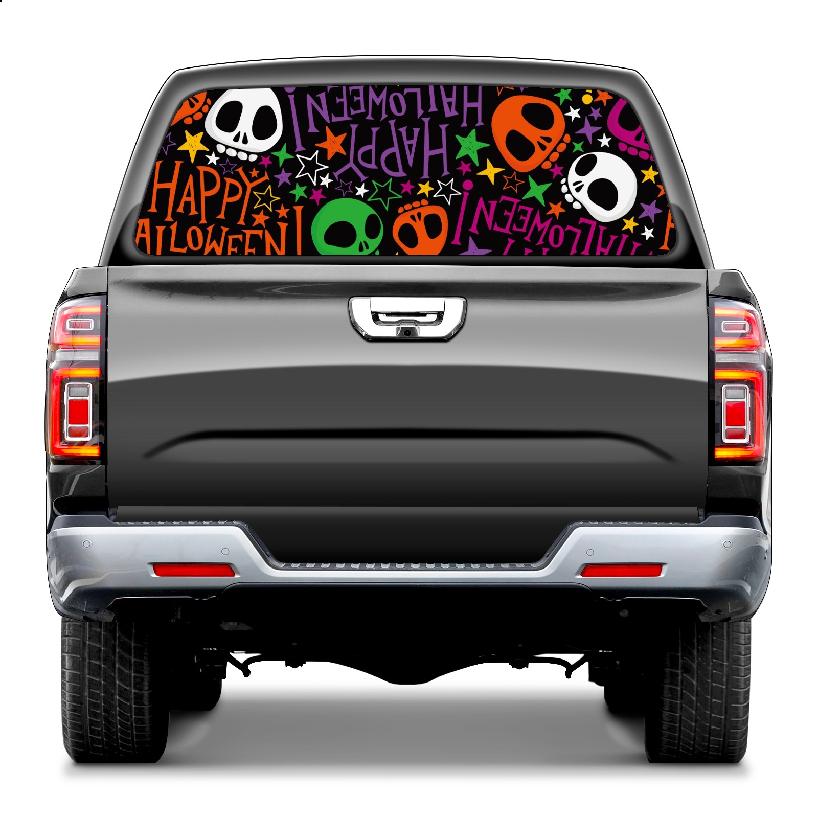 Truck Rear Window Graphics Decals Pickup Trucks Back Window Sticker Full Window Film Decal One Way Visual Waterproof Car Rear Tint Halloween Colorful Skull Doodle