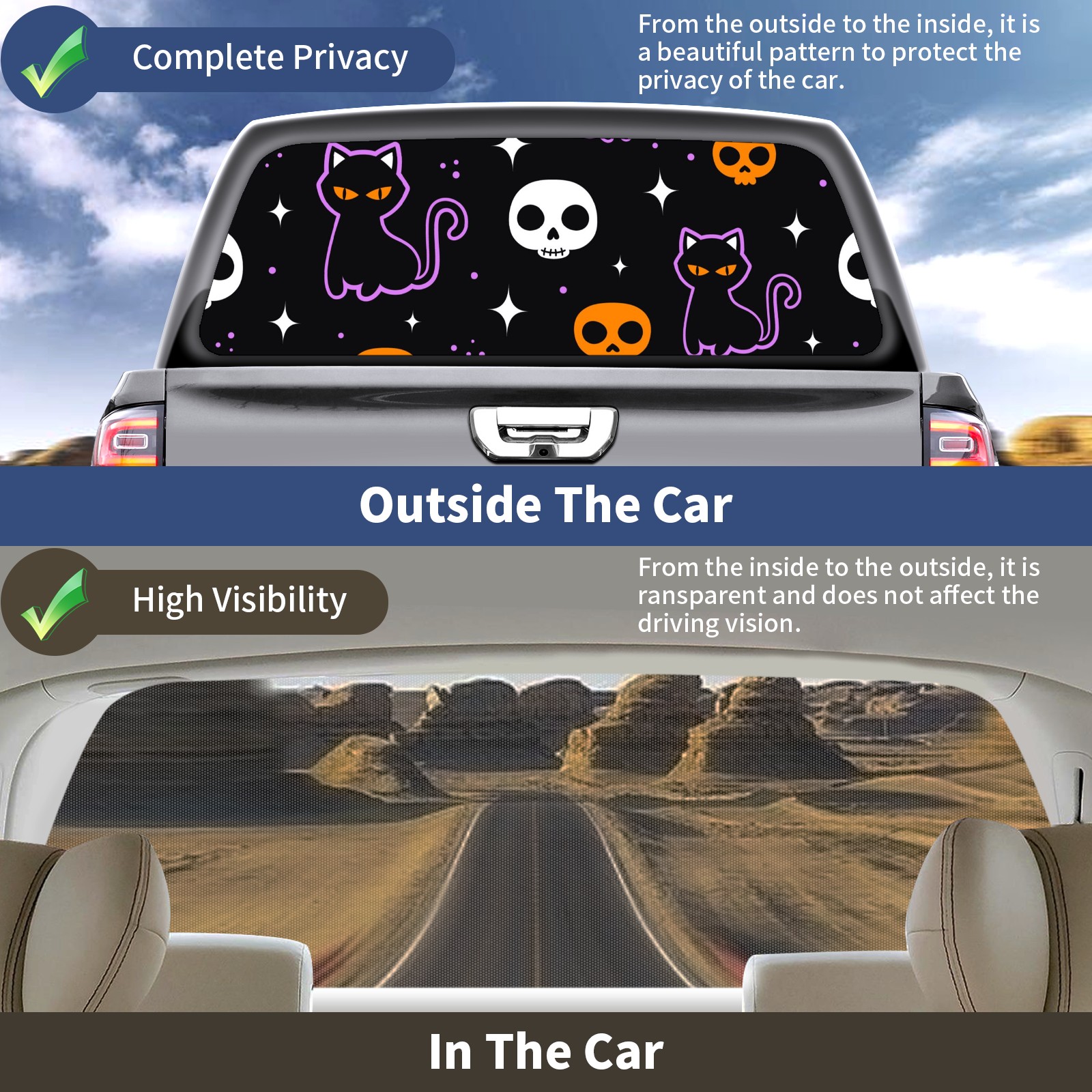 <b>One-Way Light Transmission Window Film Protect Your Privacy While Allowing You To Enjoy The Scenery Outside Your Window!</b> <br> <b>●Decals Instructions Usage--Teach You To Use Quickly</b> <br> 1.Clean the window galss thoroughly <br> 2.Use a Squeegee or other card to scrape off the remaining water and bumps(don't use too much force) <br> 3.Remove the film's back cover .Use a knife to cut out a suitable contour and wipe off the remaining water(you can also use a hair dryer to blow dry) <br> 4.Find a suitable location and stick a sticker <br> <b>●Unique Design</b> <br> ZXIVGOQFR Back window stickers ‘s smart looking and unique cute design makes your vehicle special under sunshine. Makes your car easy to identify, perfect for finding your car in crowded parking lots and garages.funny visor reflects personality and attitude. <br> <b>●Perfect Gift for all Drivers<br></b> We create all the gifts and accessories you only need to choose what you like. Get full tailgate wraps, rear window decals, and everything you need to make your pickup truck look awesome. <br> <b>Decorate Your Pickup Truck With Rear Window Decal Today!</b>