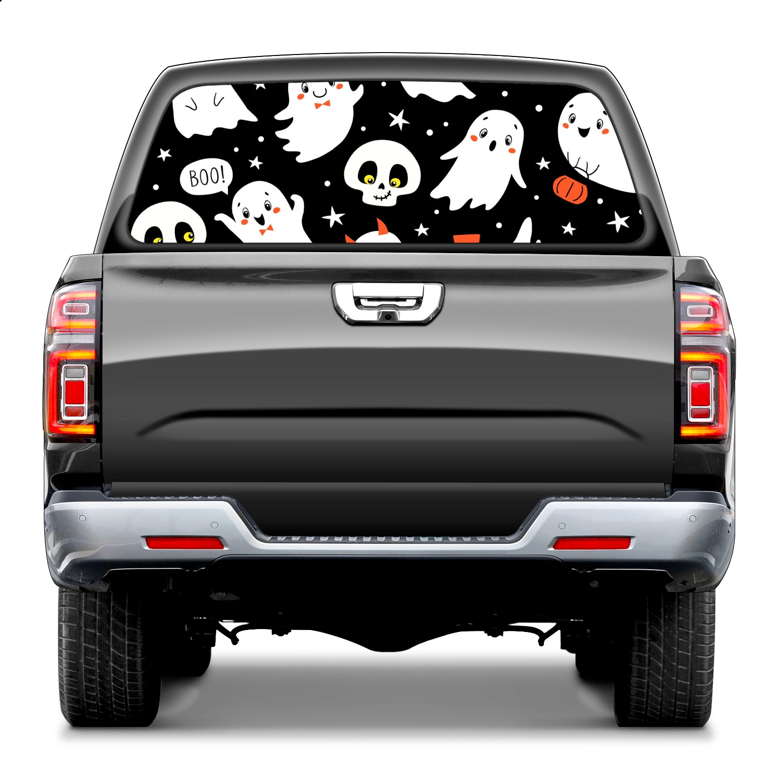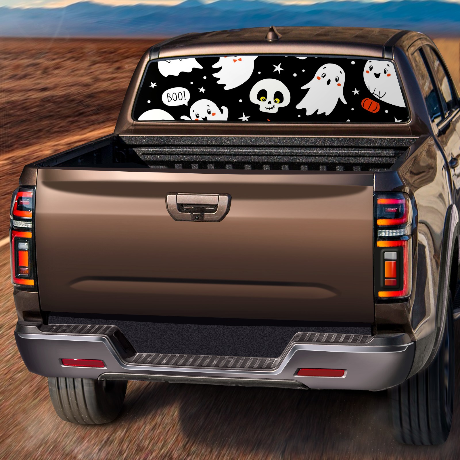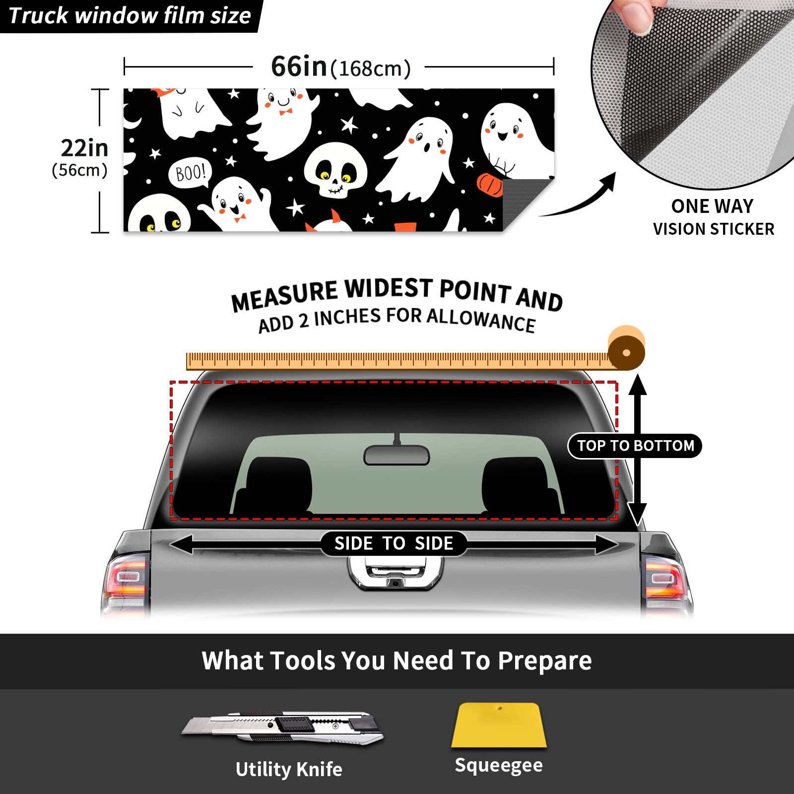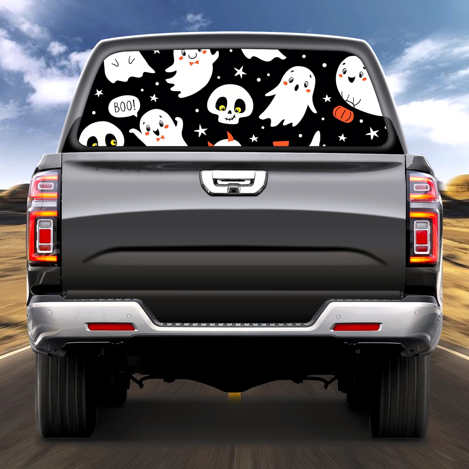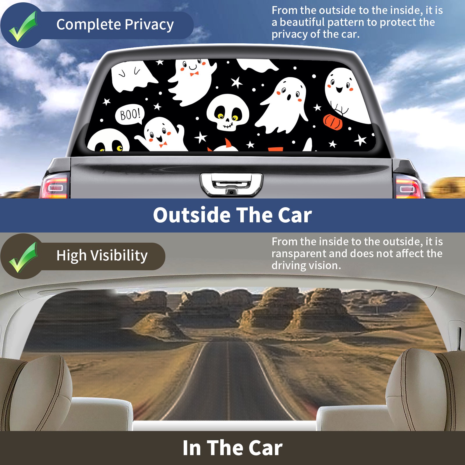 Truck Rear Window Graphics Decals Pickup Trucks Back Window Sticker Full Window Film Decal One Way Visual Waterproof Car Rear Tint Cute Ghosts And Skulls On Black Background
