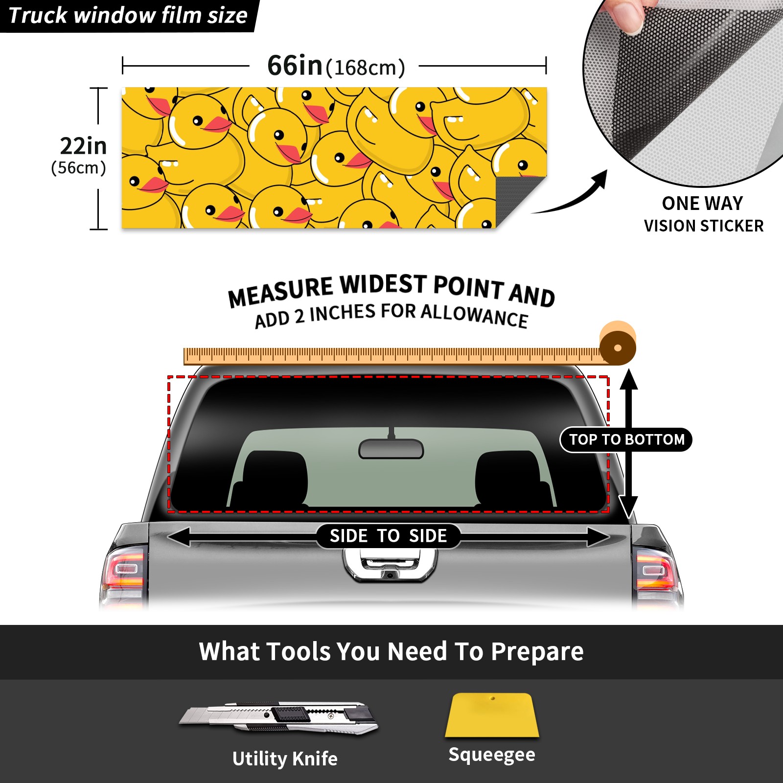 Truck Rear Window Graphics Decals Pickup Trucks Back Window Sticker Full Window Film Decal One Way Visual Waterproof Car Rear Tint Yellow Duck