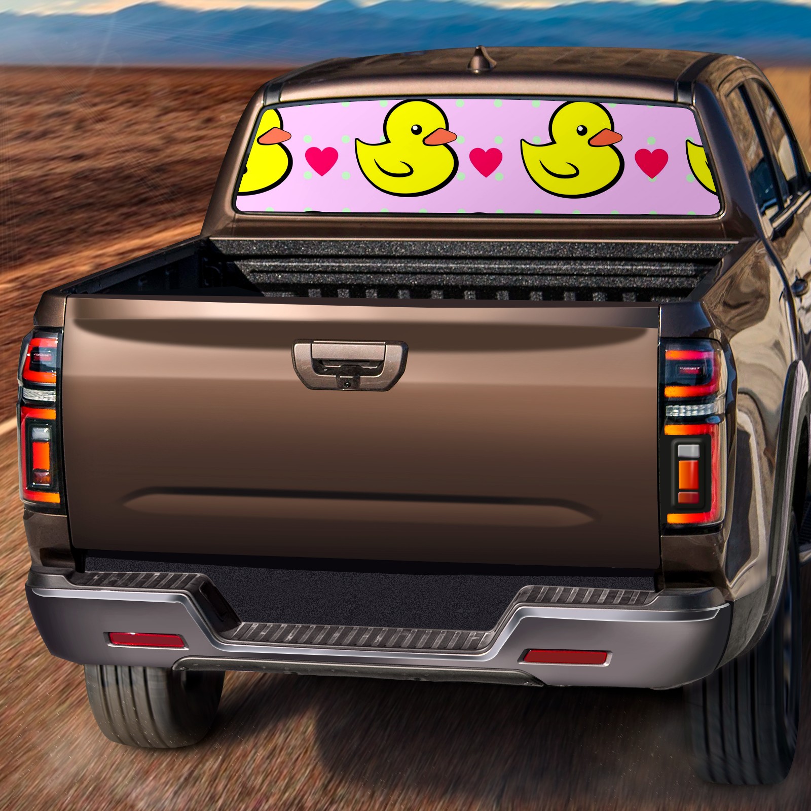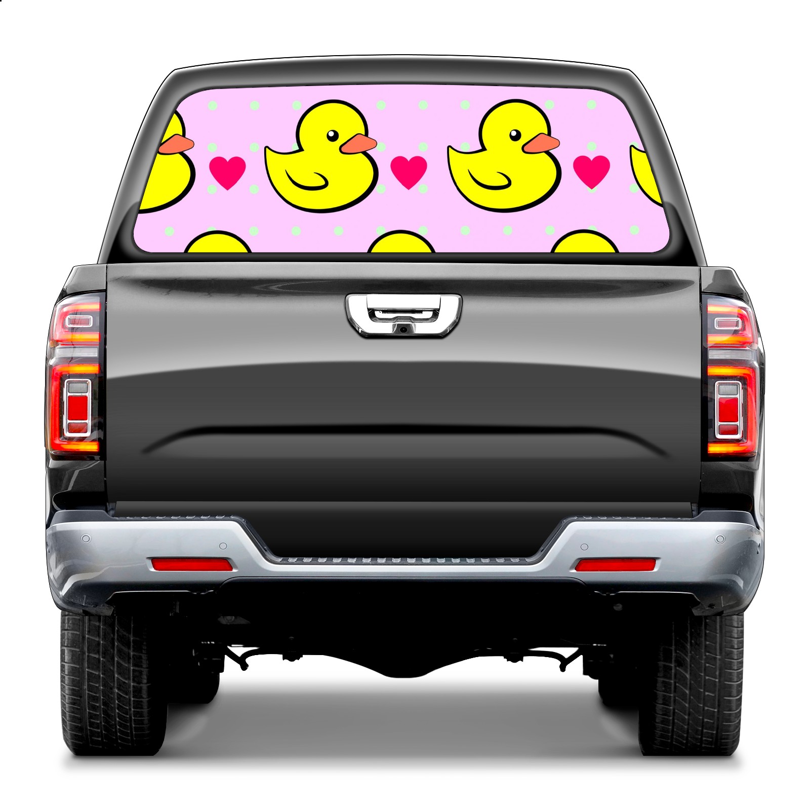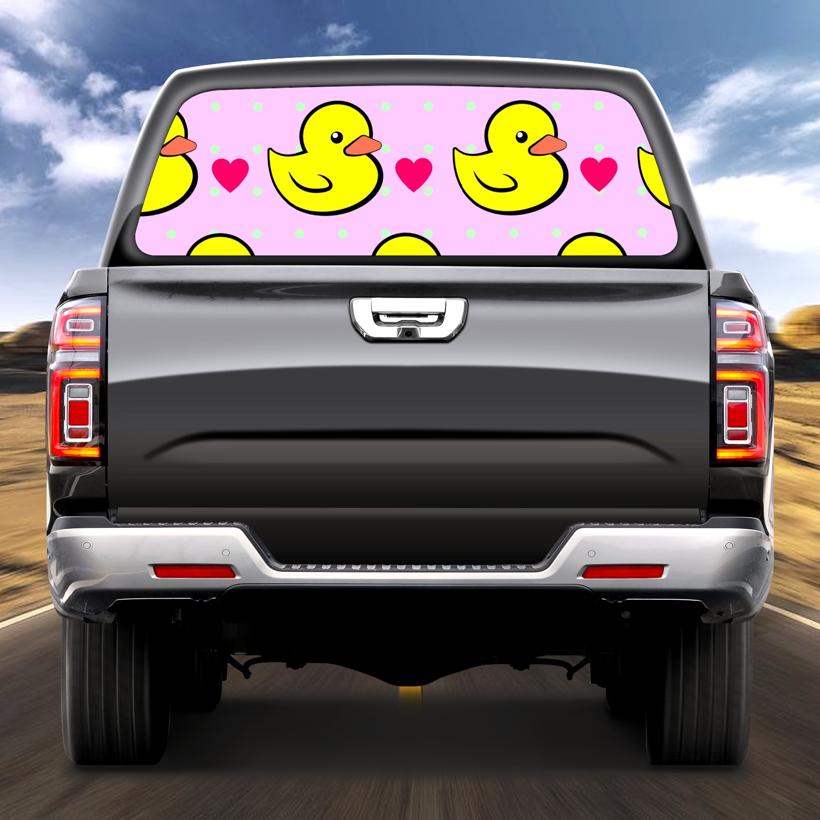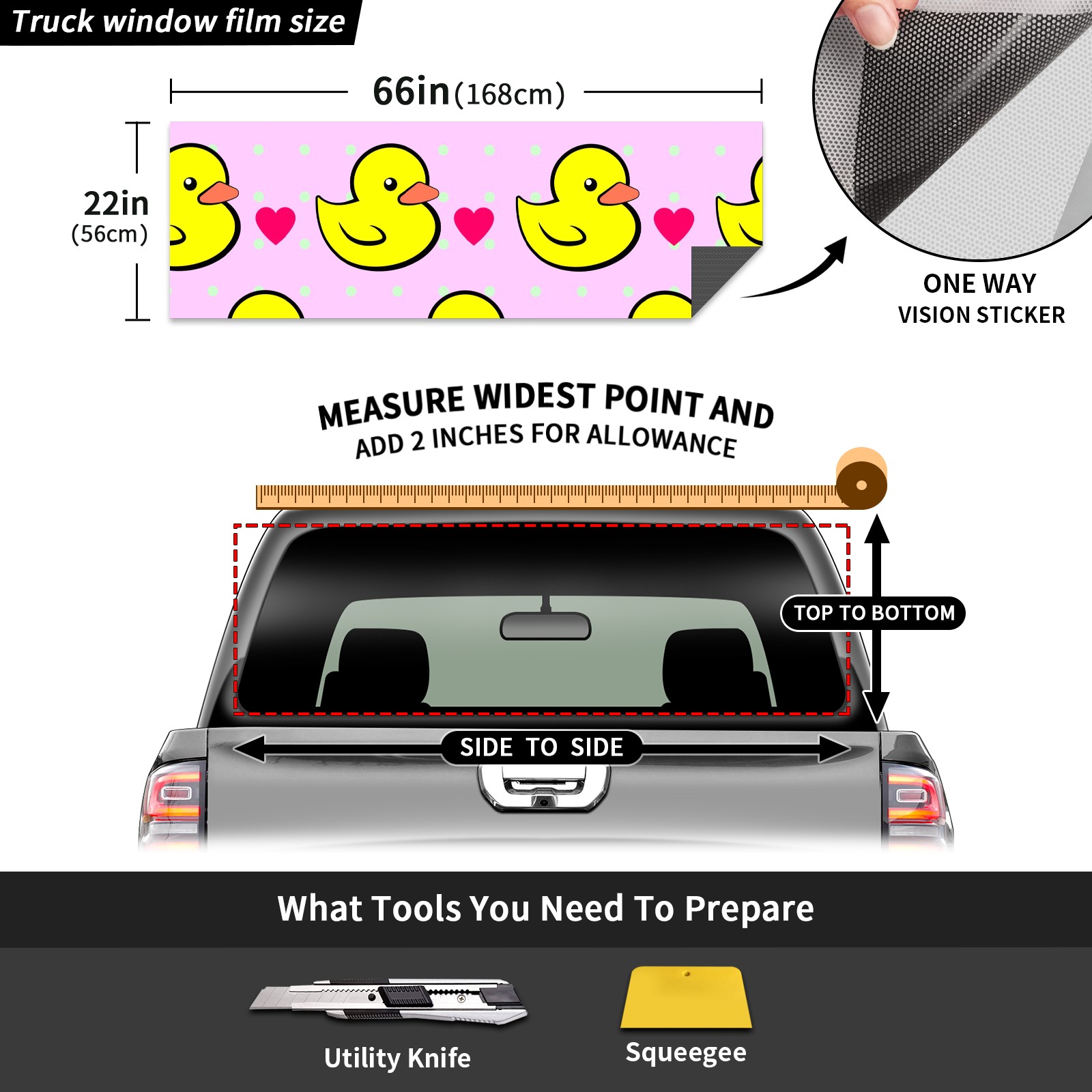 Truck Rear Window Graphics Decals Pickup Trucks Back Window Sticker Full Window Film Decal One Way Visual Waterproof Car Rear Tint Yellow Duck Pink Heart Polka Dots