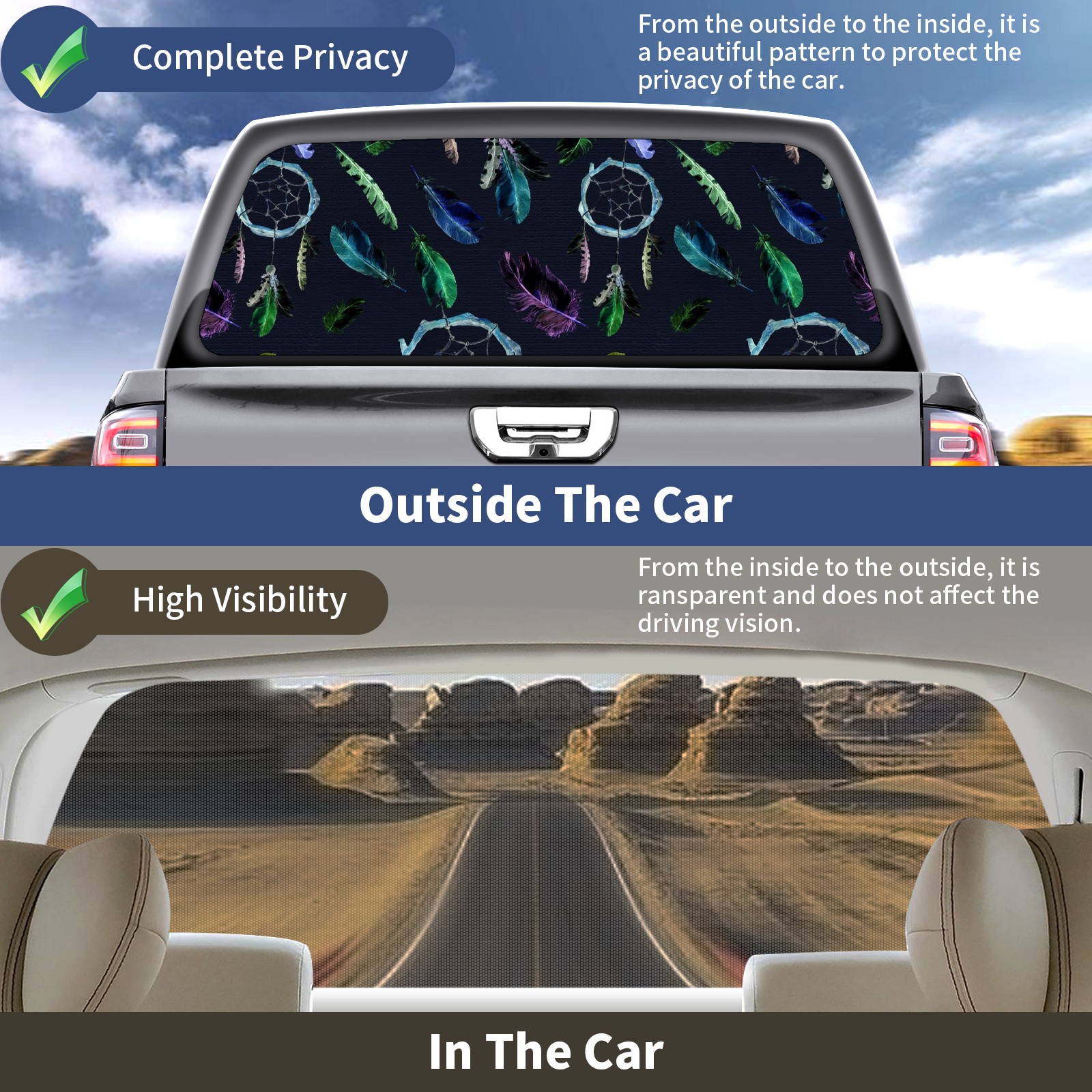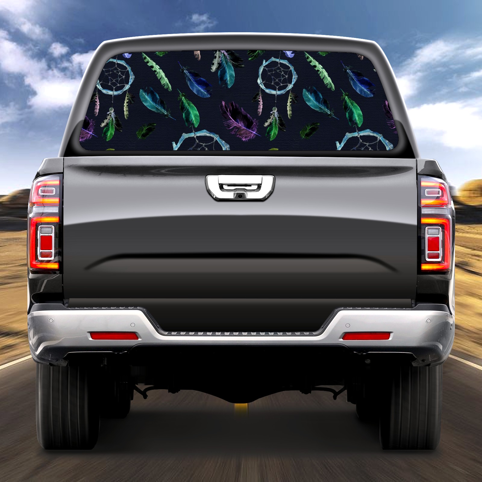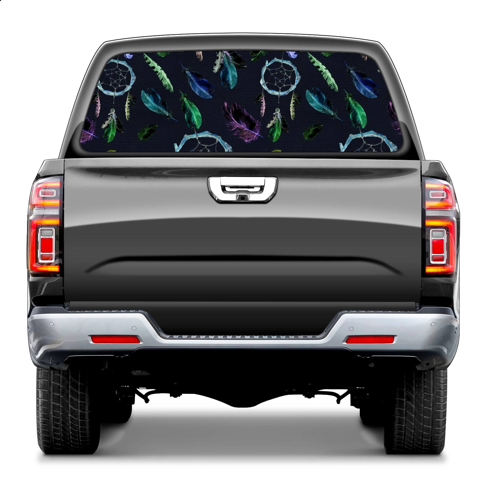 Truck Rear Window Graphics Decals Pickup Trucks Back Window Sticker Full Window Film Decal One Way Visual Waterproof Car Rear Tint Dreamcatcher Feather On Black Background
