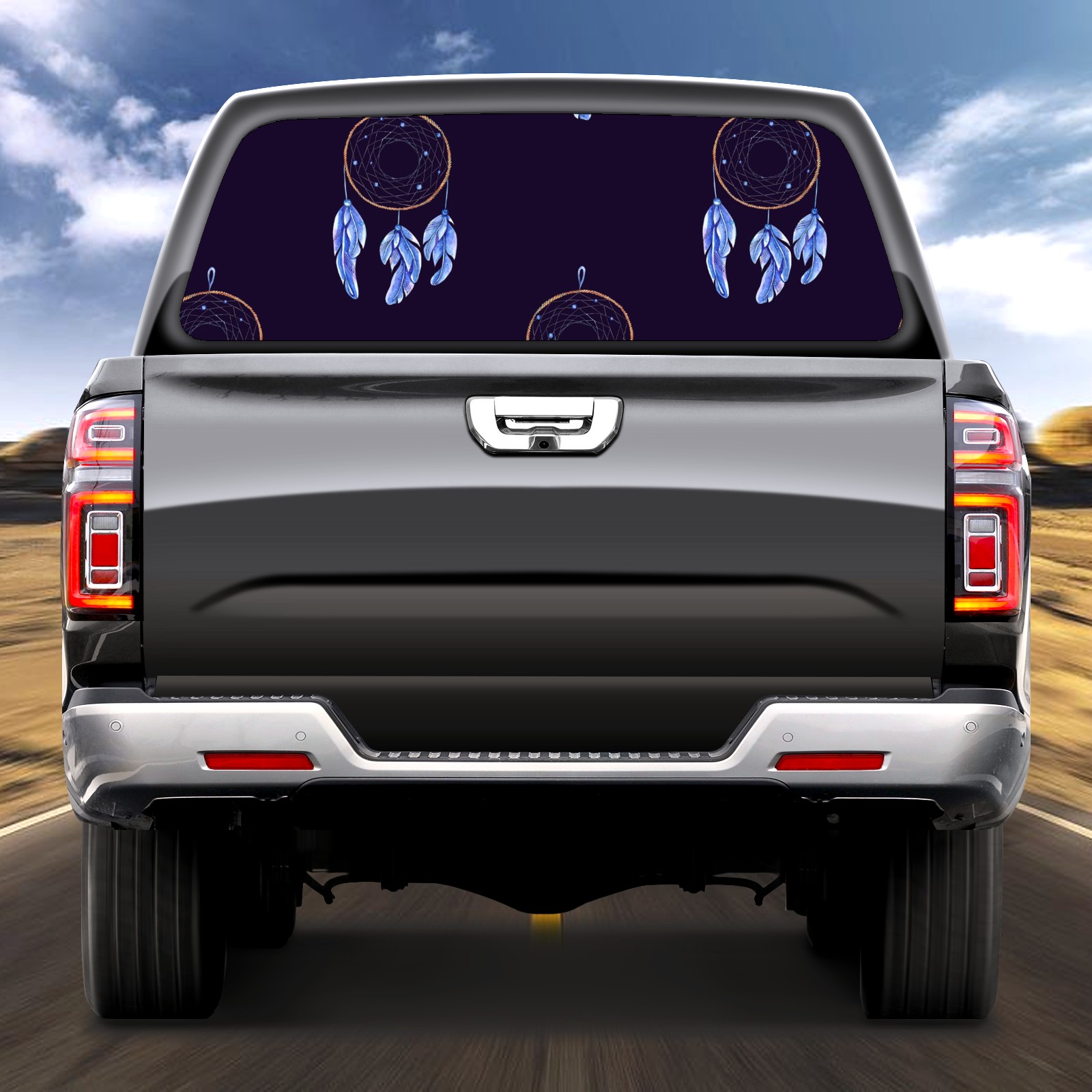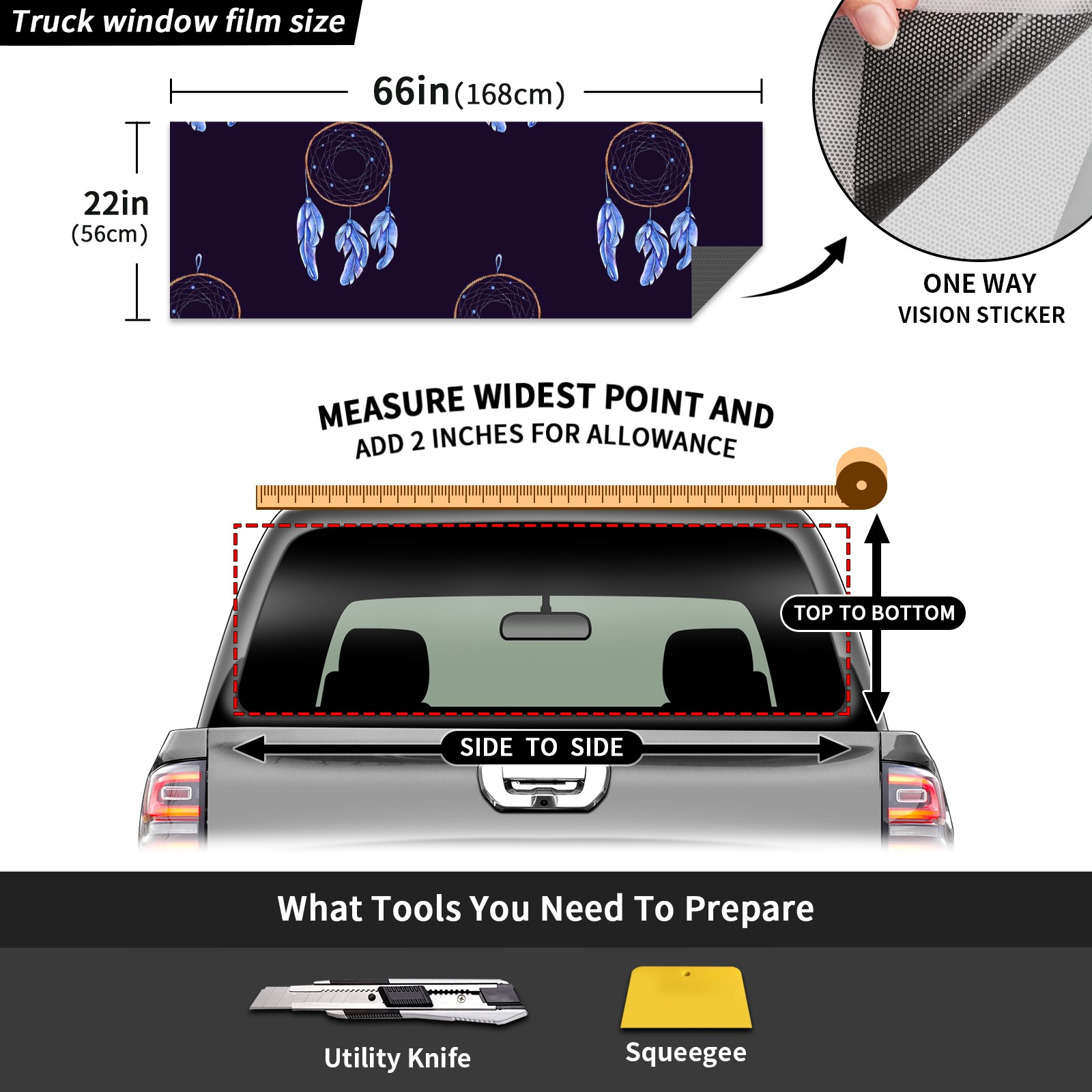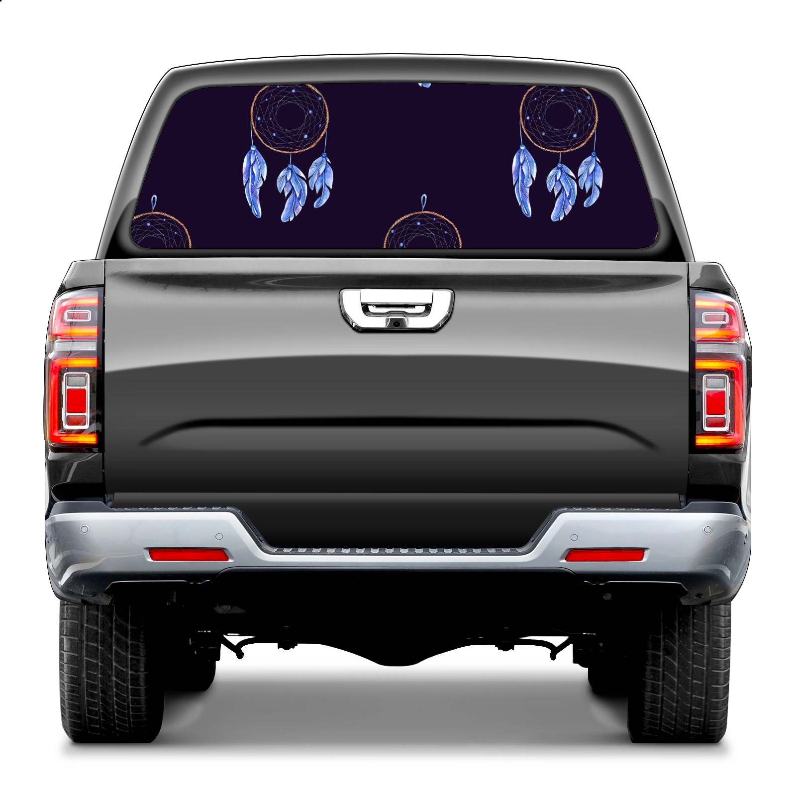 Truck Rear Window Graphics Decals Pickup Trucks Back Window Sticker Full Window Film Decal One Way Visual Waterproof Car Rear Tint Bohemian Blue Dream Catcher