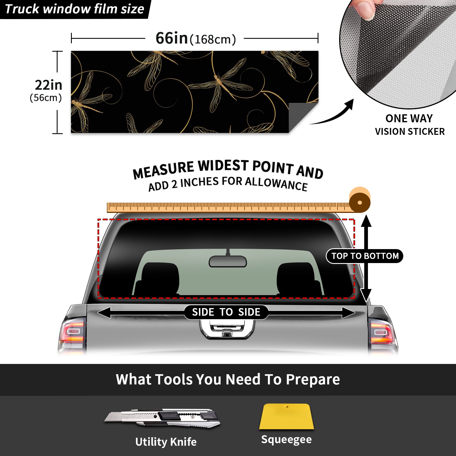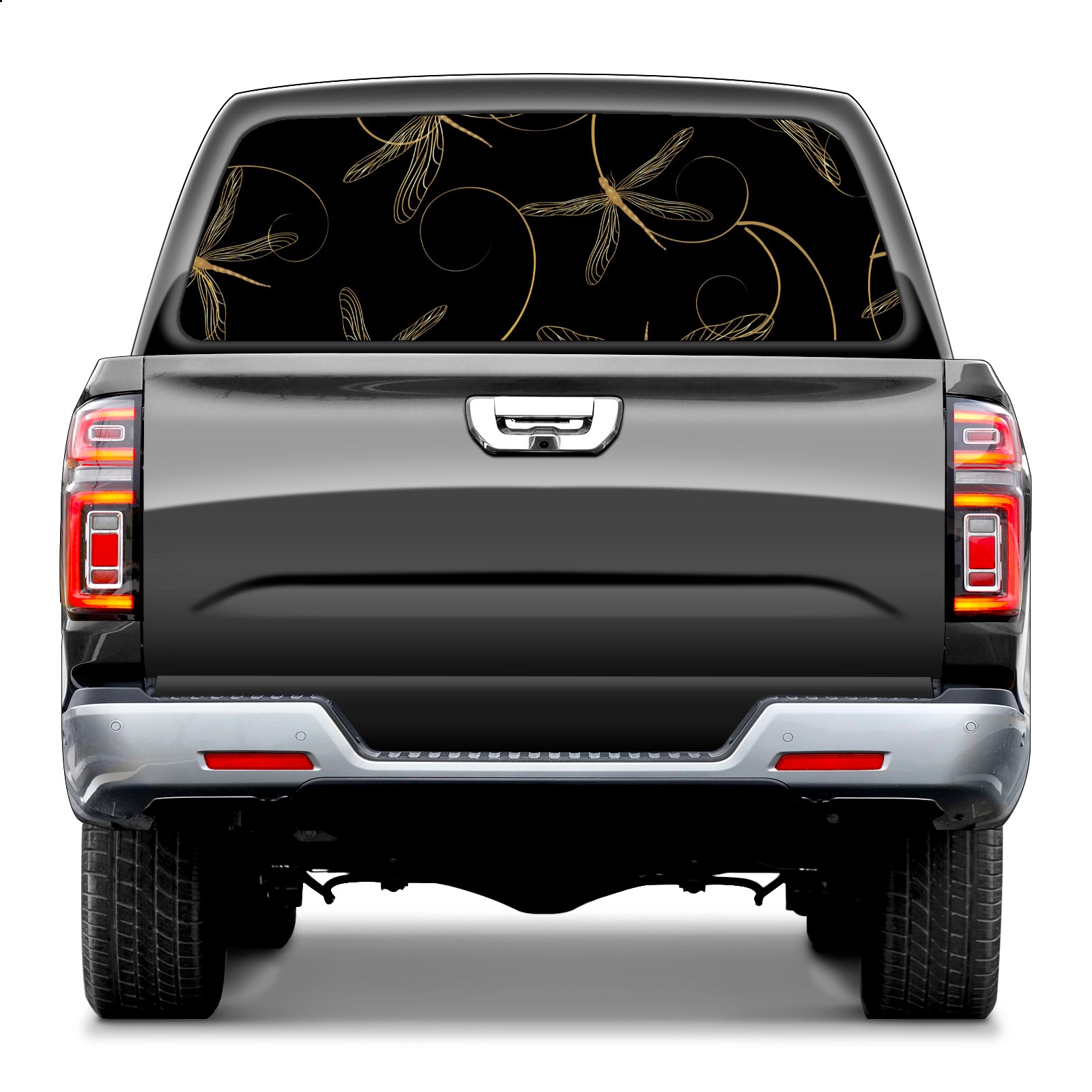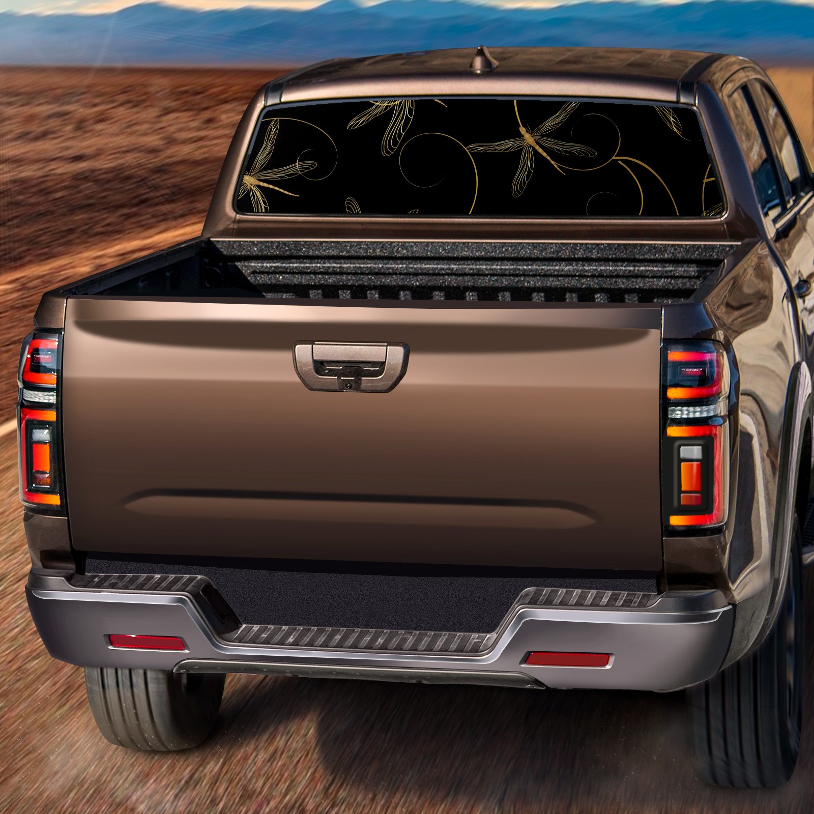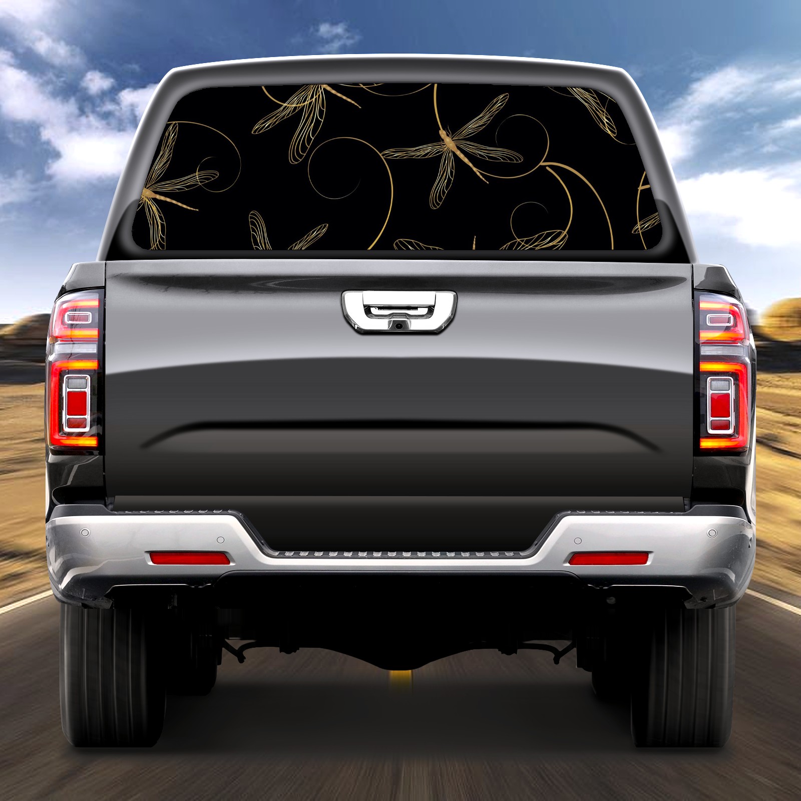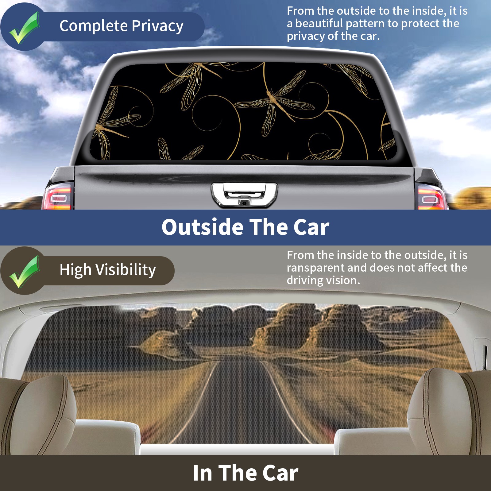 Truck Rear Window Graphics Decals Pickup Trucks Back Window Sticker Full Window Film Decal One Way Visual Waterproof Car Rear Tint Golden Dragonfly On Black Background