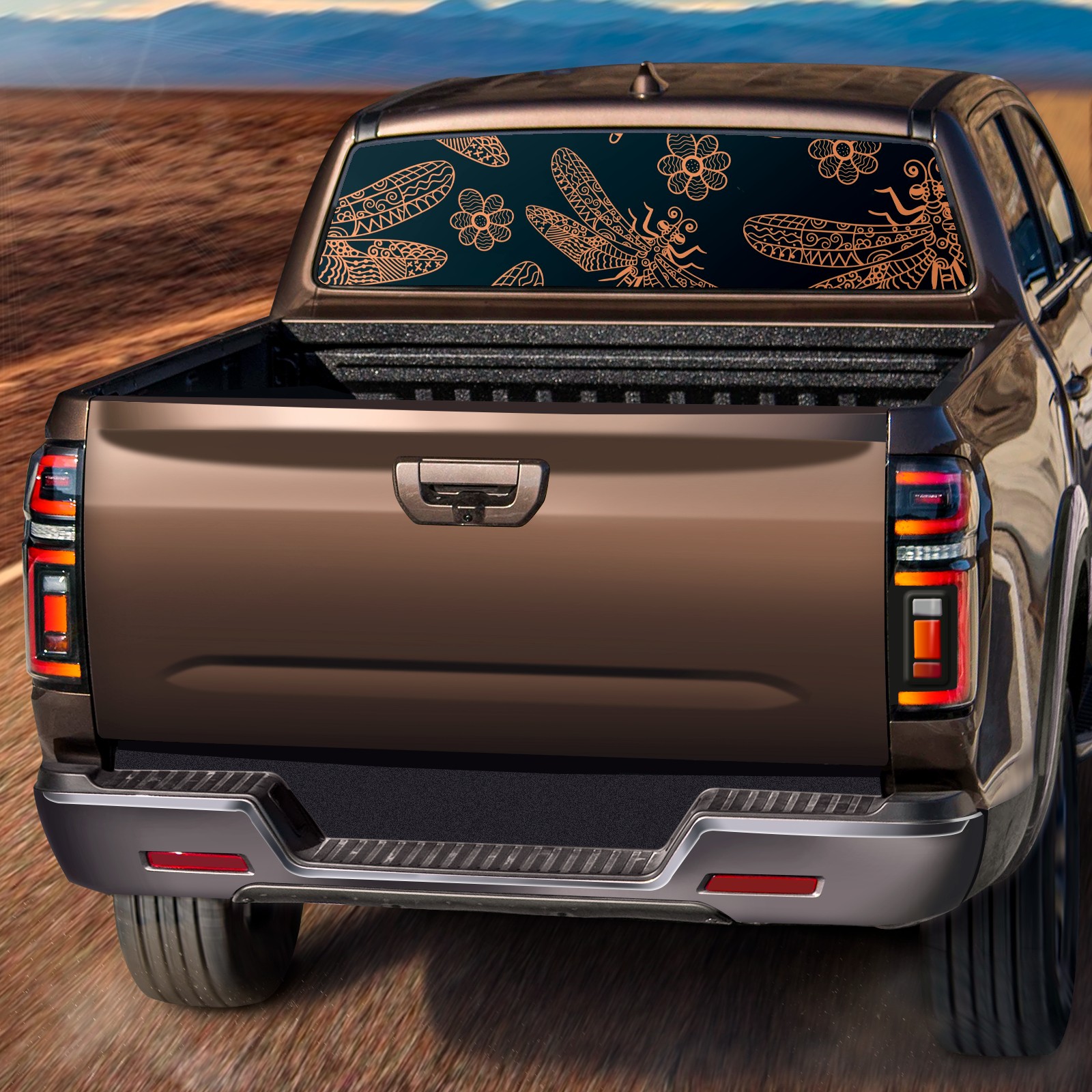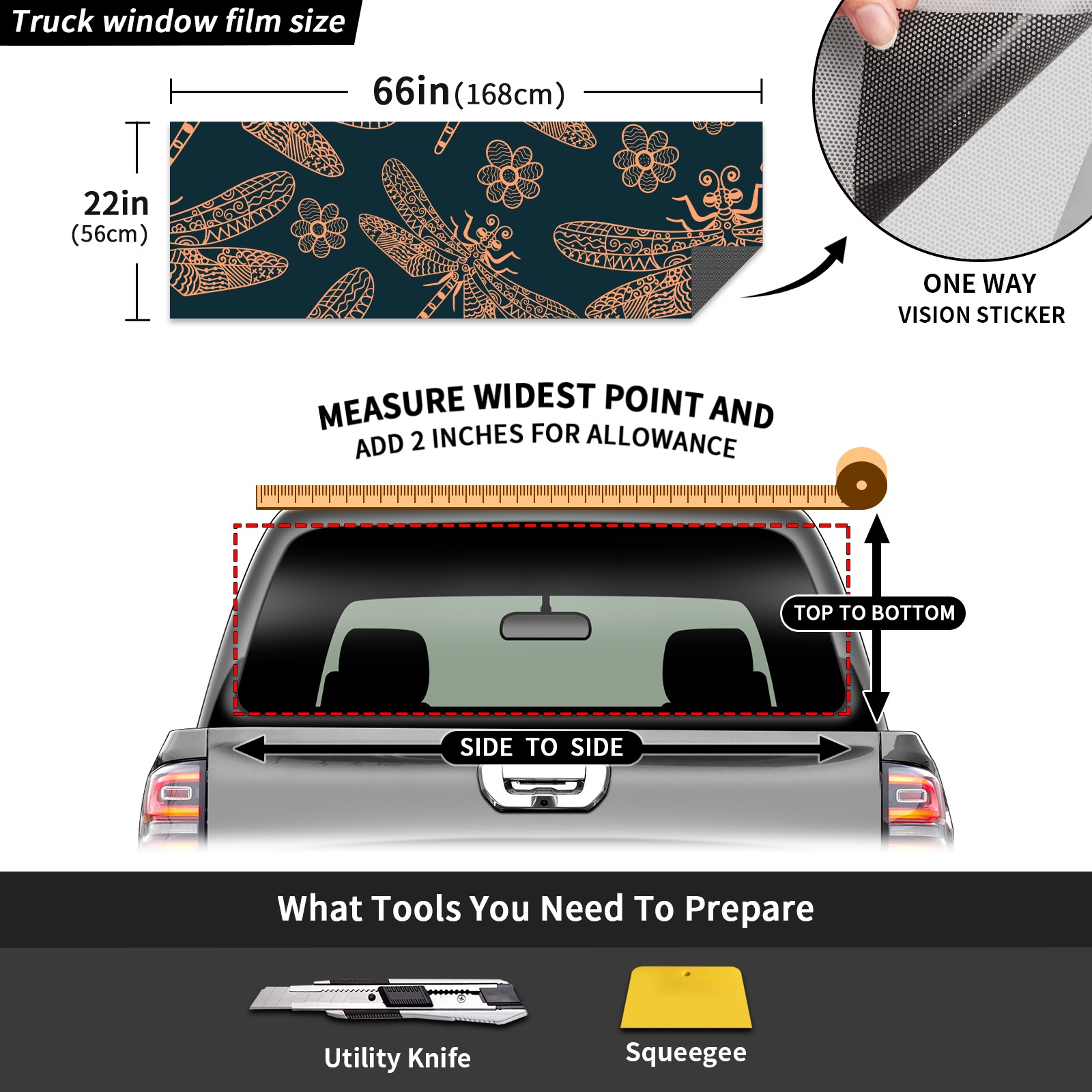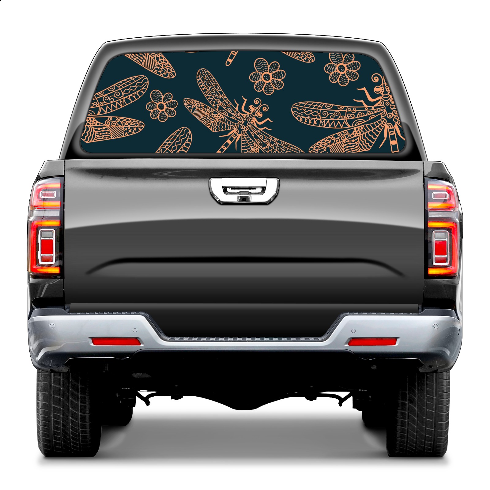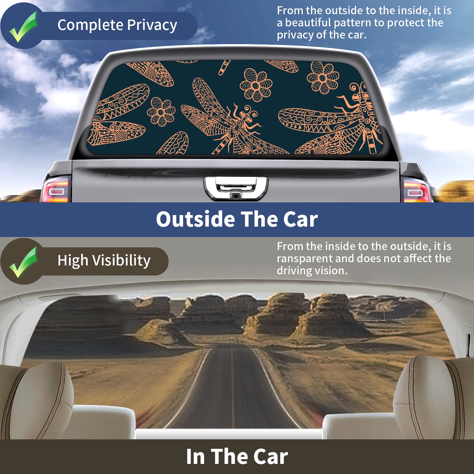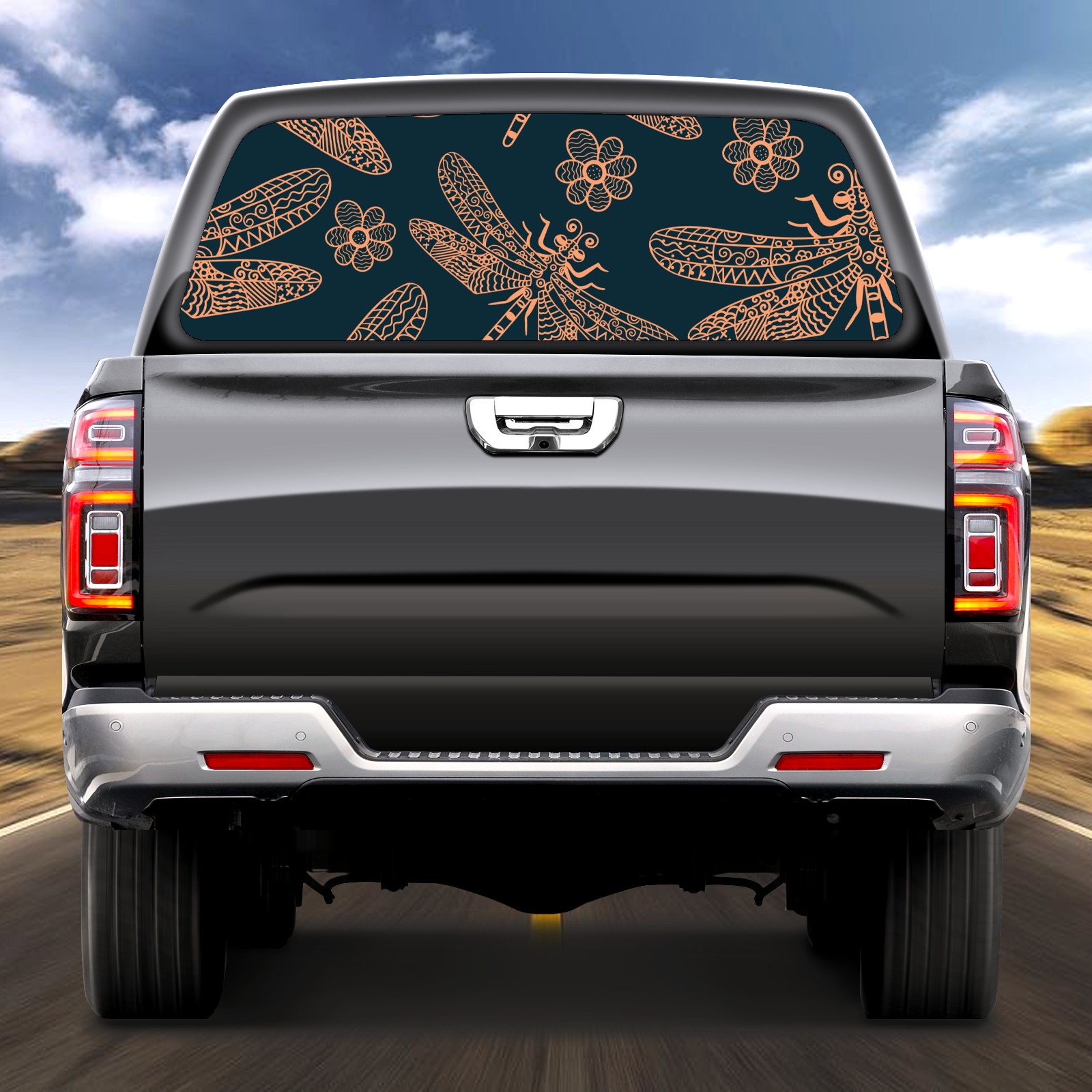 Truck Rear Window Graphics Decals Pickup Trucks Back Window Sticker Full Window Film Decal One Way Visual Waterproof Car Rear Tint Dragonfly On Blue Background