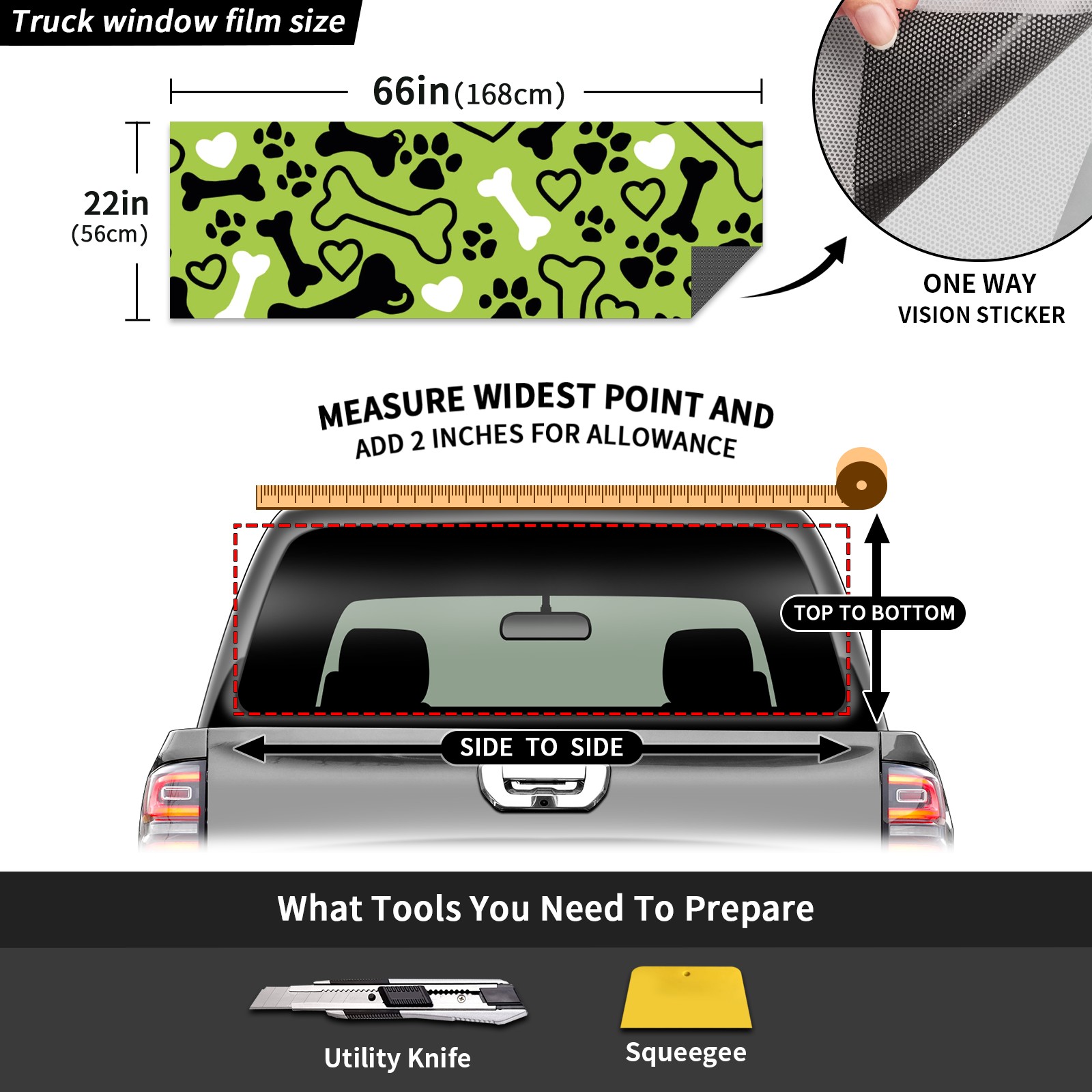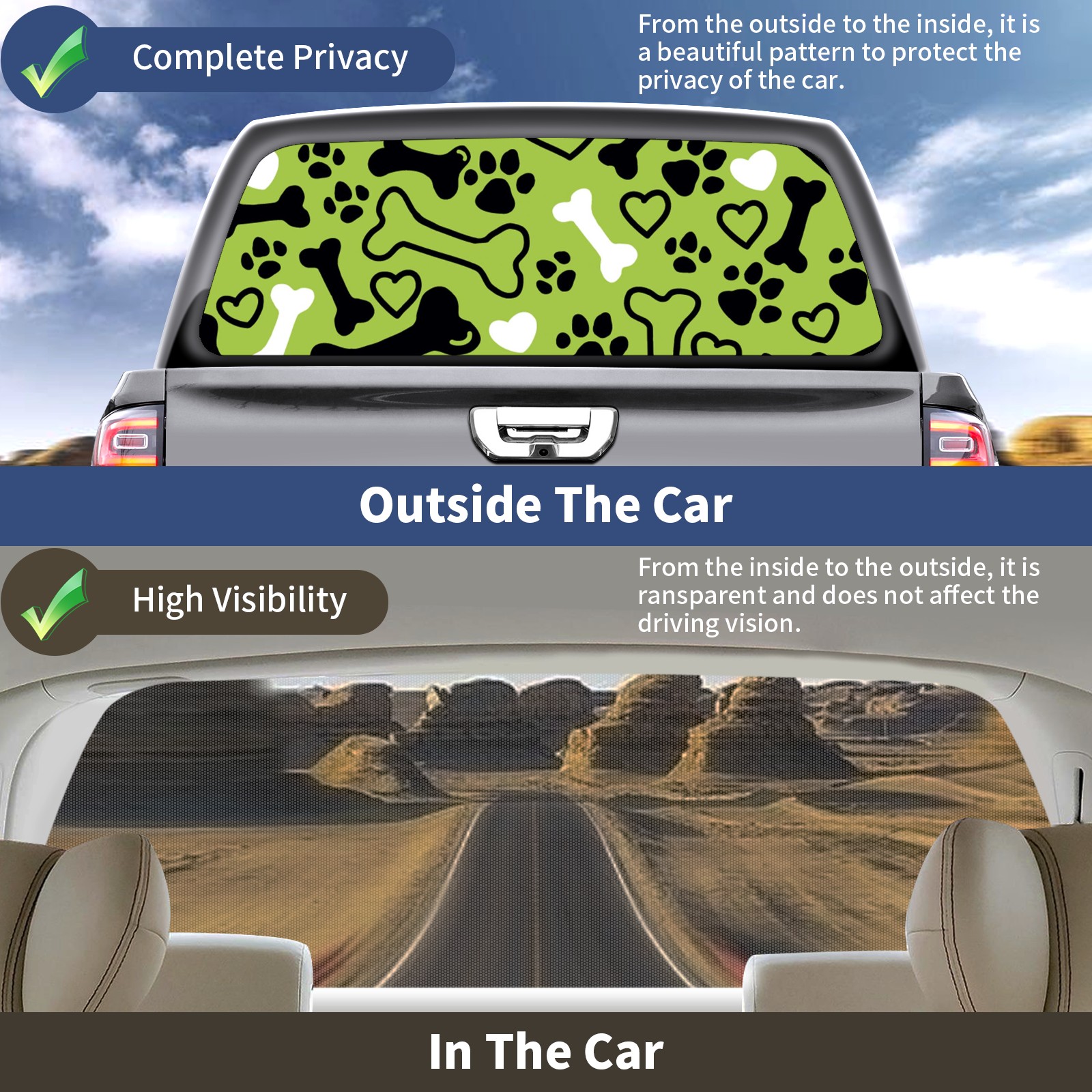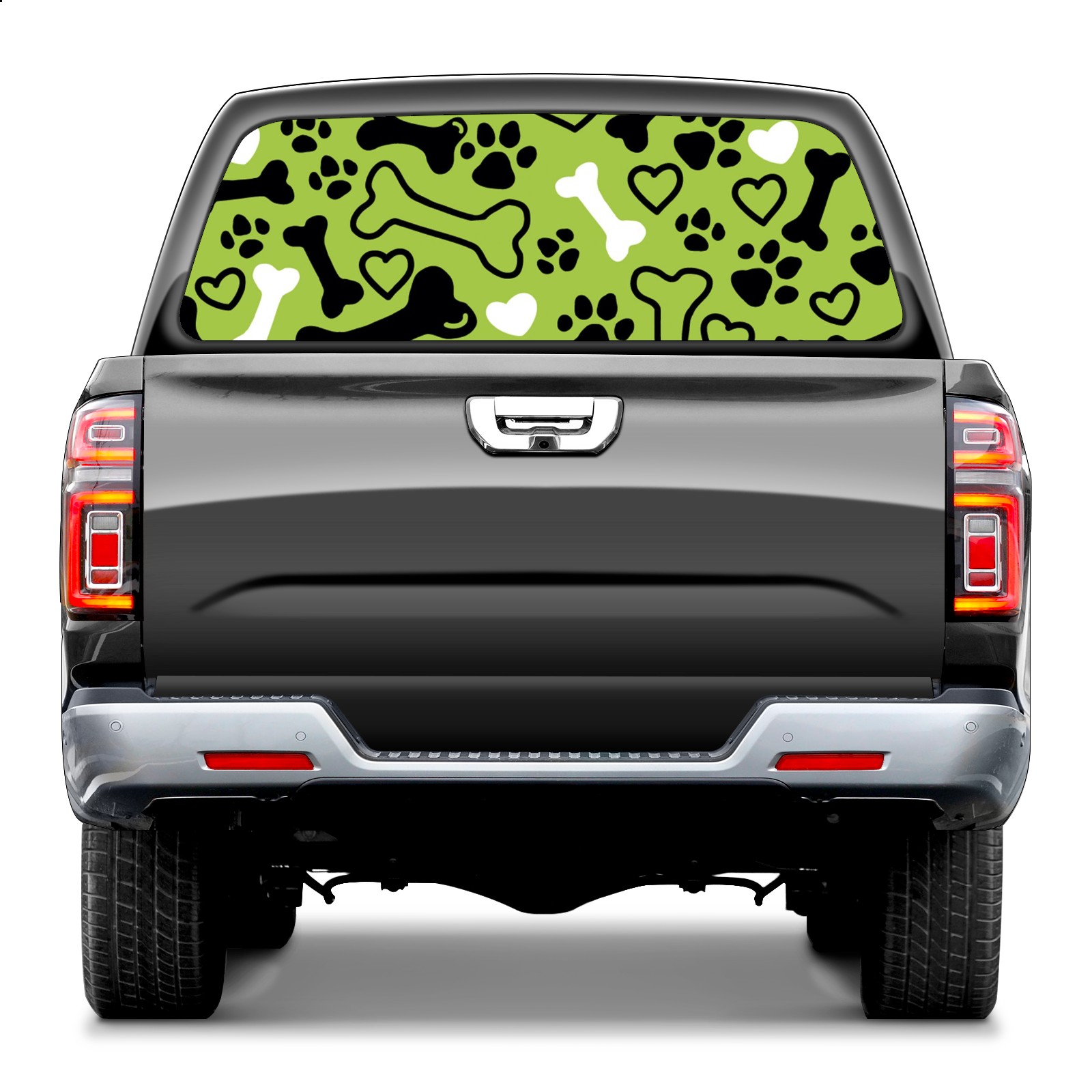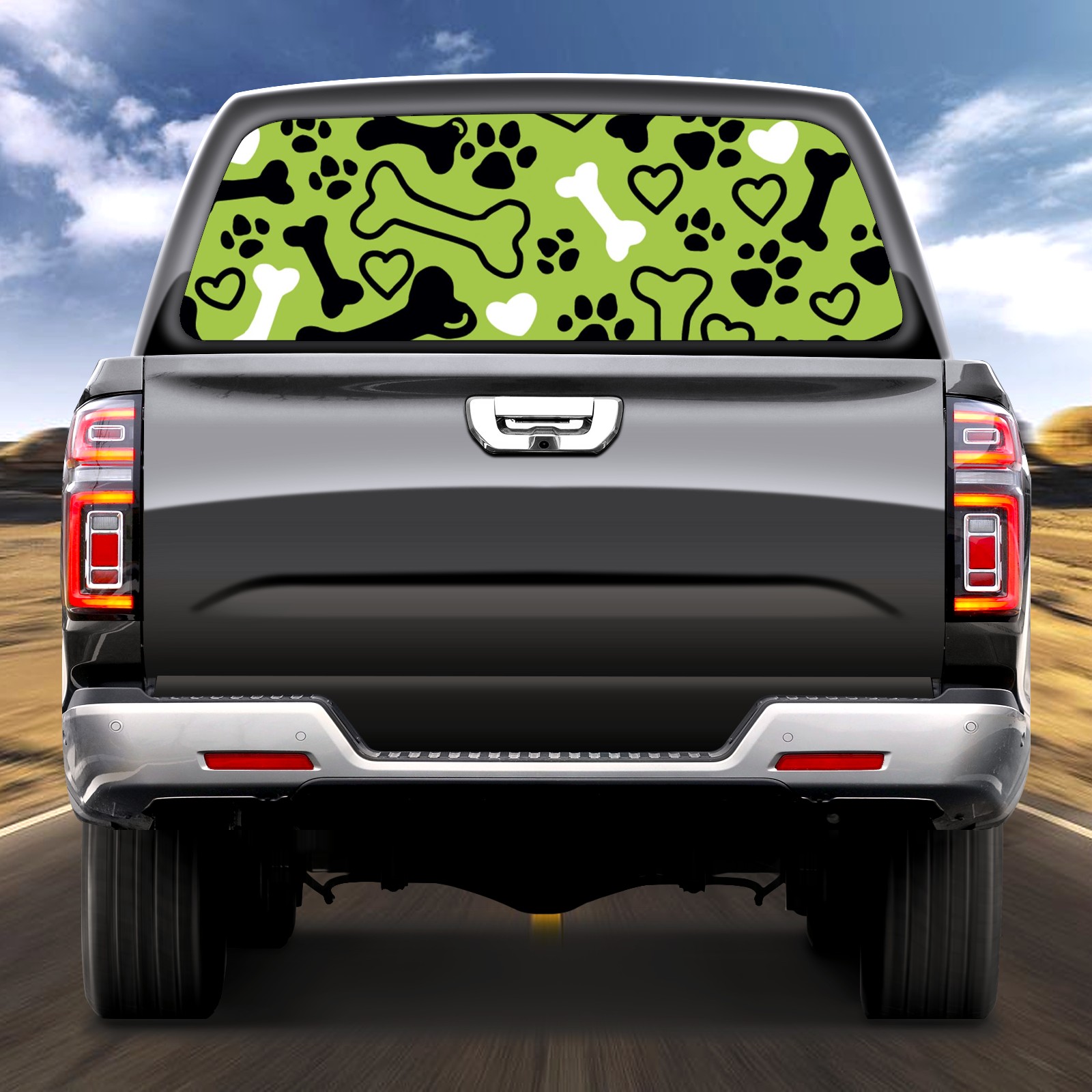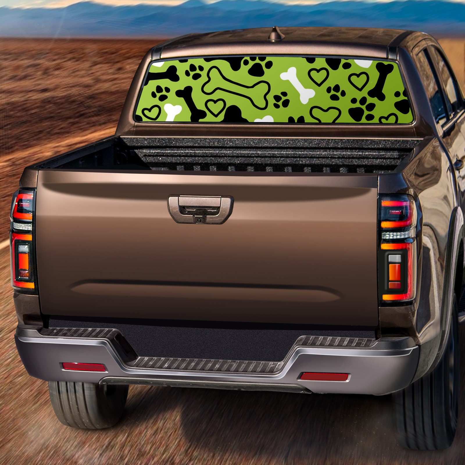 Truck Rear Window Graphics Decals Pickup Trucks Back Window Sticker Full Window Film Decal One Way Visual Waterproof Car Rear Tint Bone Heart Paw On Green Background