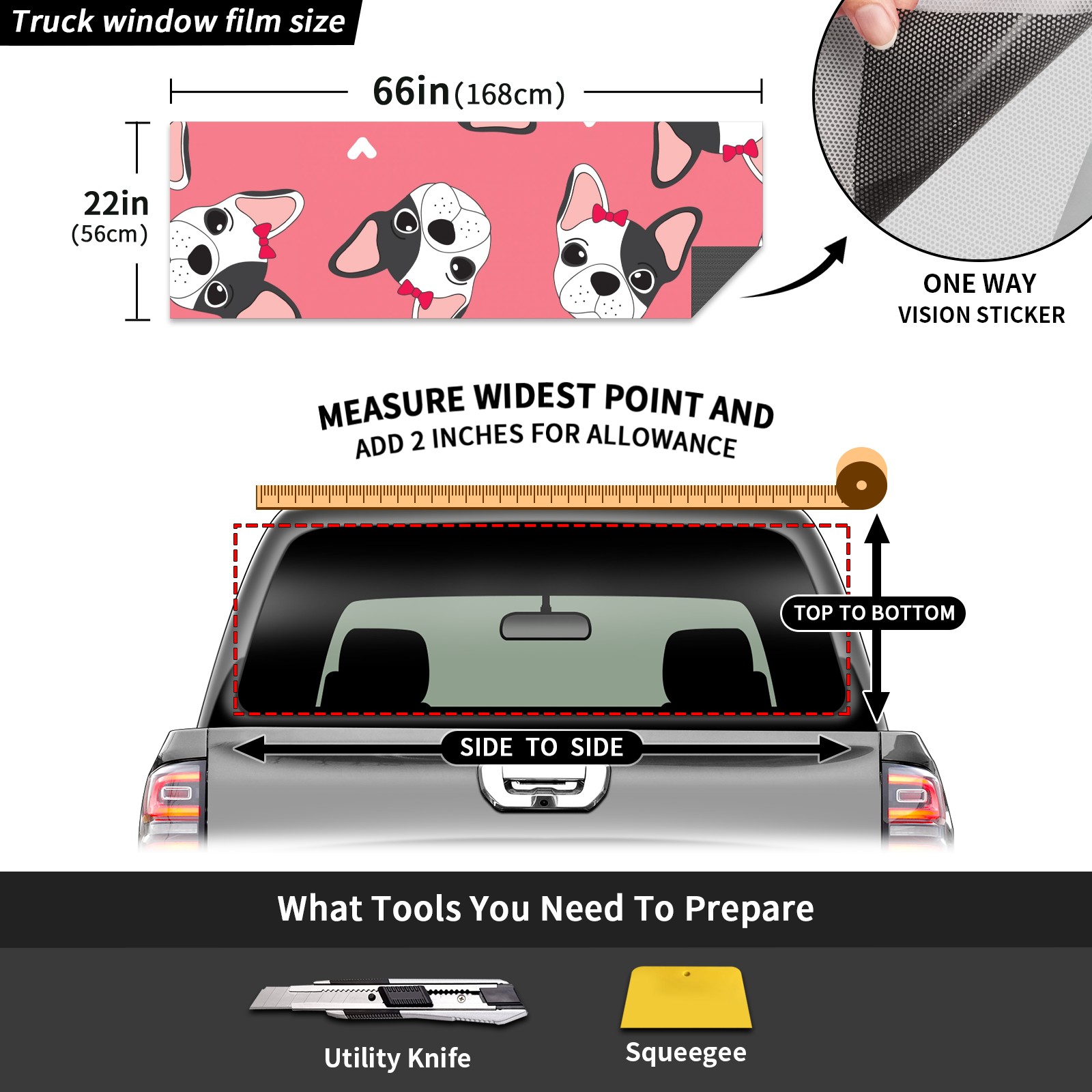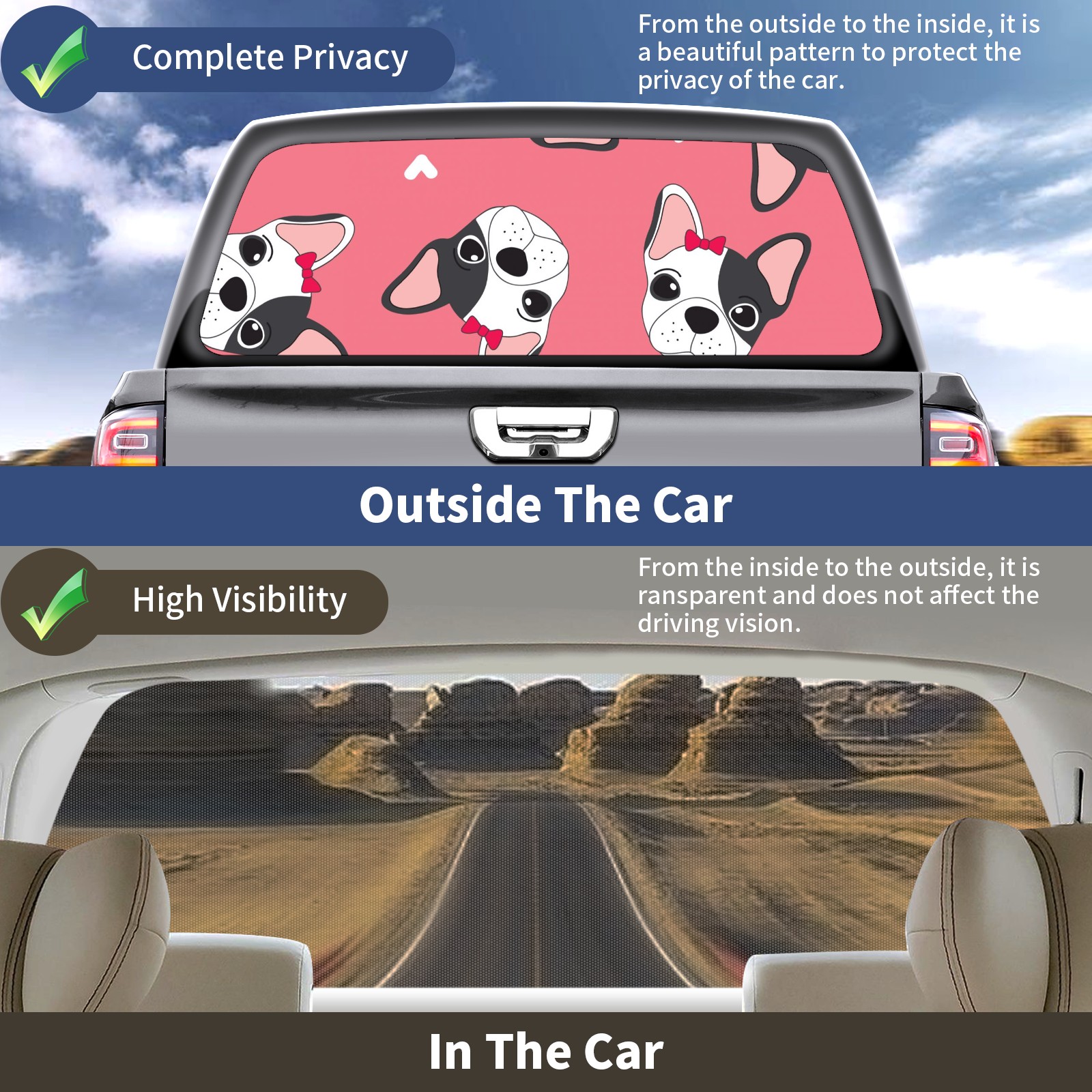 Truck Rear Window Graphics Decals Pickup Trucks Back Window Sticker Full Window Film Decal One Way Visual Waterproof Car Rear Tint Cute Valentine's Day Dog