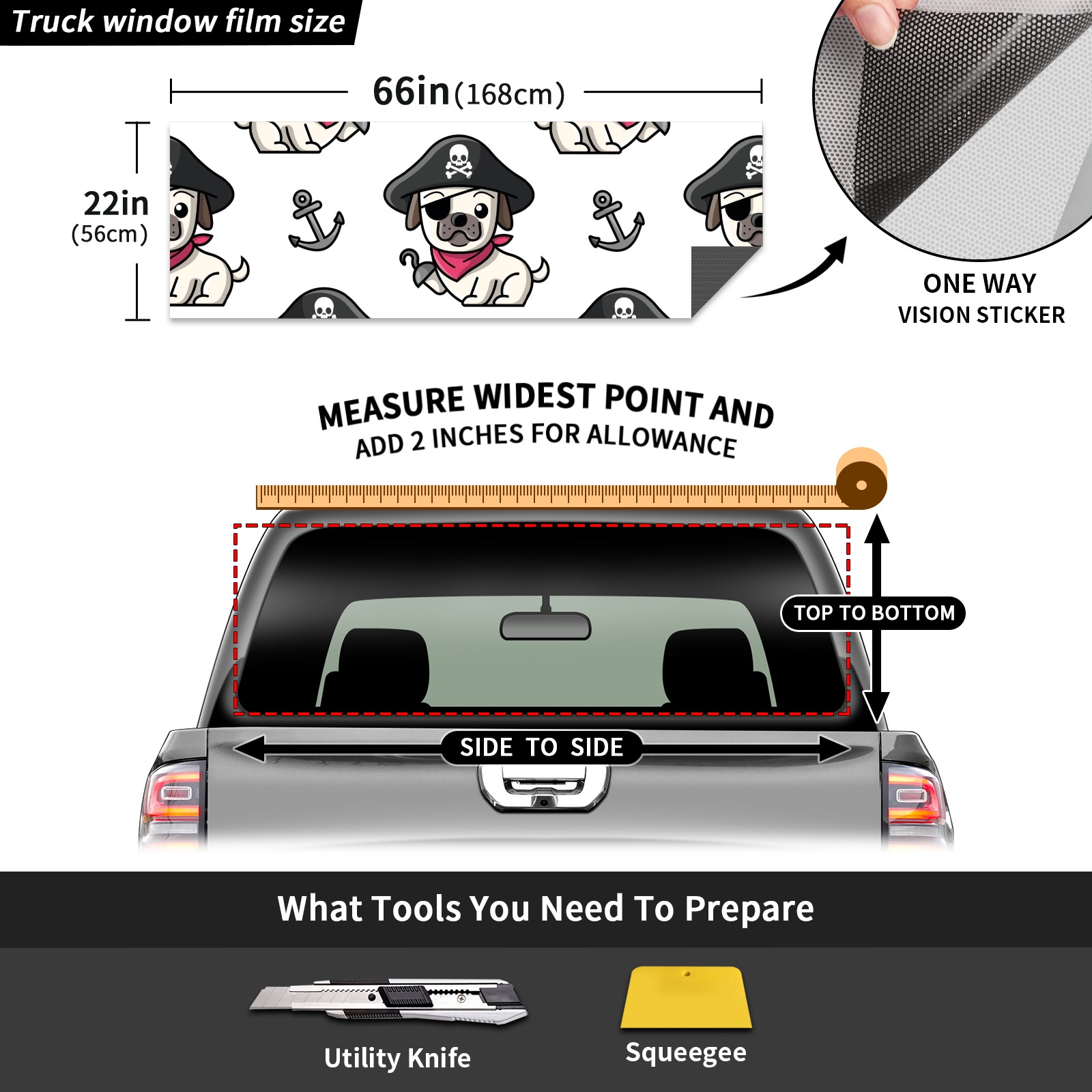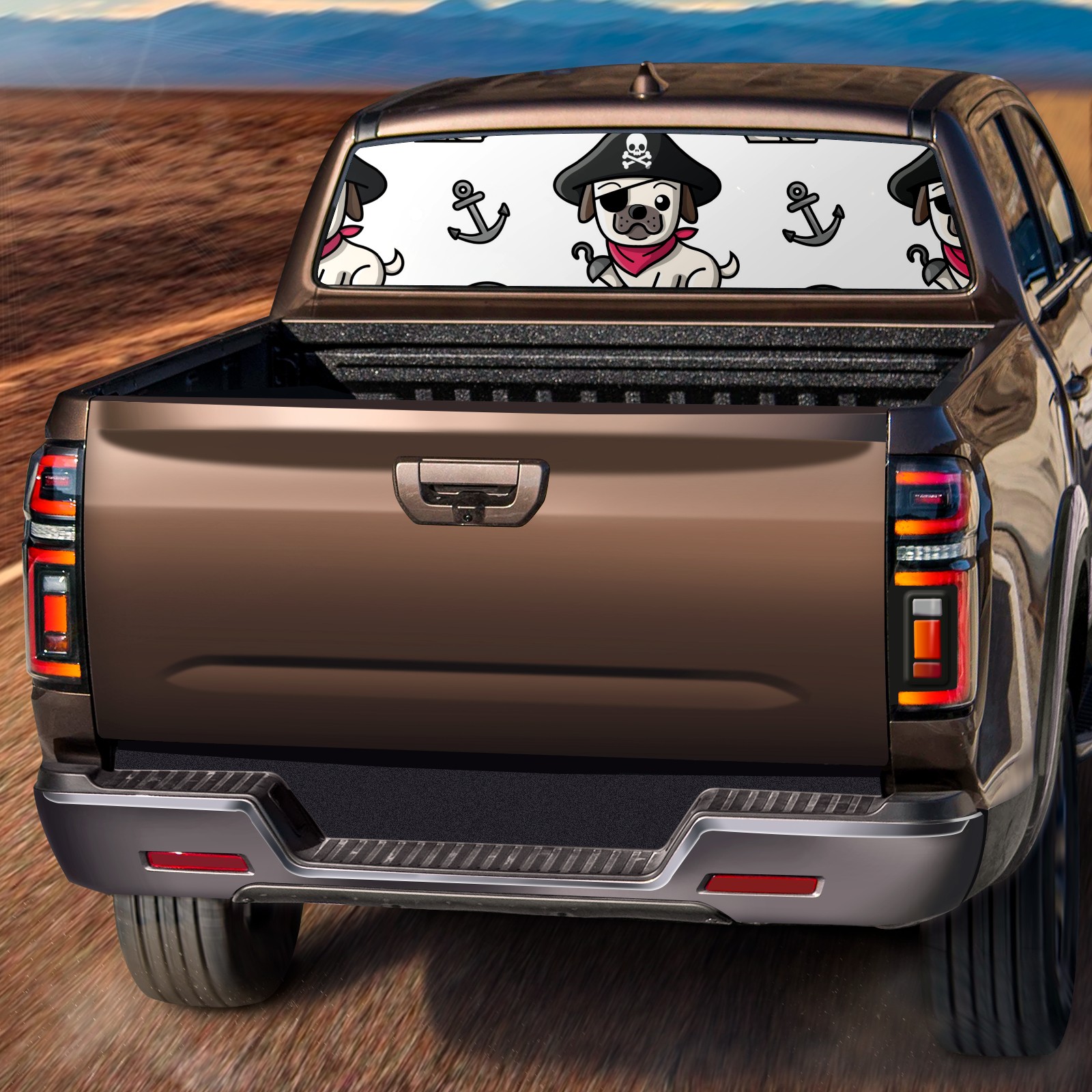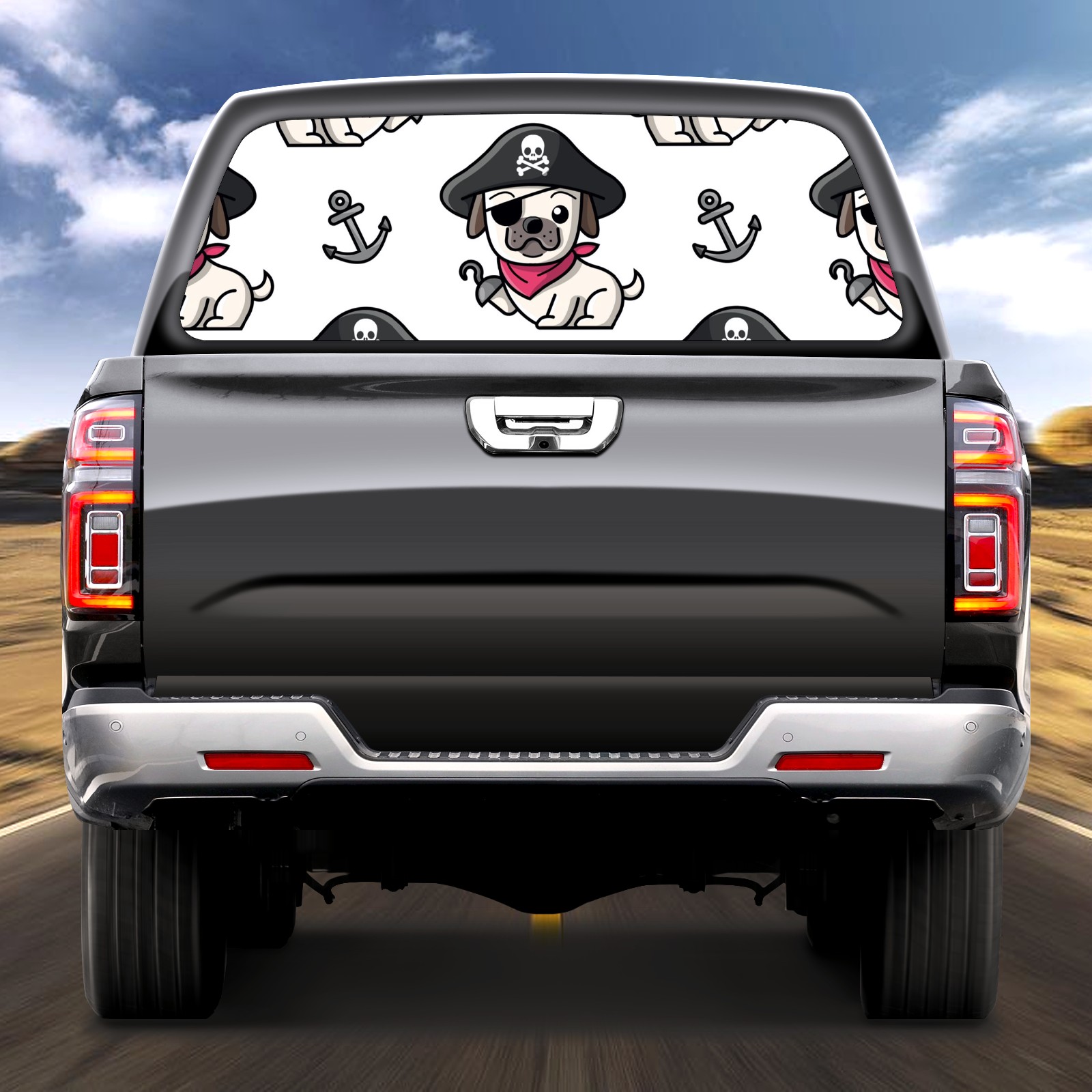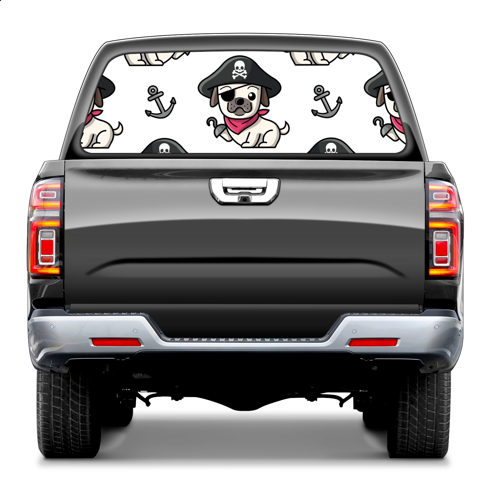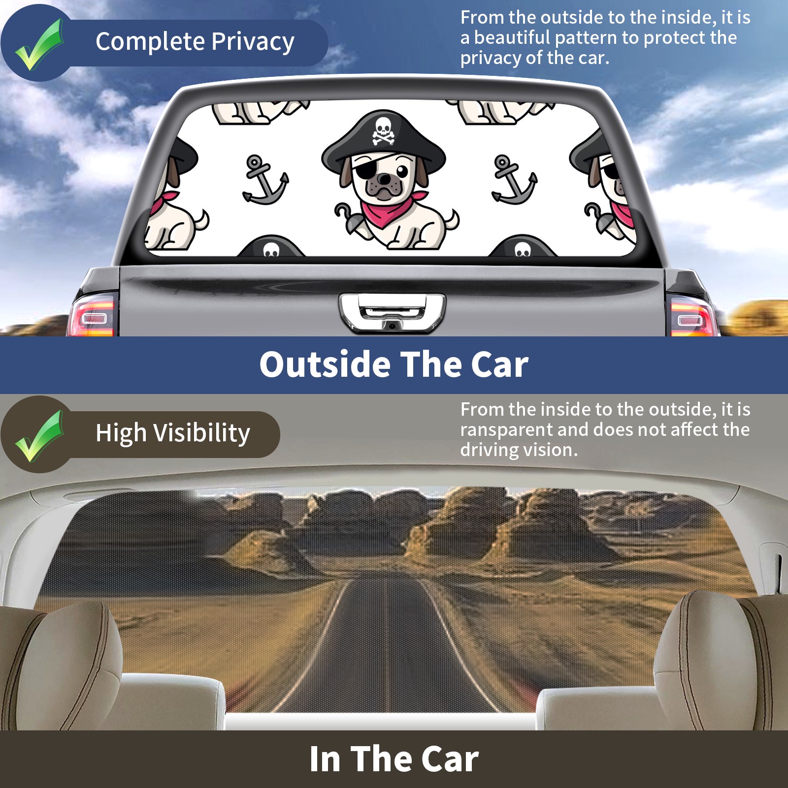 Truck Rear Window Graphics Decals Pickup Trucks Back Window Sticker Full Window Film Decal One Way Visual Waterproof Car Rear Tint Cute Pirate Dog