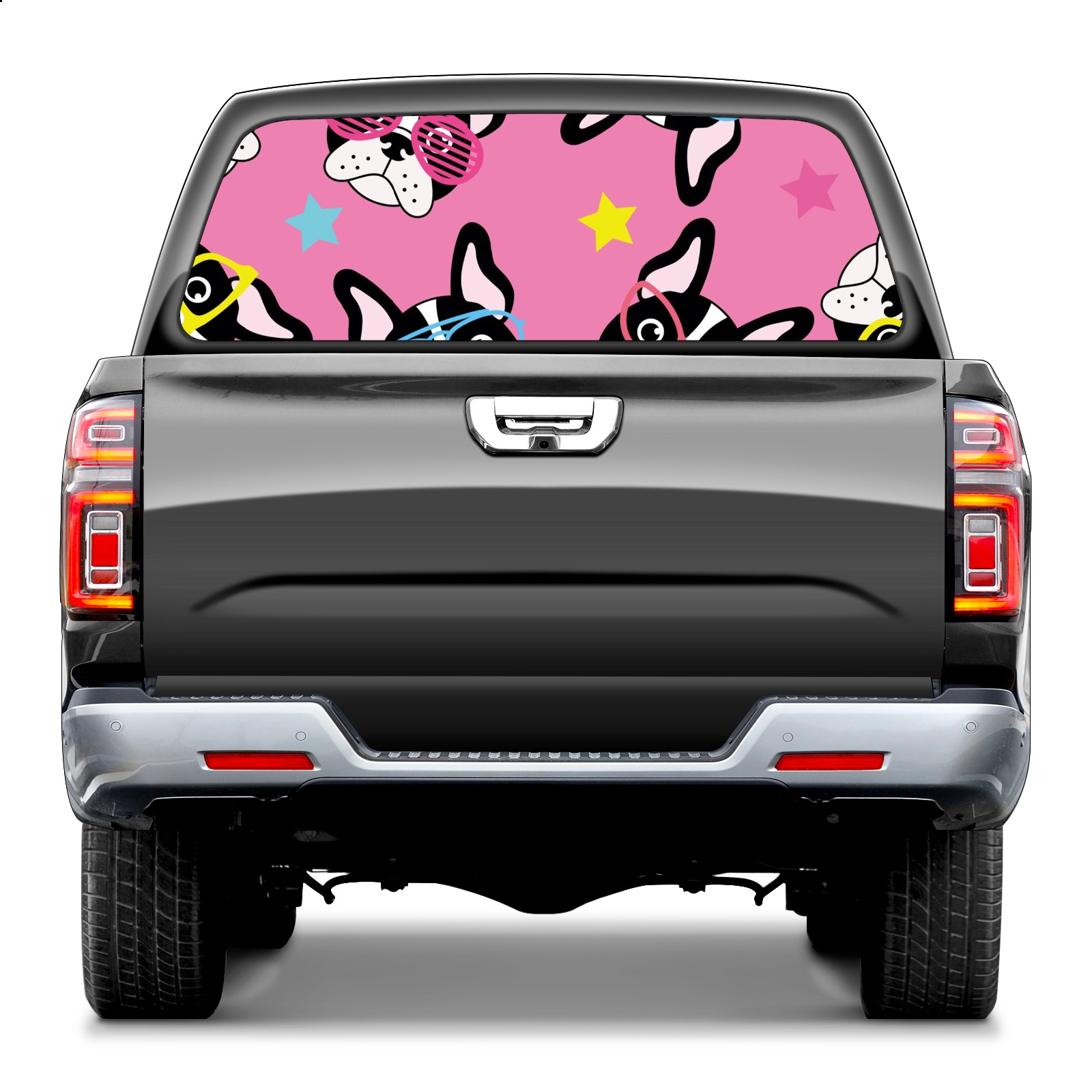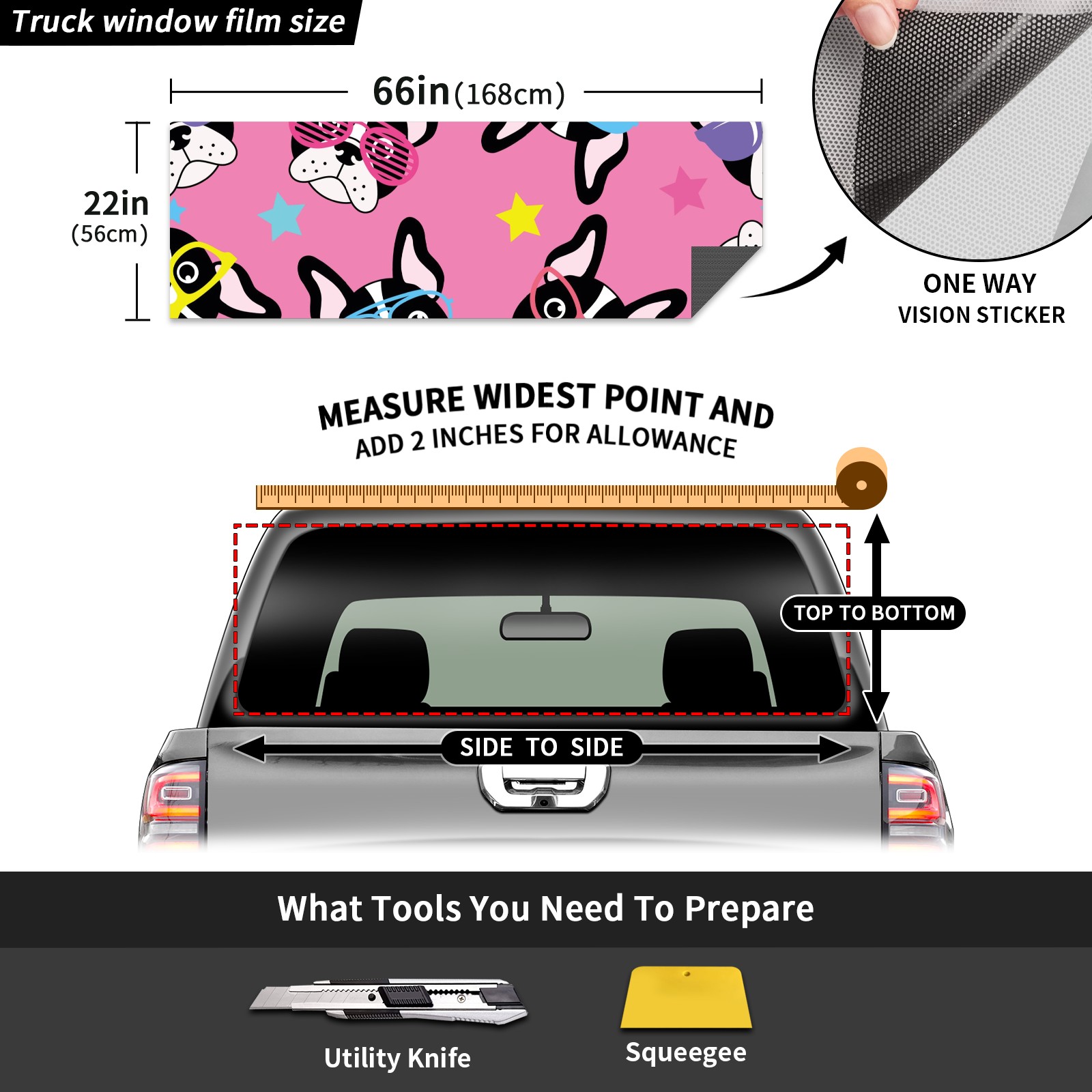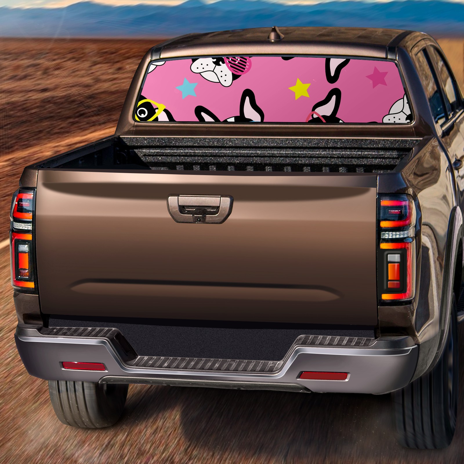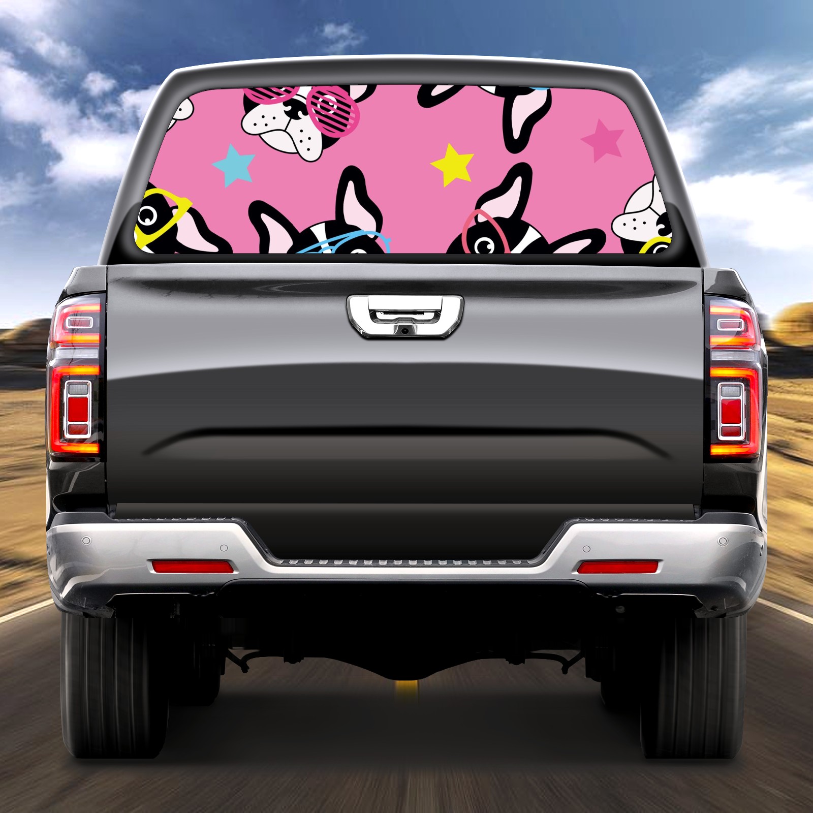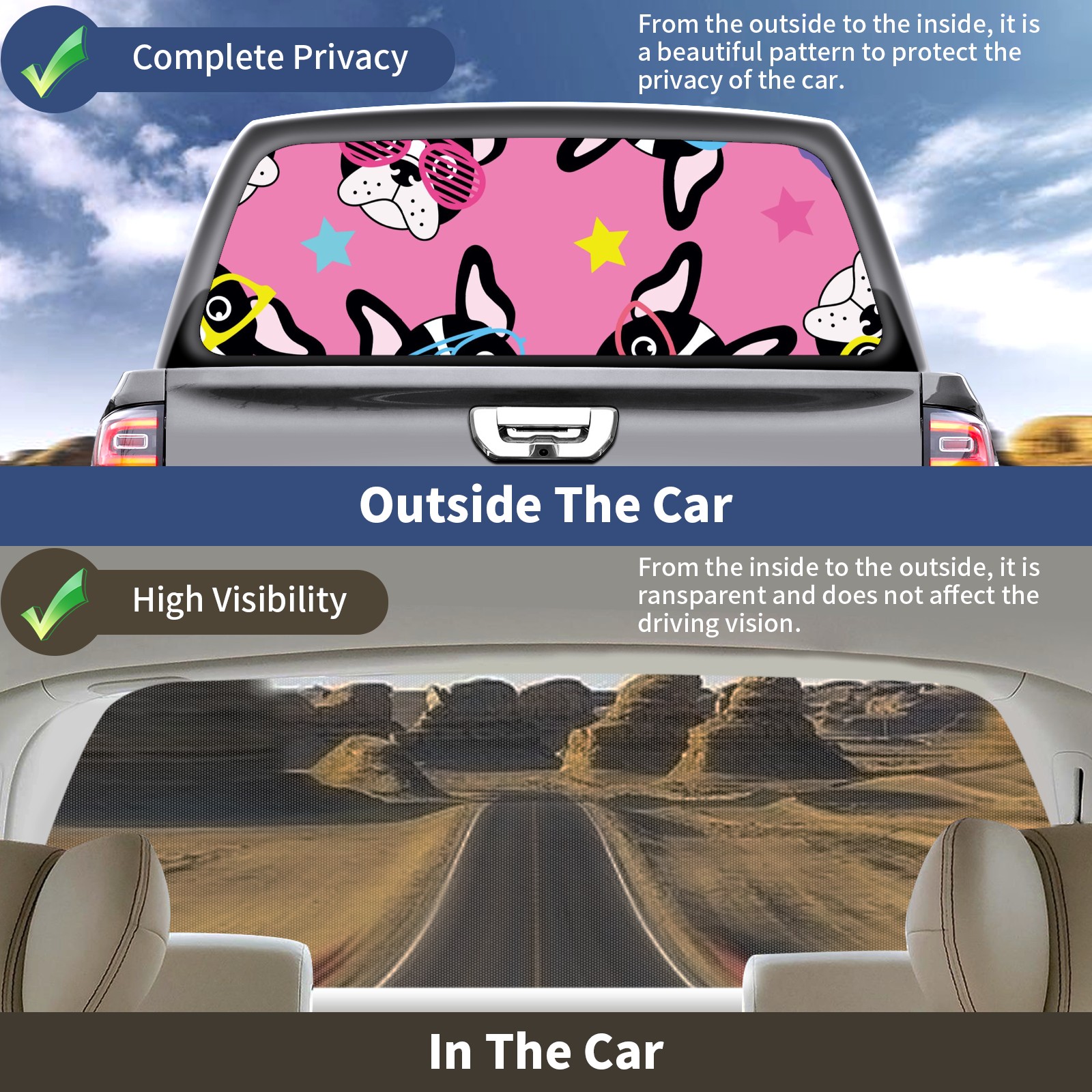 Truck Rear Window Graphics Decals Pickup Trucks Back Window Sticker Full Window Film Decal One Way Visual Waterproof Car Rear Tint Cute Dog On Pink Background