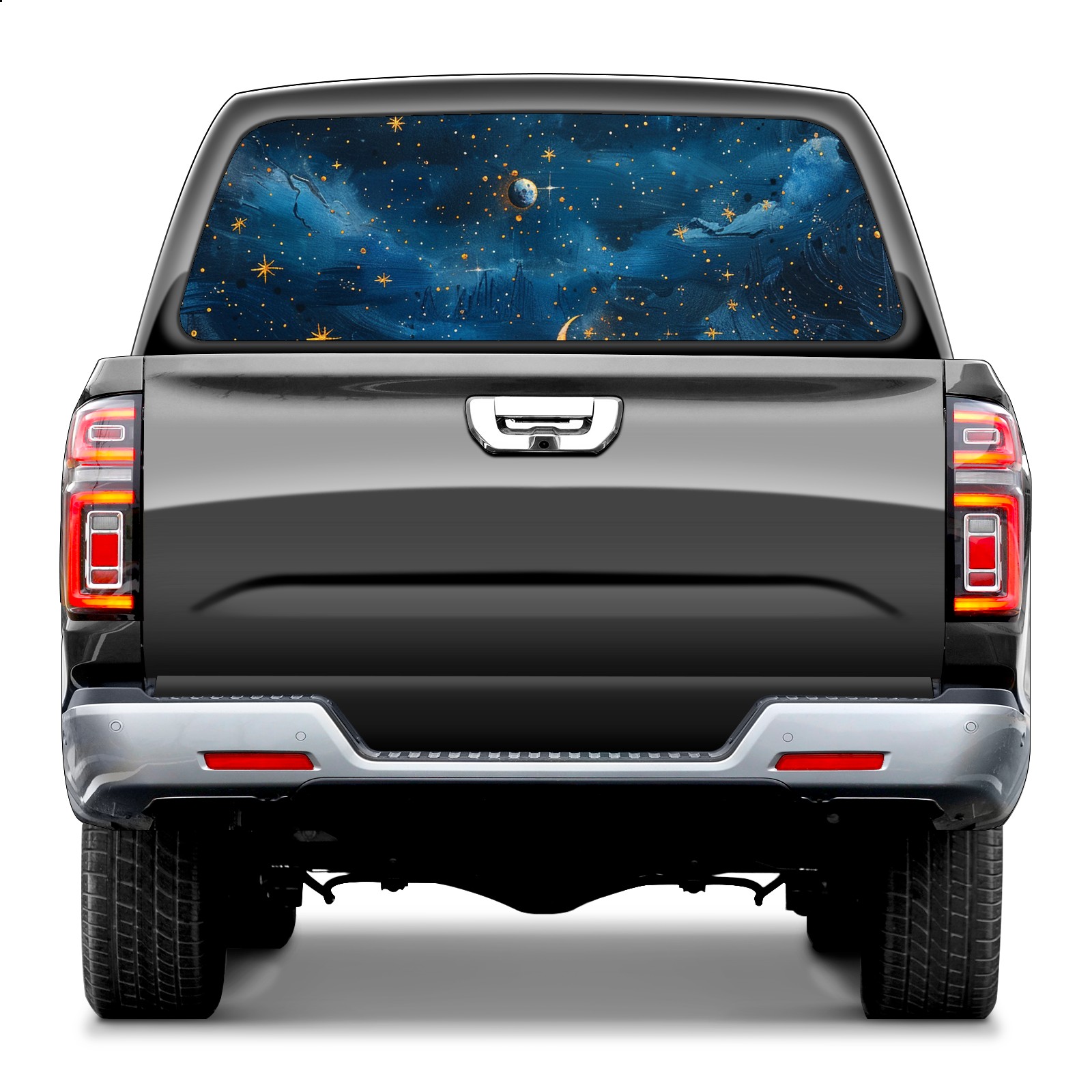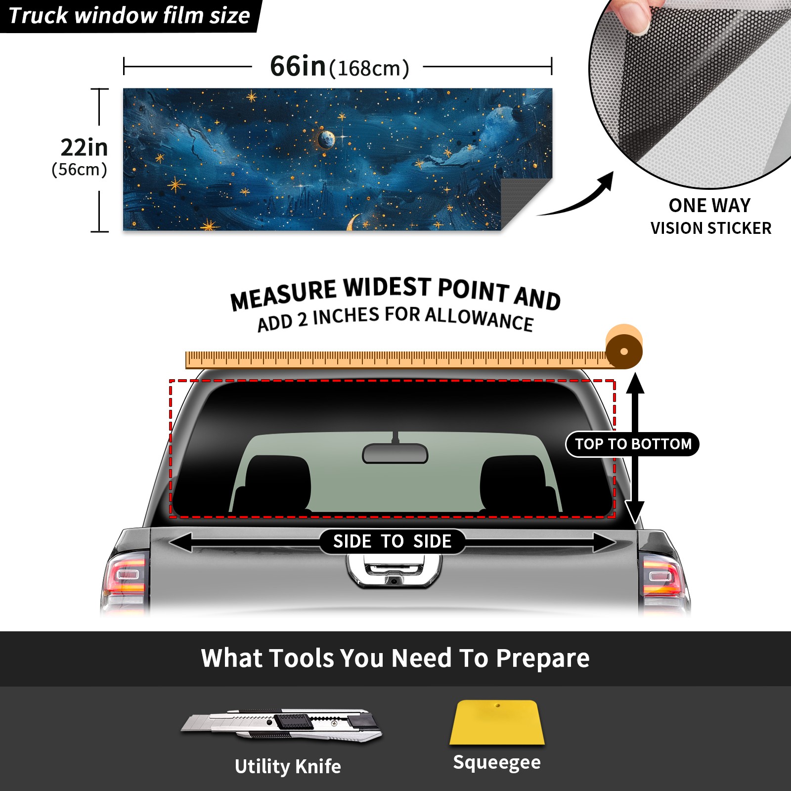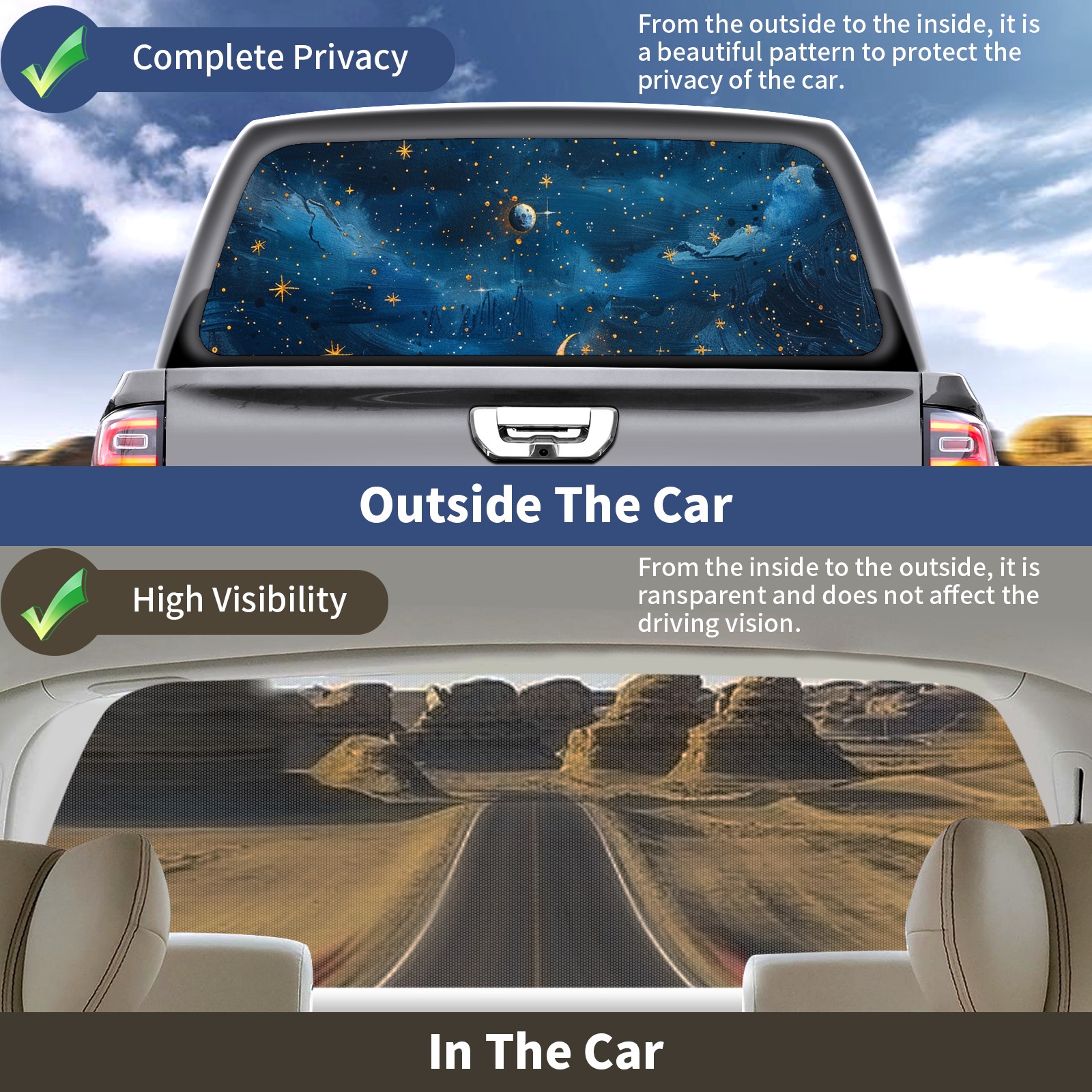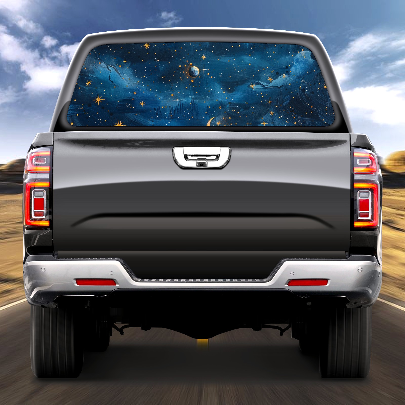Truck Rear Window Graphics Decals Pickup Trucks Back Window Sticker Full Window Film Decal One Way Visual Waterproof Car Rear Tint Starry Sky